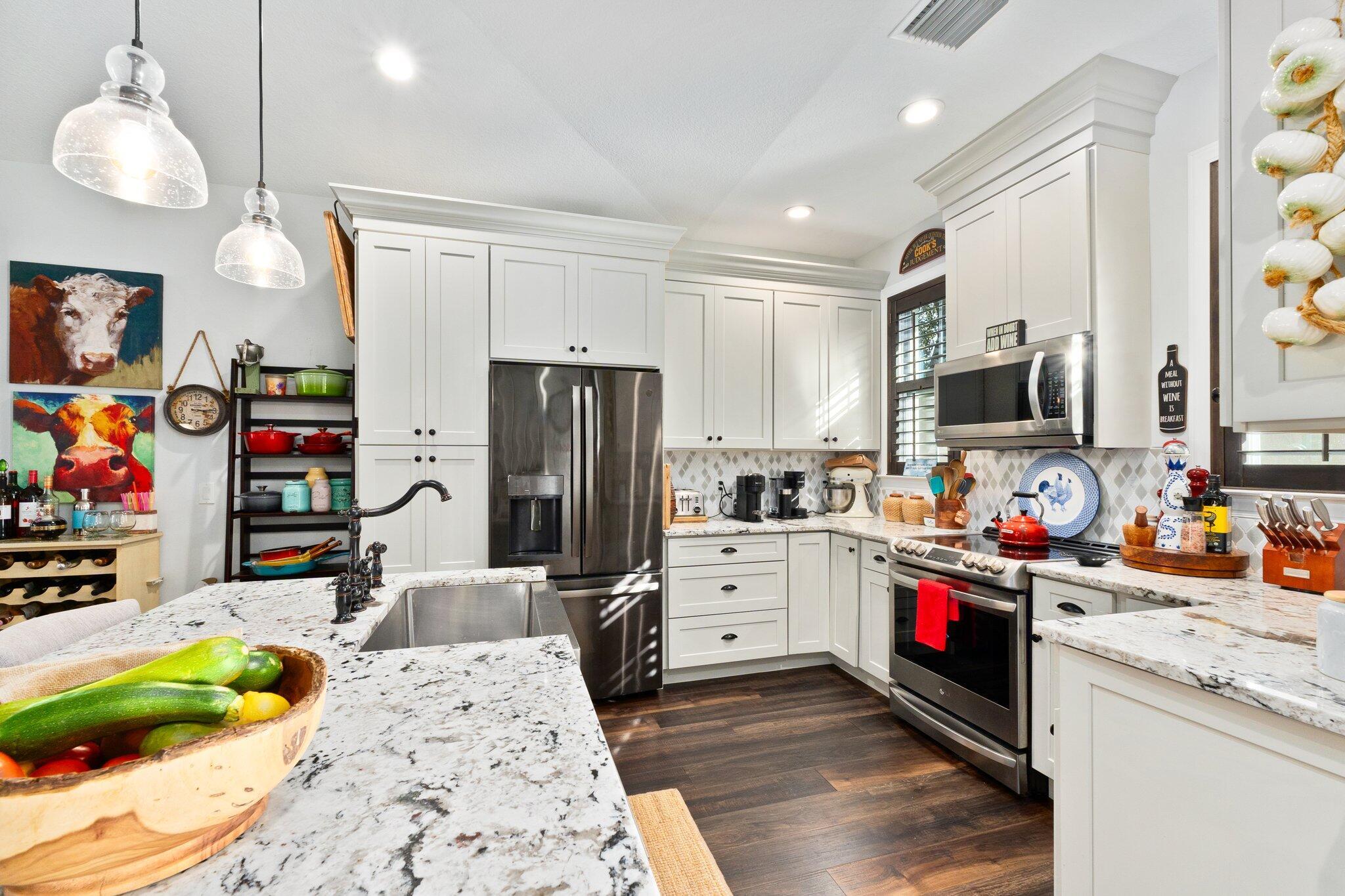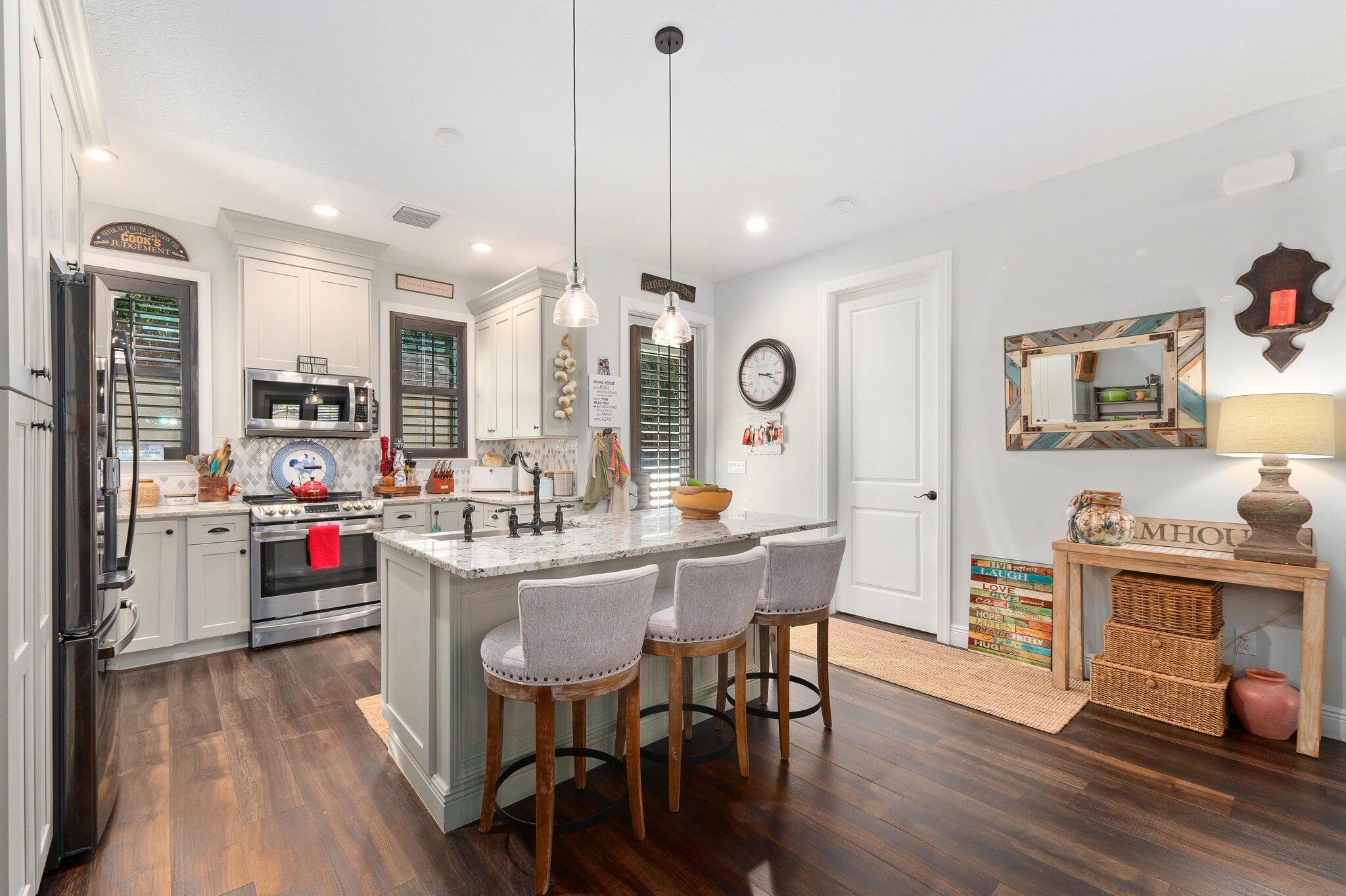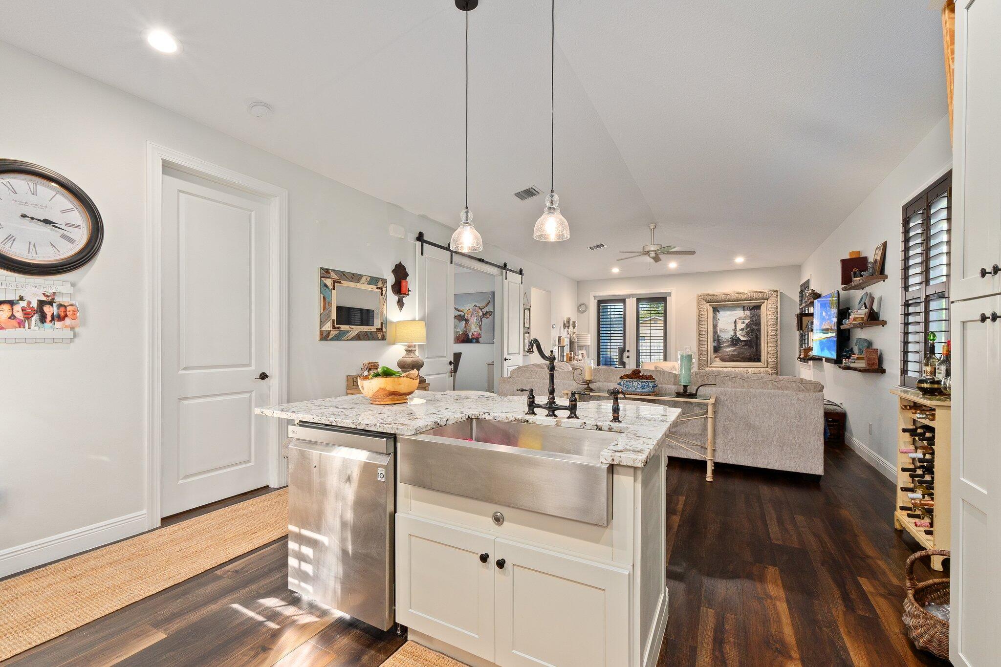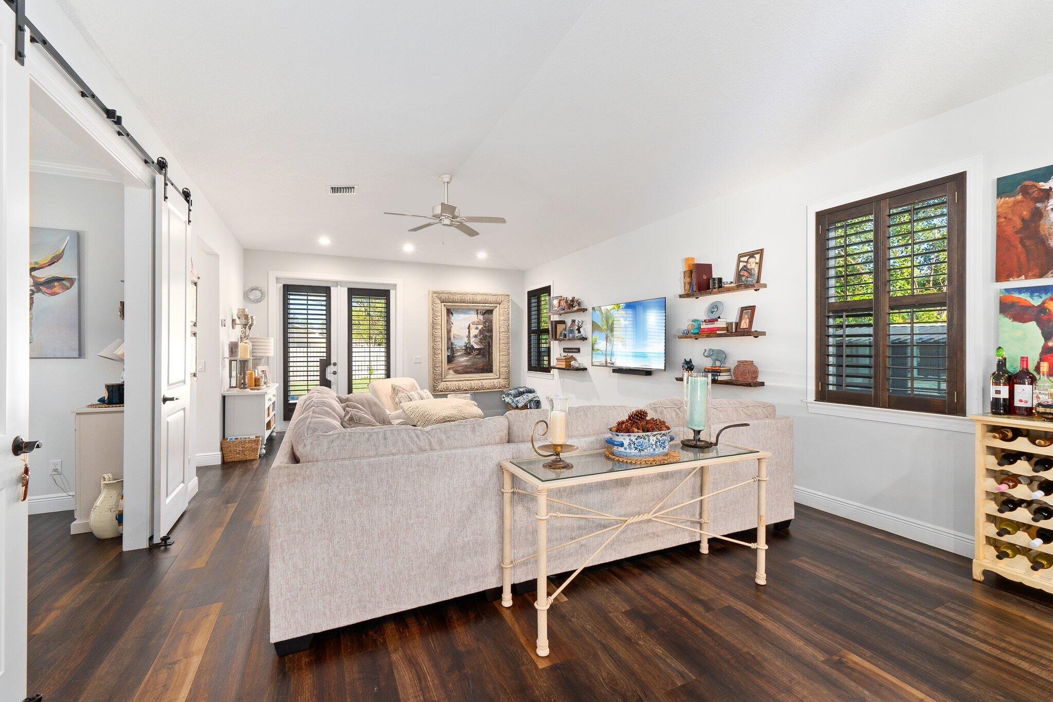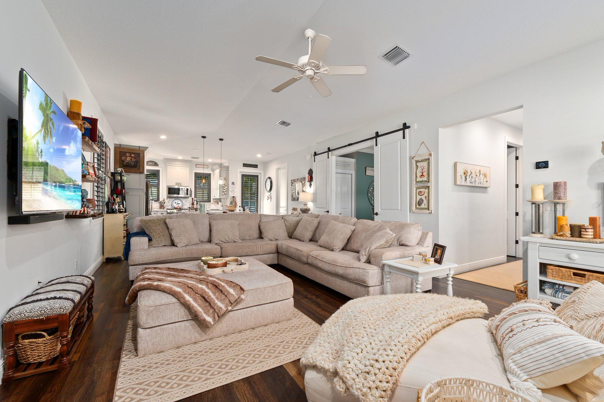 Bring your pets, boats, campers, and toys! This 2018 NEWER CONSTRUCTION concrete block home offers 3, possible 4 bedrooms, 2 baths, and a 2-car garage, with full hurricane impact protection and a durable metal roof. Designed with efficiency and style, the single-level layout boasts an open kitchen and family room featuring custom cabinetry and natural stone granite countertops. A versatile barn-door-enclosed dining room with a closet can serve as a private office or 4th bedroom. Stay comfortable year-round with Icynene insulation and an upgraded A/C system with an automated humidistat. Enjoy low utility and insurance costs. The .29-acre fenced lot provides plenty of room for a pool in the future and ample space and privacy.