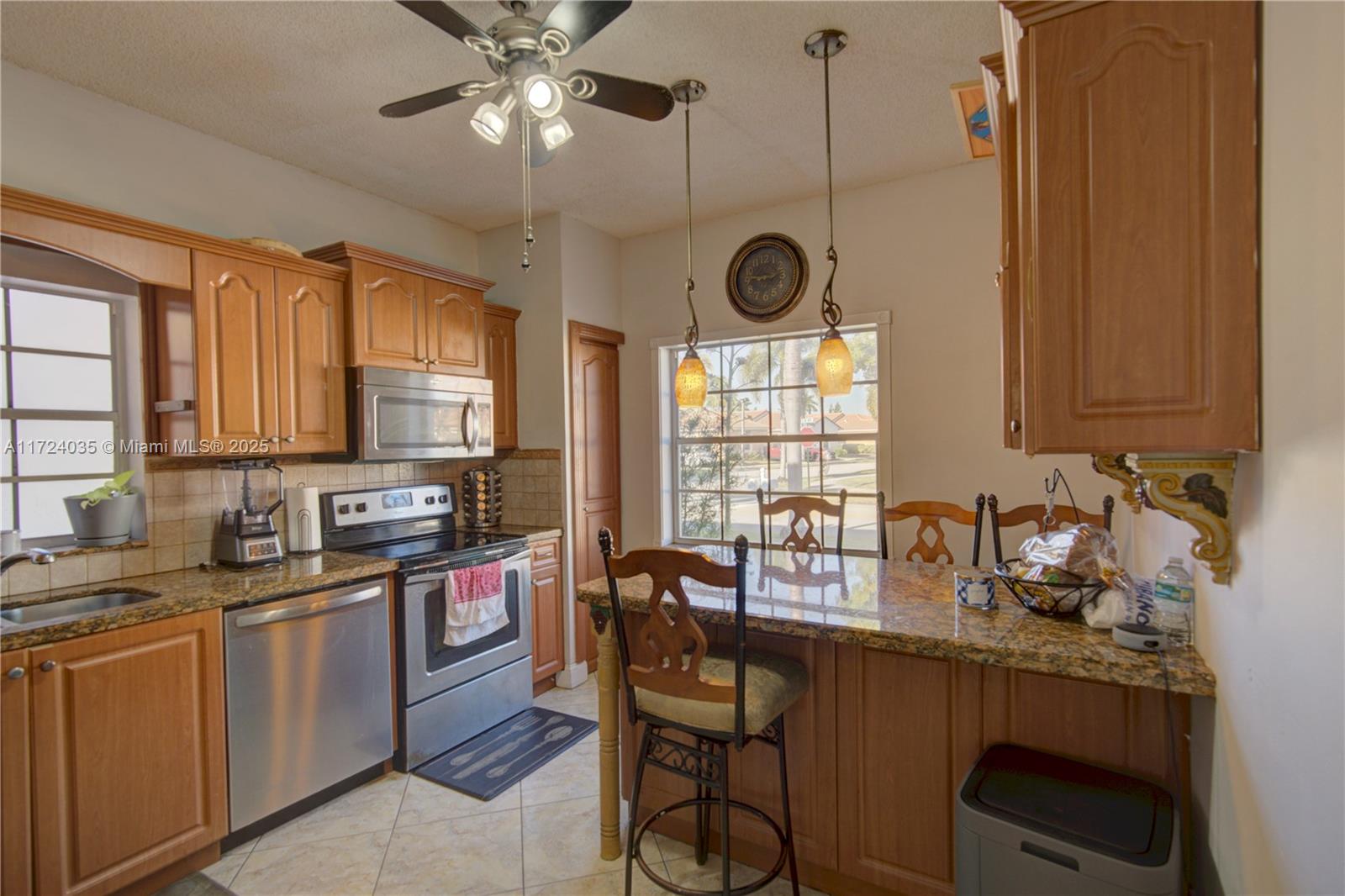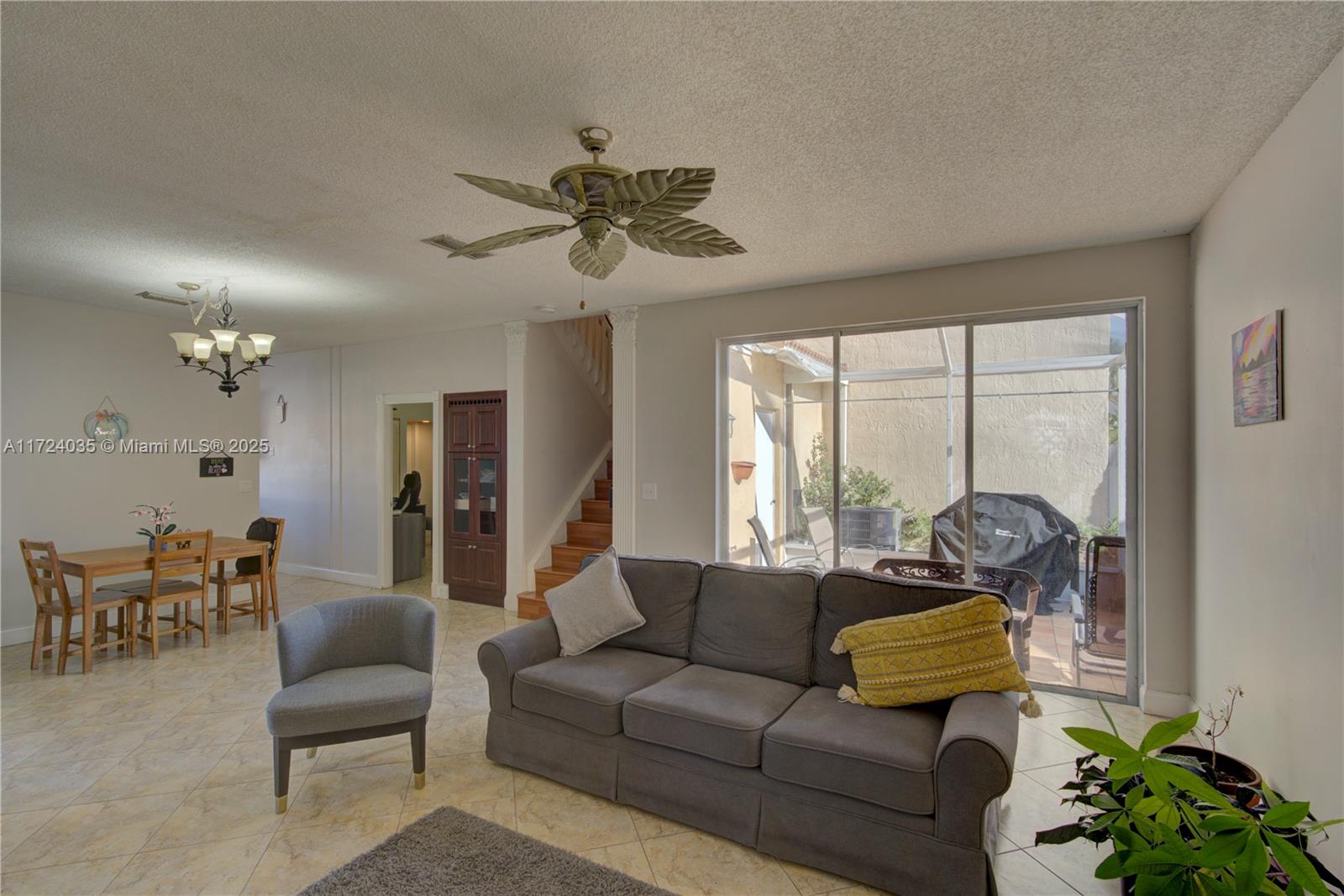 This beautiful townhouse offers a perfect blend of style and functionality. With 3 spacious bedrooms and 2.5 baths, the home features a welcoming first-floor entry, elegant tile and wood flooring, and ample natural light throughout, with a new roof installed in 2023, and brand new AC. The kitchen comes equipped with modern appliances, including a refrigerator, microwave, electric range, washer, and dryer, ensuring convenience. Upstairs, the primary suite boasts a serene retreat with a combination tub and shower. The converted garage and storage room provide additional versatility. Outdoors, enjoy the garden view from your private patio. Community amenities include a pool, tennis courts, and a clubhouse for recreation.