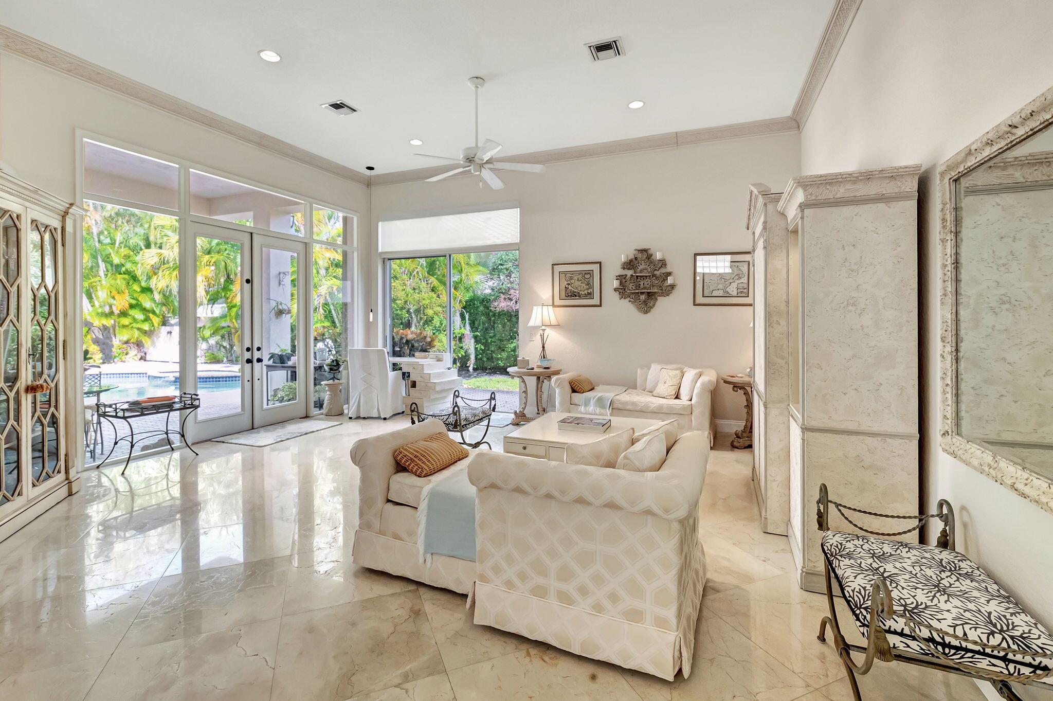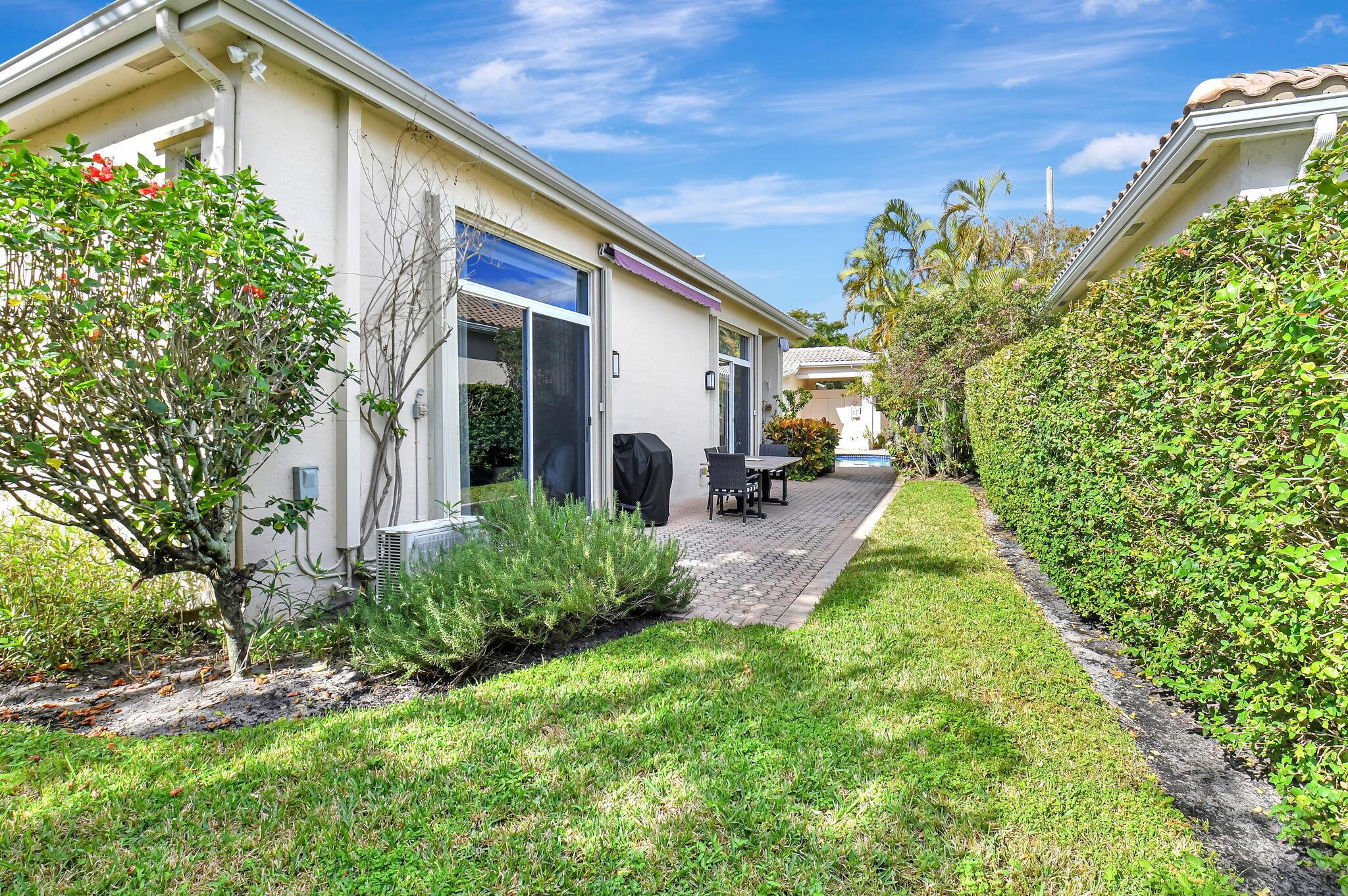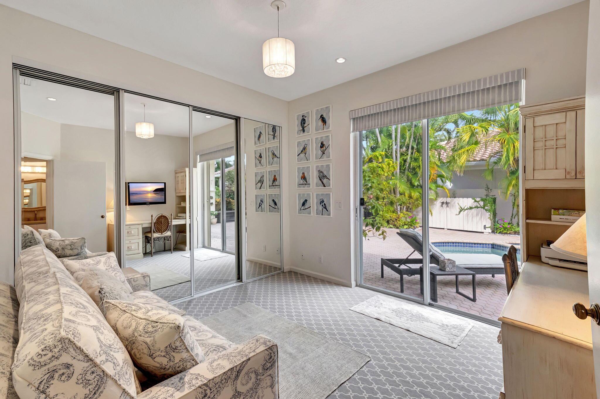 Elegant Courtyard Home in The Banyans at Broken Sound Country Club - Welcome to this beautifully appointed 3-bedroom, 2-bathroom courtyard home, nestled in the prestigious Banyans village of Broken Sound Country Club. Spanning 2,079 square feet, this home offers the perfect blend of luxury and comfort. Step inside to discover a thoughtfully designed split-bedroom floor plan, soaring ceilings, and exquisite designer finishes. The primary suite boasts 2 spacious custom outfitted walk-in closets, and a spa-like en-suite bath. Two guest bedrooms feature direct views and access to the courtyard and pool, creating a serene retreat. The outdoor private oasis is complete with a heated pool and waterfall Jacuzzi, retractable electric awning, and a lush backyard perfect for relaxation or play.