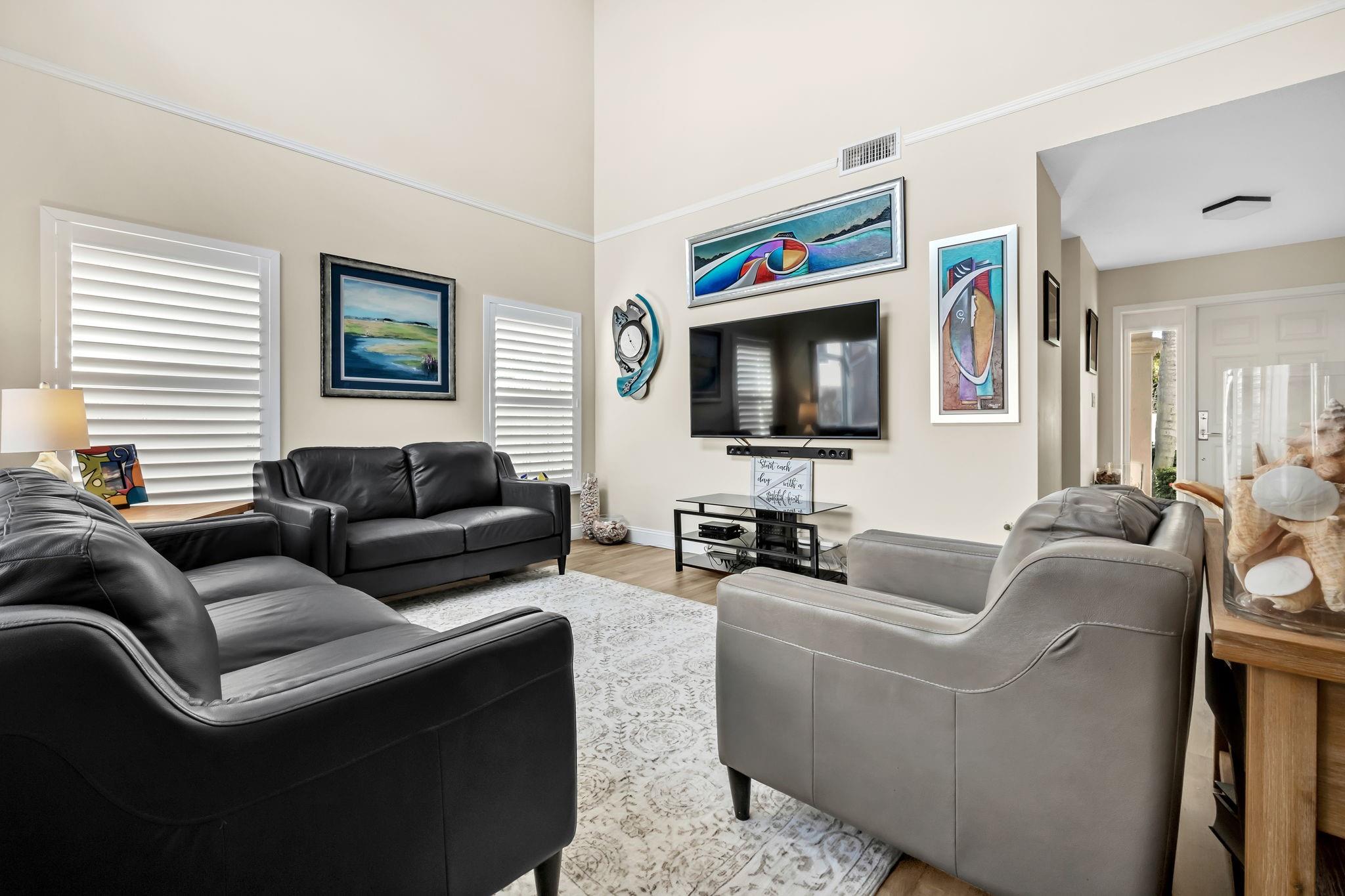 This 4 bedroom, 3 bath home has been completely renovated from top to bottom. Situated on a quiet street in the very popular West Lake Village gated community, this home is move in ready. Highlights include a redesigned layout that opens the renovated kitchen to the living room, remodeled bathrooms, a new air conditioner (2023), newer roof (2016), impact windows all around, custom cabinetry and a screened in lanai to protect you from those annoying "no-see-um" mosquitos while your sitting outside on the new pavered patio. This is one of the larger home models in the neighborhood and it includes a bedroom and full bath downstairs...perfect for guests, in-laws or a live in nanny. Residents enjoy the community pool, fitness center, tennis courts, children's playground and 24 hour security.