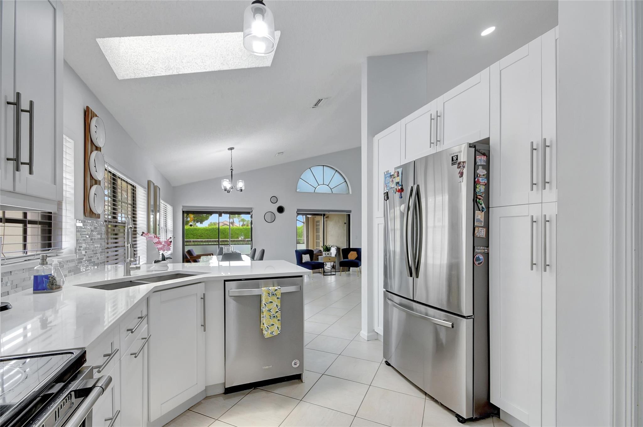 MOTIVATED SELLERS! Snowbirds & Golfers Dream Home! Nestled in a quiet Cul-de-Sac. Located in Cambridge at Boynton Beach within the Park Vista TOP School Boundaries and the prestigious Aberdeen Country Club offering a Jim Fazio-designed 18-hole golf course, Tennis courts, Pickle ball, Pools, 3 Restaurants, Fitness center & daily fun activities. This Bright & Spacious home features 2 Master Suites w/3rd Bedroom/Den, 2.5 baths, 2 Car Garage w/a Split Foyer Layout making it perfect for EVERYONE! Stunning New Kitchen w/tons of upgrades to include S/S Appliances & Light Fixtures throughout. Tall Vaulted Ceilings & Sky Light brings lots of natural light & the spacious screened in patio overlooking the Lake is BREATHtaking at Sunset! One time Mandatory $80k Membership fee.