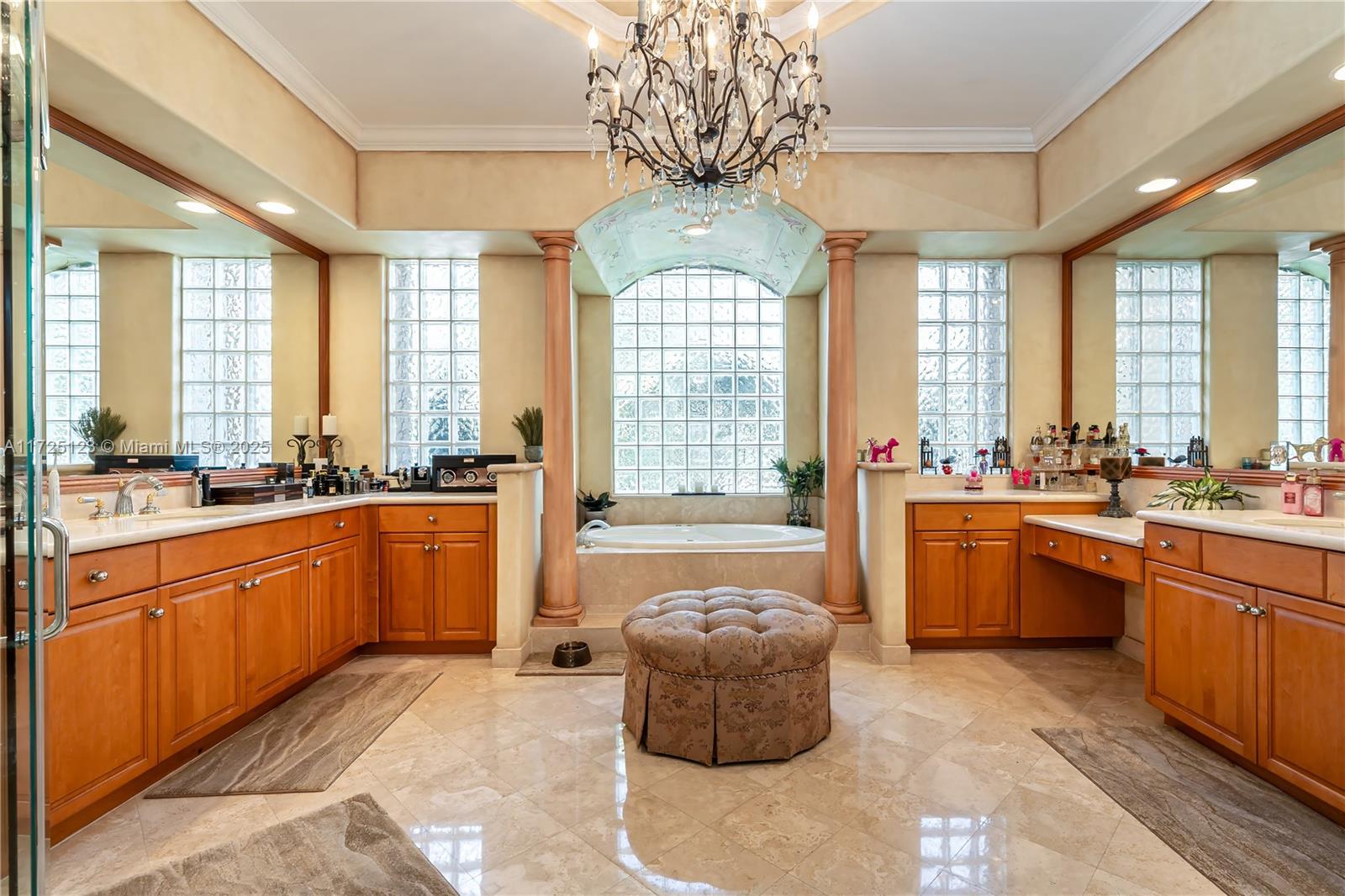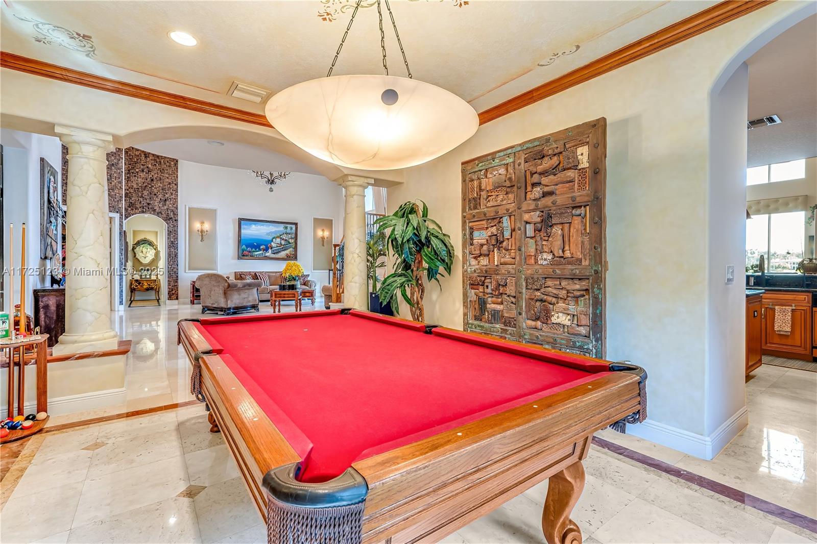 Amazing lake front estate in desirable Long Lake 6 bed/4.5 bath, 3 car garage. Home features marble floors with marble stair case. Built in appliances, hurricane shutters, crown molding, security cameras, working fire place, built-in closets, large backyard pool with Pebble TEC finish, center lot includes wide lake views, professionally decorated with lush landscaping. Shows like a model! Community amenities include tennis, basketball court, and park