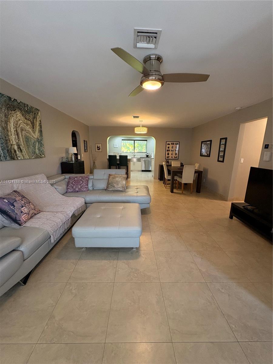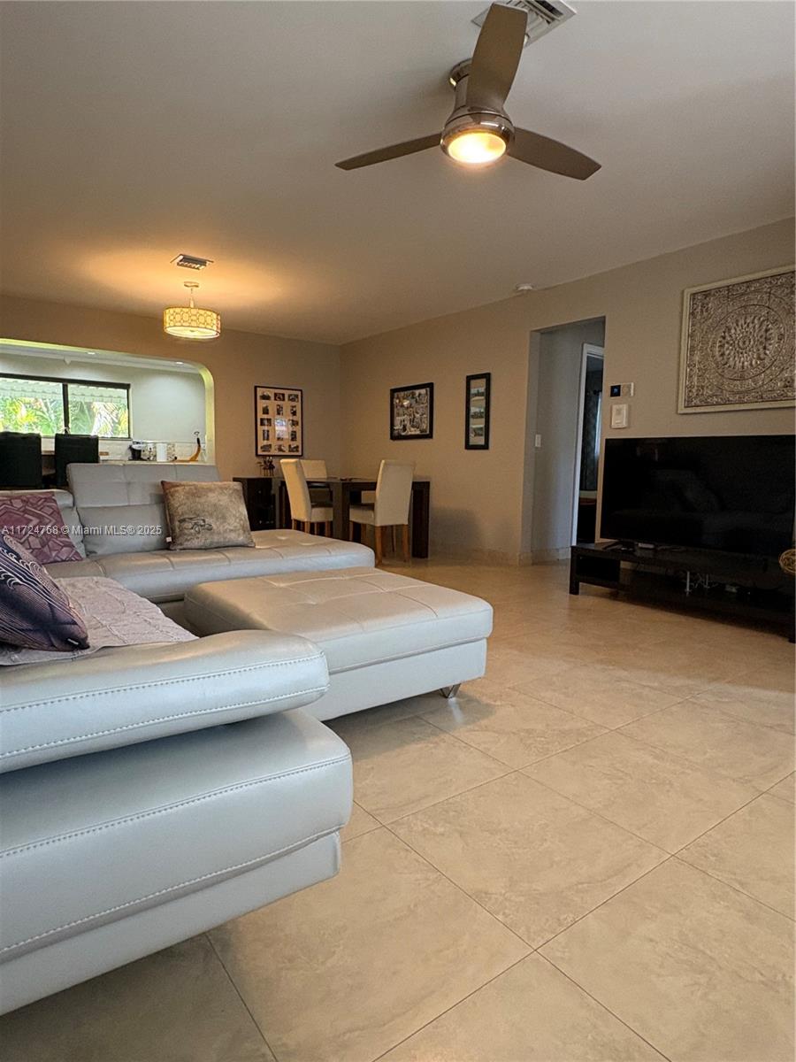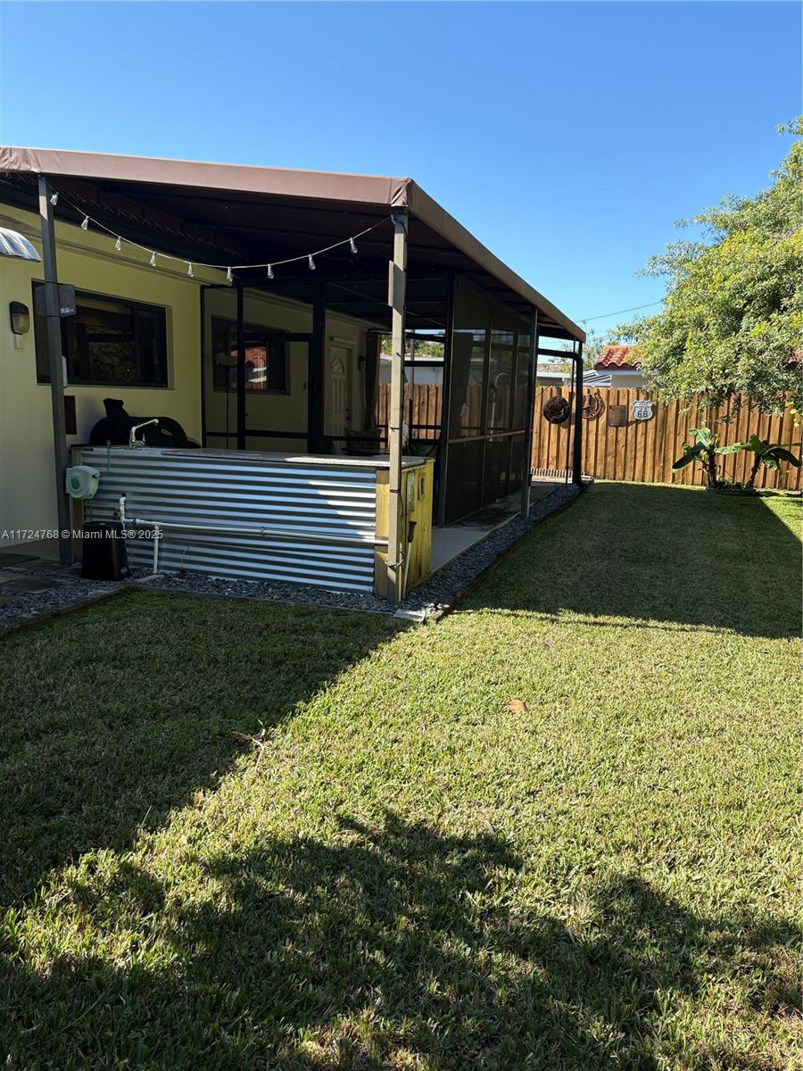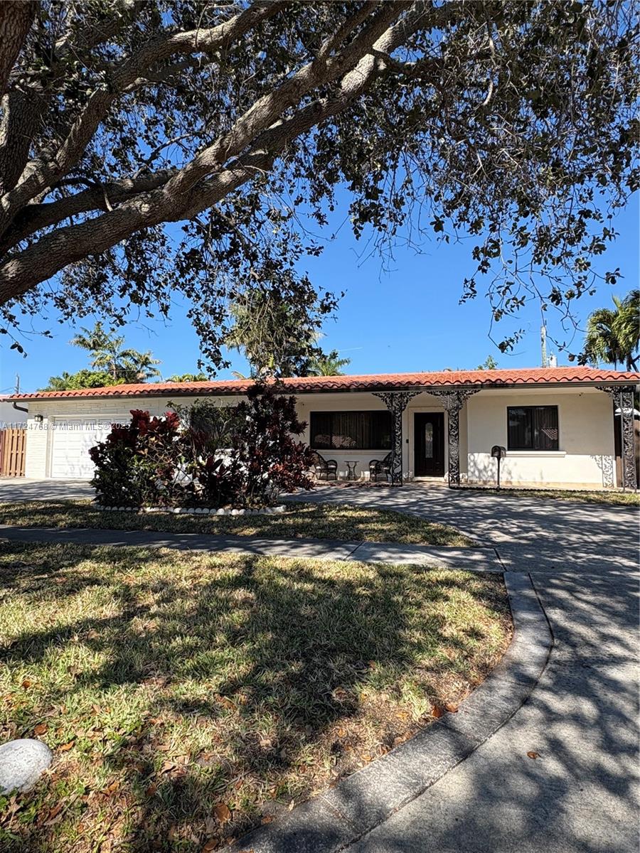 This stunning 3 bedroom with 2 and a half bathroom home offers an open split floor plan with elegant floors throughout. The oversized kitchen features quartz countertops, stainless steel appliances, and high-end wood cabinetry. Enjoy a huge family room, formal dining room, and a versatile media room that can serve as a fourth bedroom. The hurricane-impact windows and garage door provide added security. Relax in the private backyard, complete with a tiled screened porch, outdoor kitchen, and lush banana and avocado trees. Located just minutes from the beach and Gulfstream Park, this home combines comfort, style, and convenience.