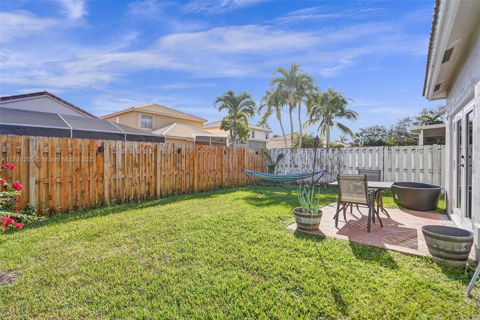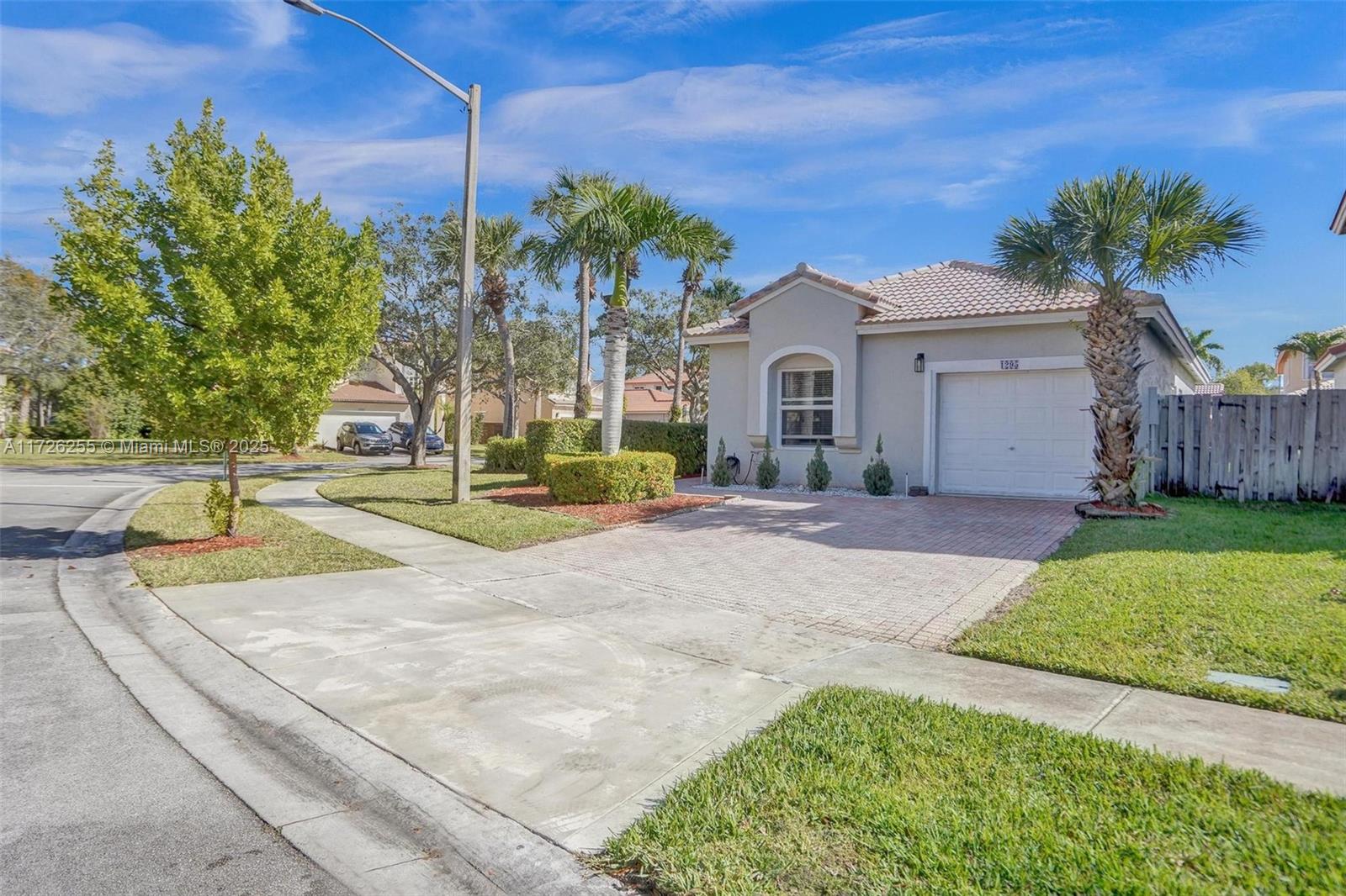 This charming 3-bedroom, 2-bathroom single-story home boasts modern upgrades throughout. 2020 brought a new roof, impact windows, and stylish French doors that lead to a beautifully landscaped fenced-in yard with twilight lighting. The renovated kitchen features sleek finishes, while the upgraded primary bathroom offers a luxurious retreat. Outdoor lighting enhances the curb appeal, creating a welcoming ambiance. The low HOA fee provides exceptional value, covering 24/7 security, internet, DirectTV and lawn care. Located in a prestigious guard-gated community with A+ rated schools, this home offers access to newly remodeled resort-style amenities, including a clubhouse, pools, fitness center, tennis courts, and playgrounds. Enjoy a lifestyle of convenience, comfort, and peace of mind.
