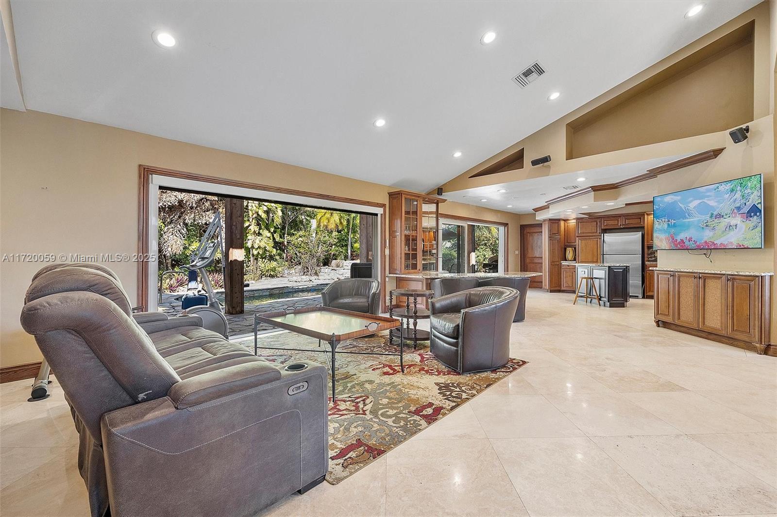 An incredible opportunity to own in the highly sought-after Pinecrest neighborhood! This expansive 3-bedroom, 2-bathroom home sits on a corner lot. The open-concept layout includes a spacious family room, dining room, built in bar and large kitchen with vaulted ceilings, perfect for entertaining. The patio and backyard feature stunning landscaping, a cascading waterfall, and a freeform pool, a perfect tranquil retreat. Additional features include a generator, circular driveway and side-entry two-car garage. Situated within an A-rated school district and just a short drive from premier shopping and dining, this location is truly unbeatable. Envision the endless potential to transform this Pinecrest property into your dream home. For Sale "AS IS".