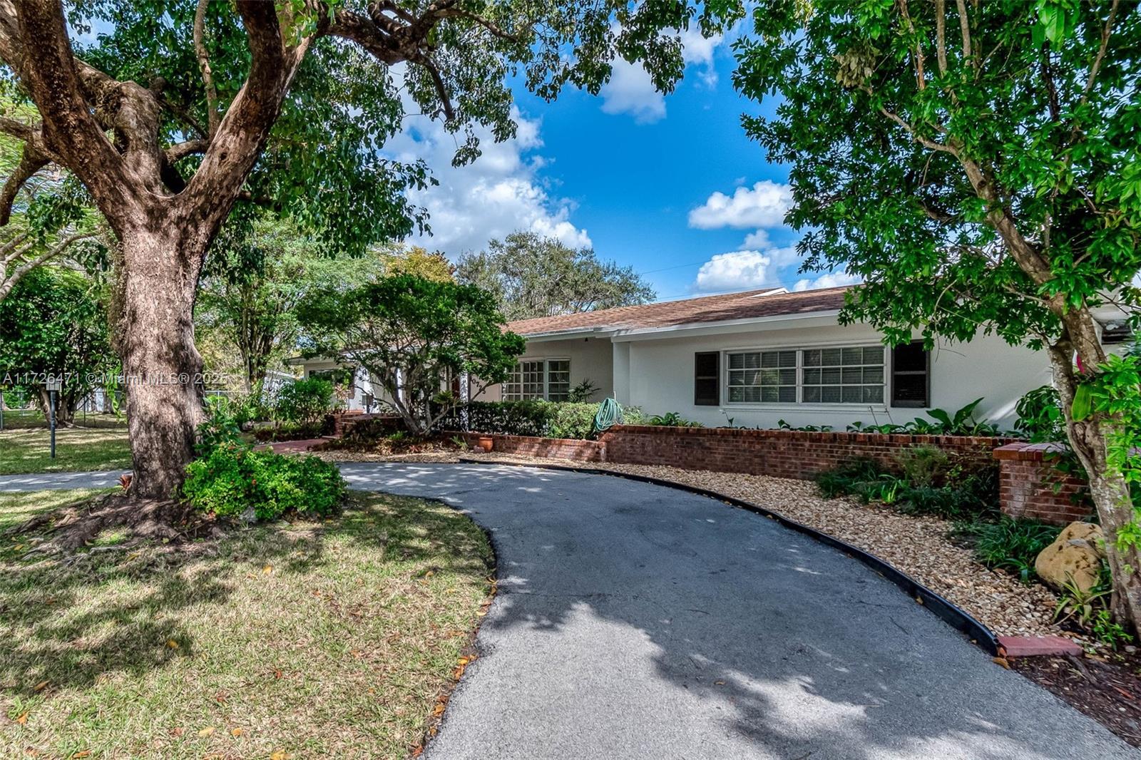 Beloved, spacious 5 bedroom/ 4.5 bath home in North Pinecrest, ready for your updates. Enter the formal living room with polished, original terrazzo floors and delightful view of the backyard from a wall of French doors. Grand formal dining room with china closet. Kitchen has eat in table, wood cabinetry and granite countertops, double wall oven and pantry. Charming family room with wet bar, beautiful stone fireplace. Split floorplan with 3 guest bedrooms, one ensuite, with walk in closets. Private, grand primary suite with large bath and walk in closet. 5th bedroom also ensuite w/ private entrance, perfect for in-laws or guests. 2 newer AC units. Laundry room and several storage closets. Expansive, screened pool and patio, 2 sheds.