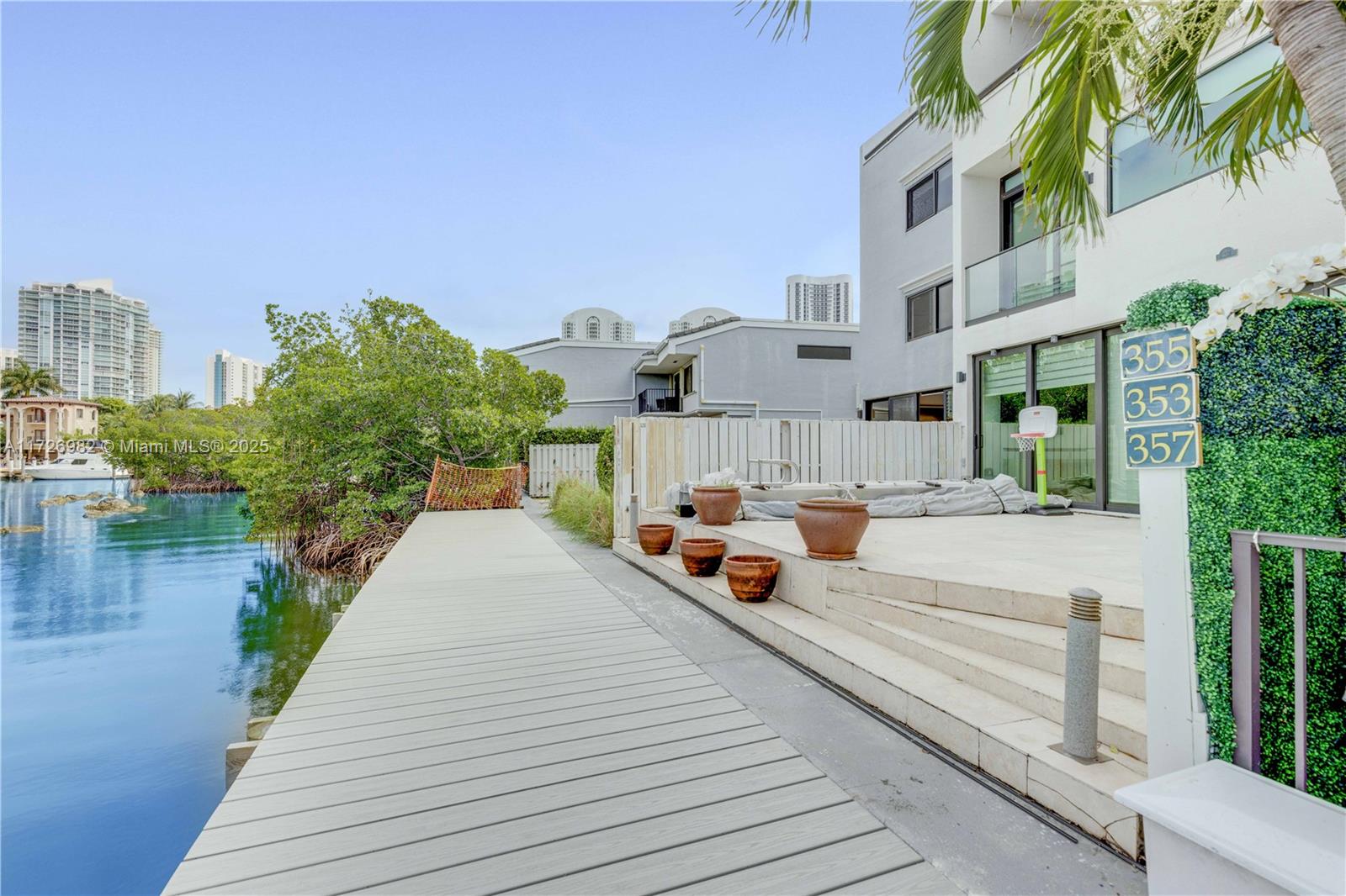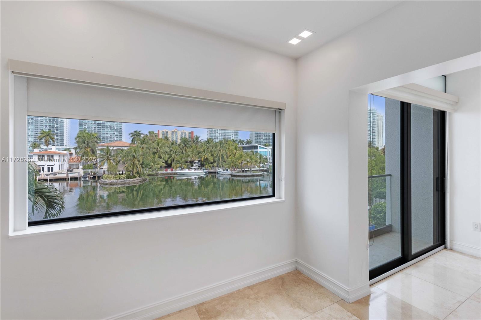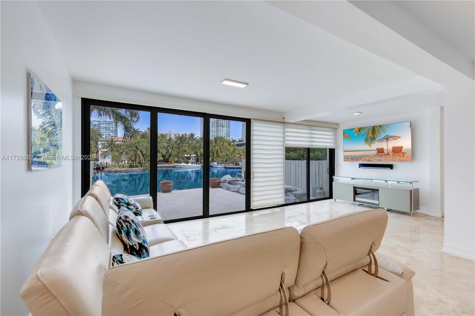 Welcome to this waterfront townhouse in Sunny Isles Beach, which offers direct access to the Intracoastal Waterway. The first floor opens to a charming patio with water view, also offers a studio with a spacious closet, ideal for a home office or guest room. Marble floors throughout the home. Upstairs, the property boasts three spacious bedrooms with walk-in closets. The second floor also features two unique balconies with spectacular views. The complex offers private access, tennis courts, two swimming pools, a private marina, and is surrounded by abundant, well-maintained green areas. The beach is just across the street. Located in a community with top-rated A schools. The unit is vacant and easy to show.