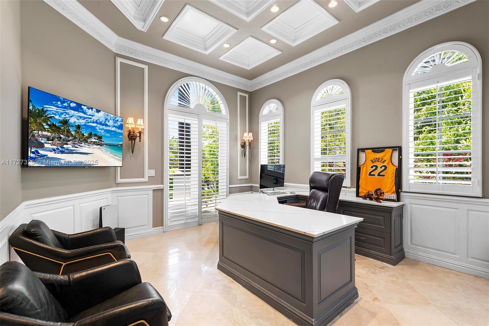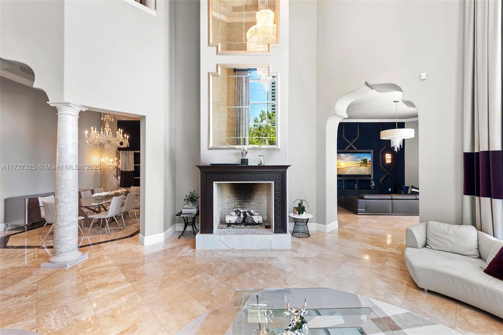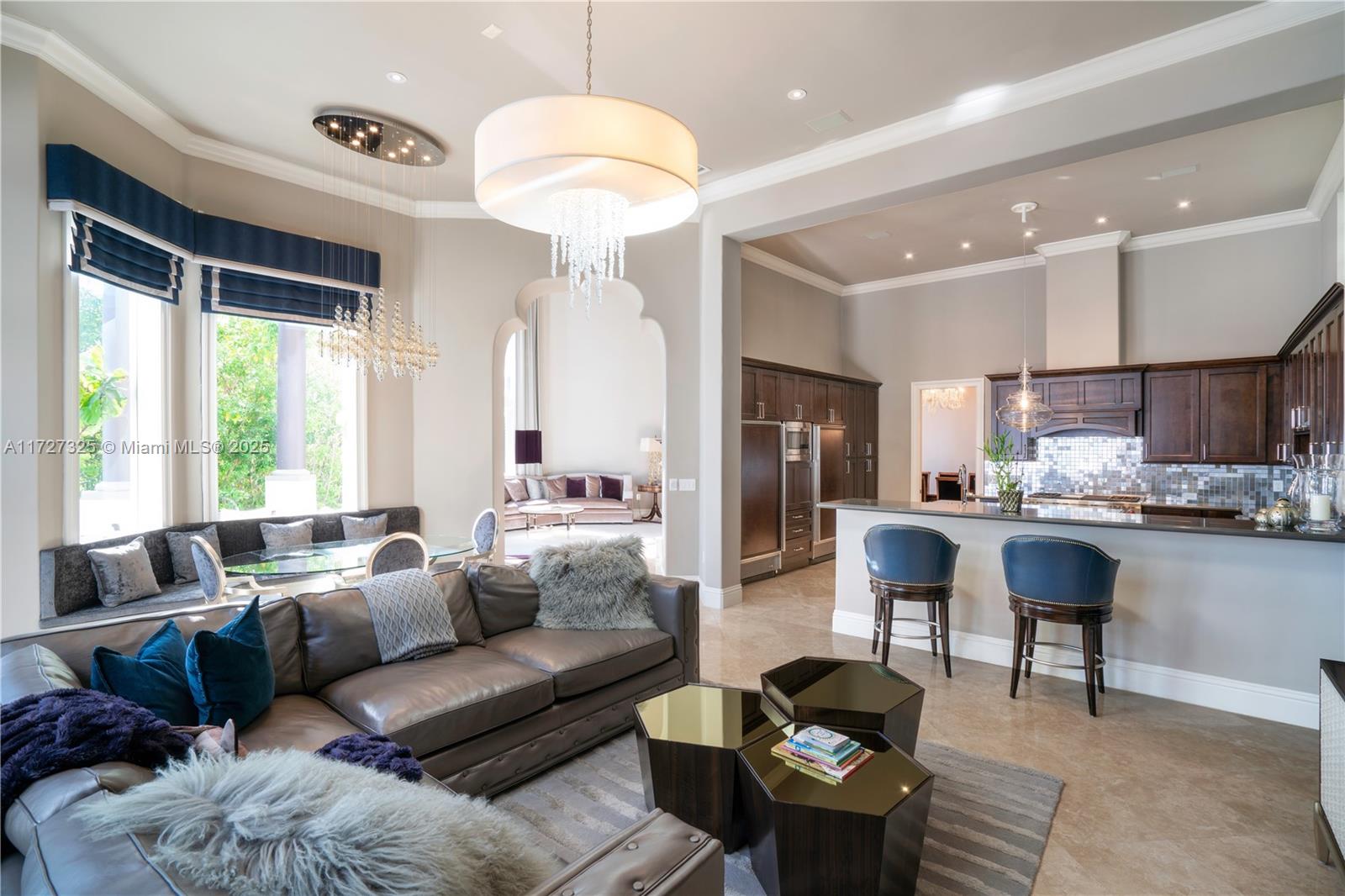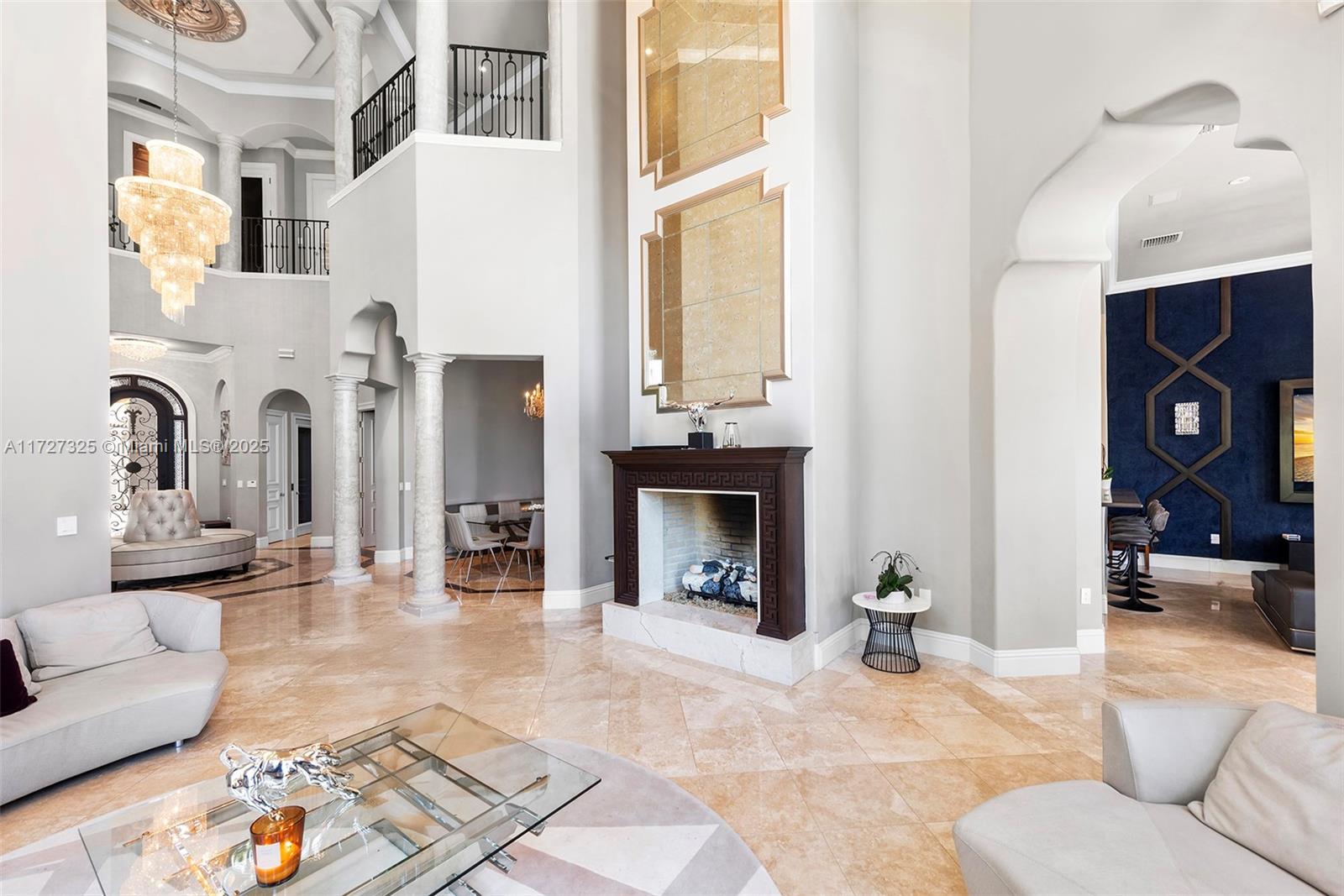 Experience unrivaled luxury on the open bay in the gated community of Island Estates. This rare home sits on one of only two double lots (24,772 sqft) with 240 ft of water frontage, offering the best views. Features include vaulted 30 ft ceilings, top finishes, a gourmet kitchen, elevator, and a luxurious master suite with veranda. Highlights are a tropical pool, spa, impact glass, 3 levels, a 2-car garage plus golf cart garage, and a private marina with boat slip. Adorned with 14K gold Swarovski chandeliers, this home combines elegance with advanced smart home system. Residents enjoy exclusive access to Prive’s five-star golf and tennis amenities.