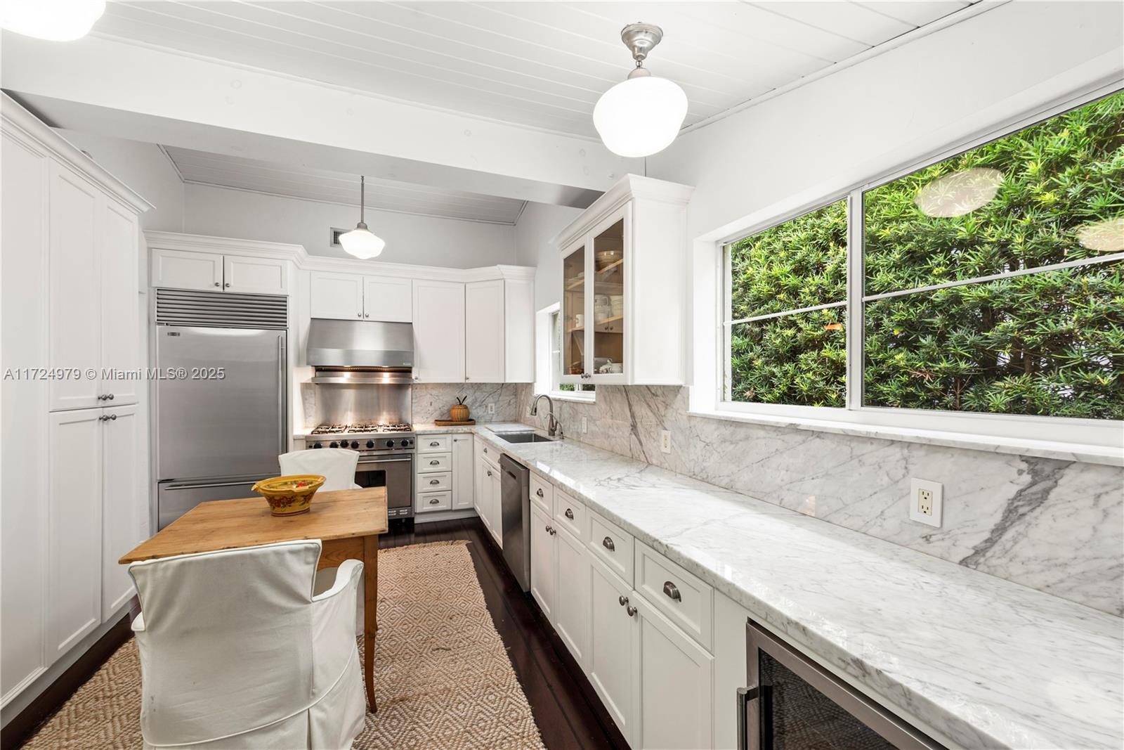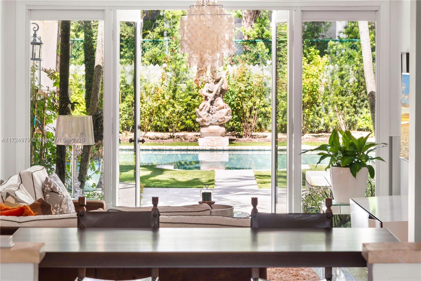 Experience the epitome of Miami Beach luxury in this stylish 3-bed, 3-bath home located in a friendly family neighborhood. Meticulously updated, the living room boasts soaring cathedral ceilings, creating an expansive and inviting atmosphere. The updated kitchen features pristine white marble counters, combining modern sophistication with functionality. Step outside to a tastefully designed pool, a landscaped backyard, and your own private sundeck—an outdoor oasis perfect for relaxation and entertaining. This home is not just a residence; it's a lifestyle. All lighting and window treatments are not included in the sale.