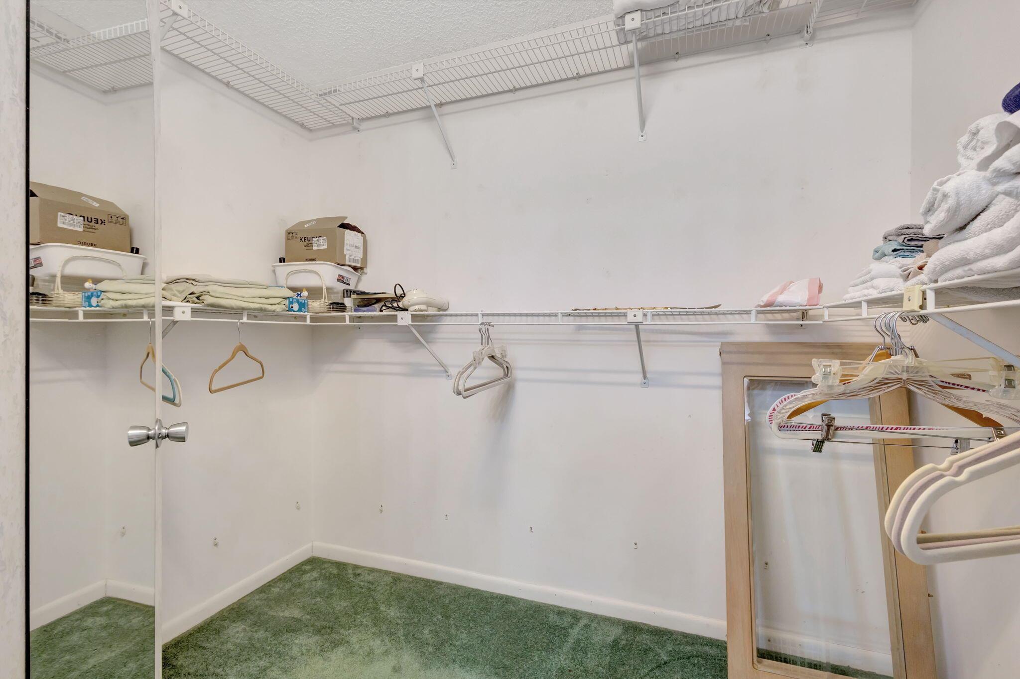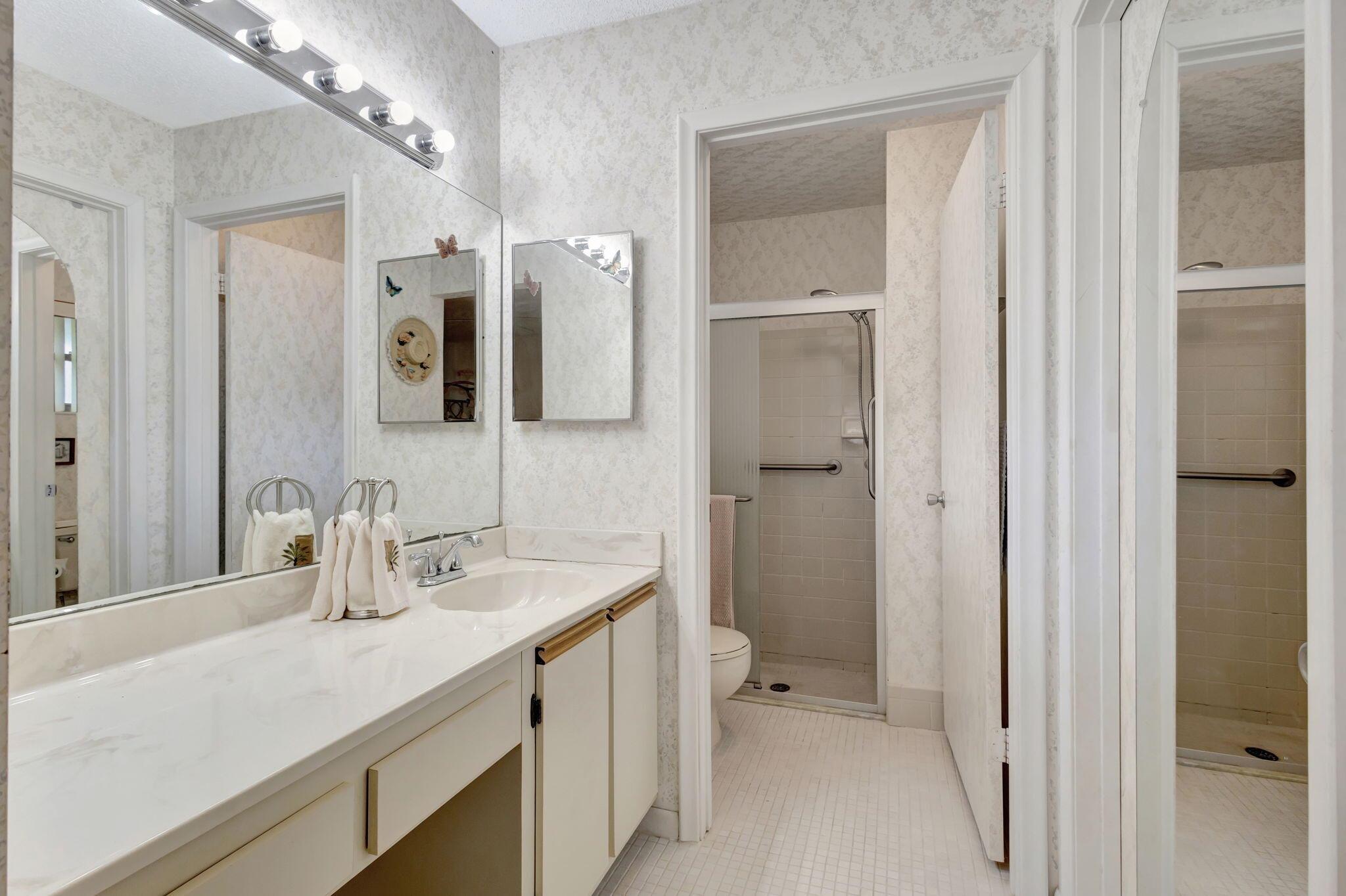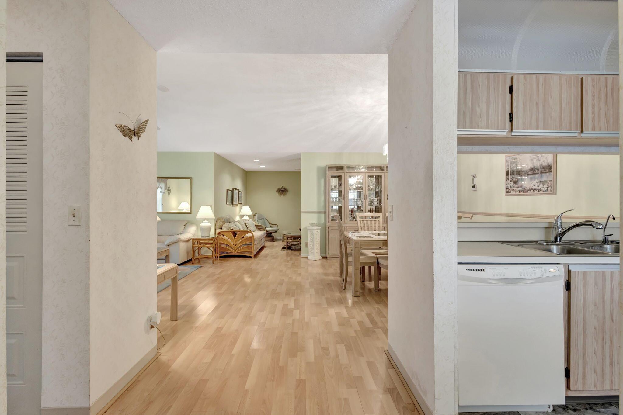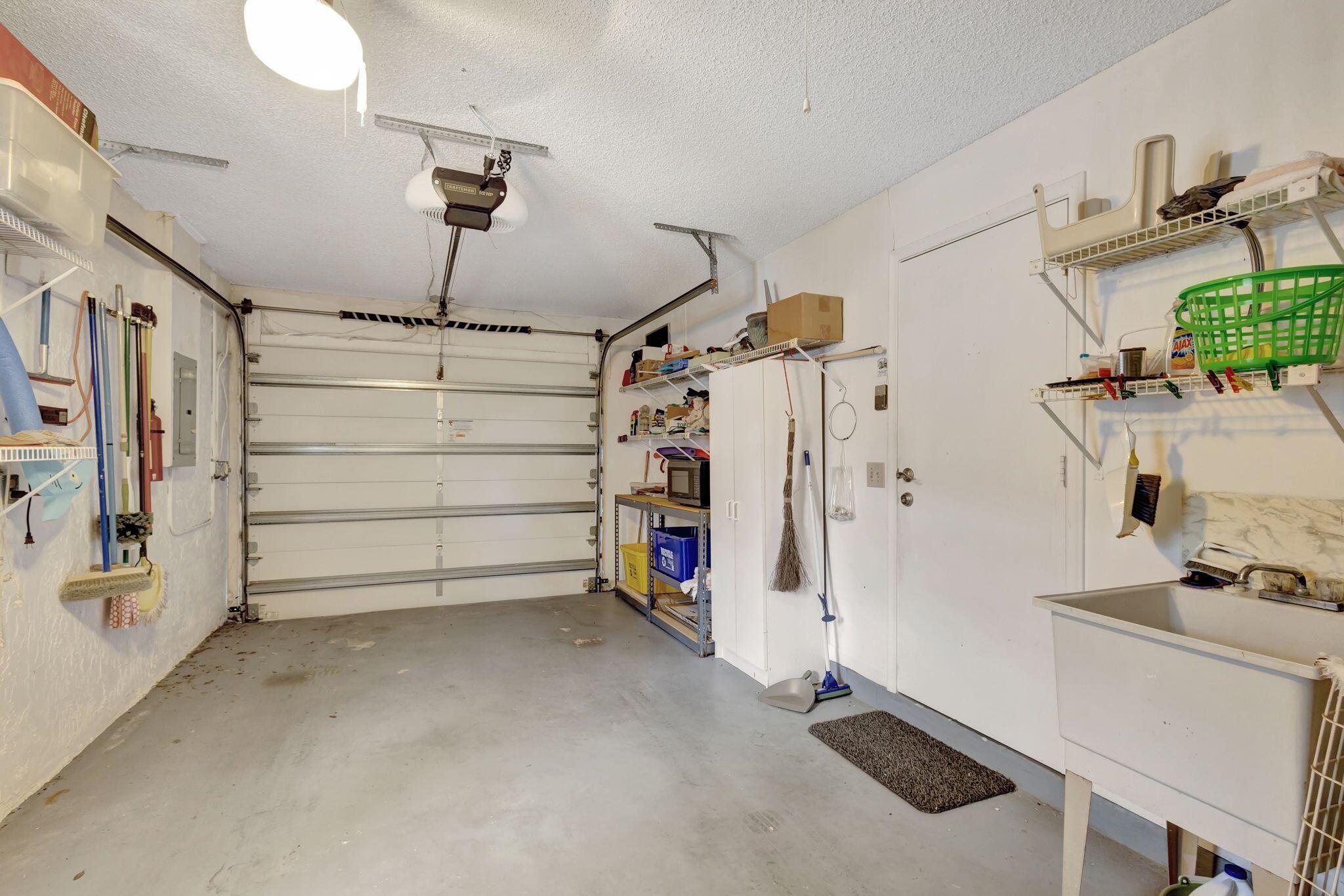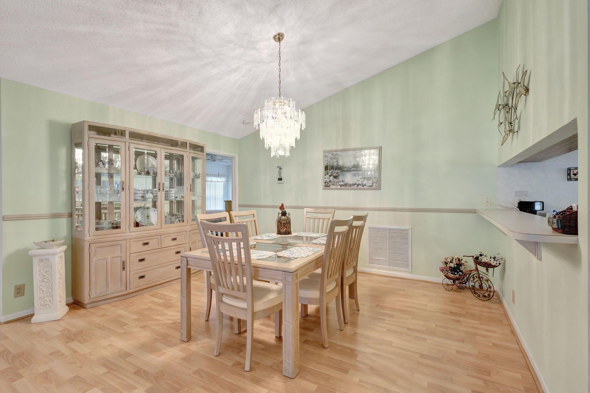 Spacious & bright.! Split bedrooms, 2 full baths, area dining room, laminate flooring, tile in baths. Office with 2 windows. Large screened/windowed patio w/view of golf course. Lake breezes from the east. Newer stove top & refrigerator. A/C system approx. 2016. Newer hot water heater.Laundry sink in gar., Maytag w/dryer. Htd. commuity pool, hot tub; also gym & sauna for men & women. Centrally located - Close to Publix, post office, restaurants, I-95, Turnpike, PBIA air port & more.