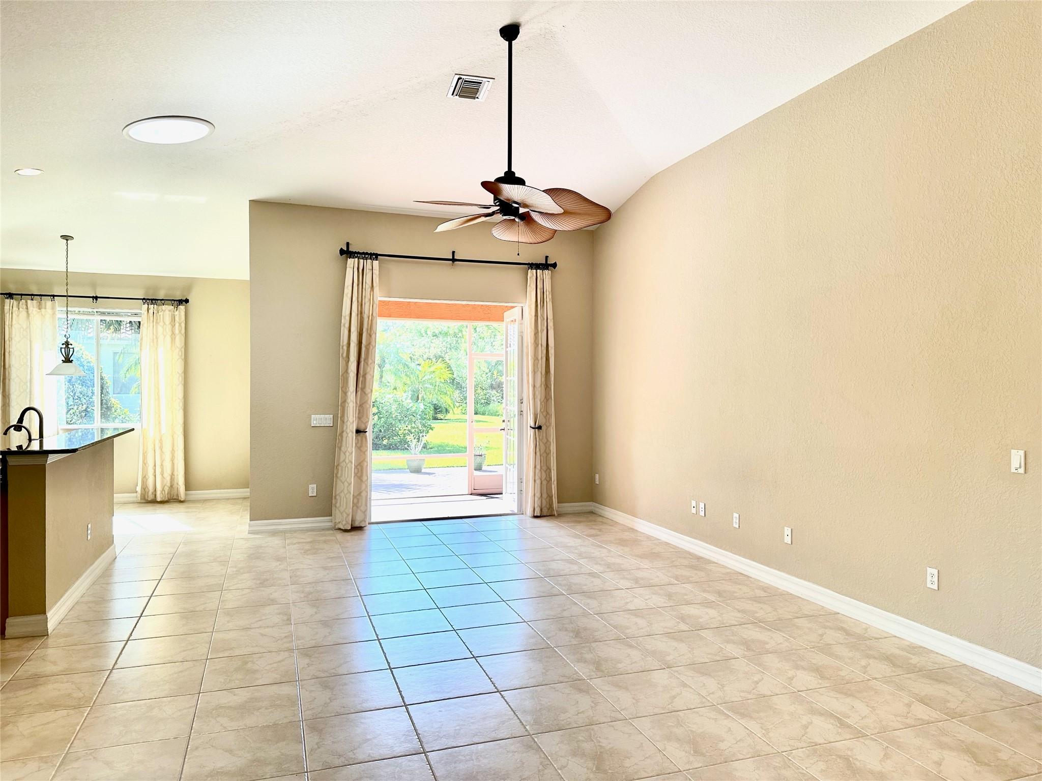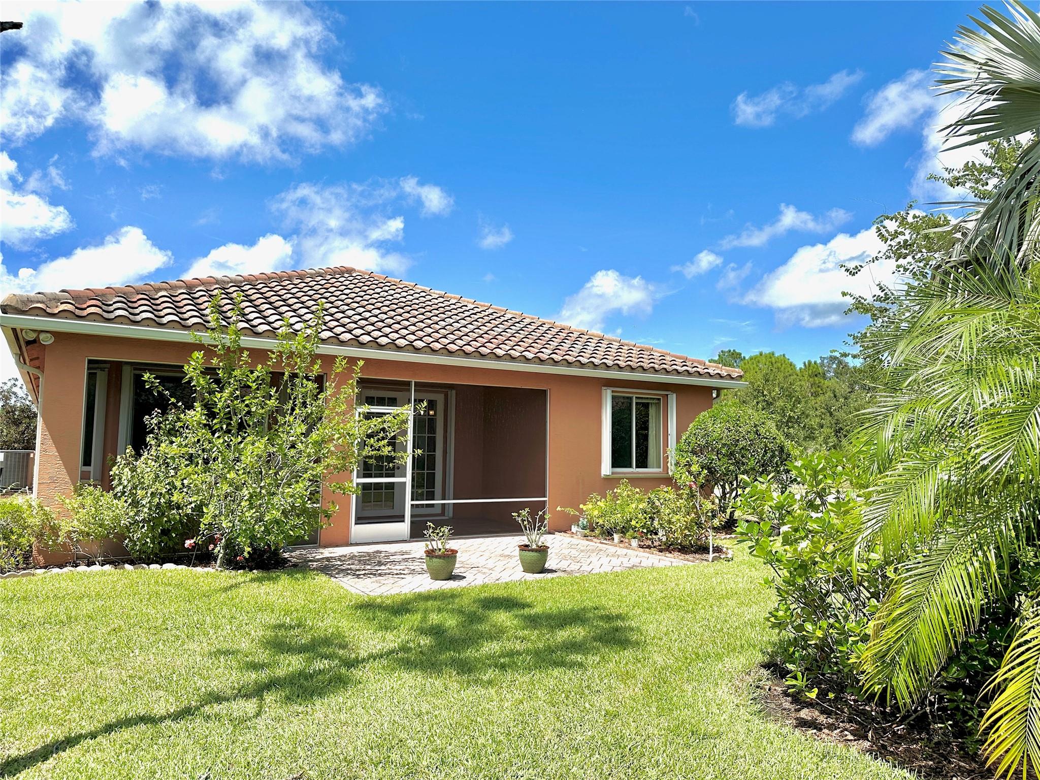 Single family home located in Vero Beach, Florida within the Woodfield Community, an active 55+ neighborhood. Features 2 bedrooms, 2 bathrooms + den. 2006 square feet of living space. The home includes an open-concept layout with porcelain floors in living area, wood-like flooring in bedrooms, vaulted ceilings, master suite with bay window, jacuzzi tub, and separate shower. The kitchen has 42" upper cabinets, granite counter and a breakfast nook. The home also offers a covered screened patio, an extended open patio. 2 car garage. The quarterly fee is $1489 and includes: TV/Internet, alarm monitoring, lawn service, all the amenities the community has to offer. New hotwater heater 2025, A/C 2017. A must see!