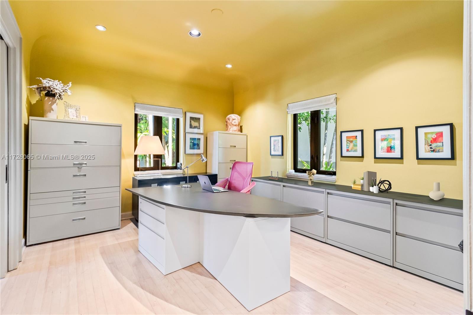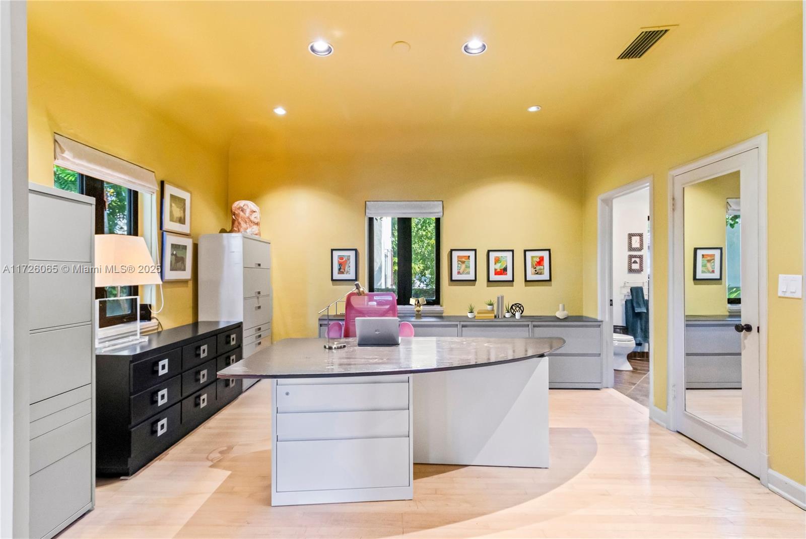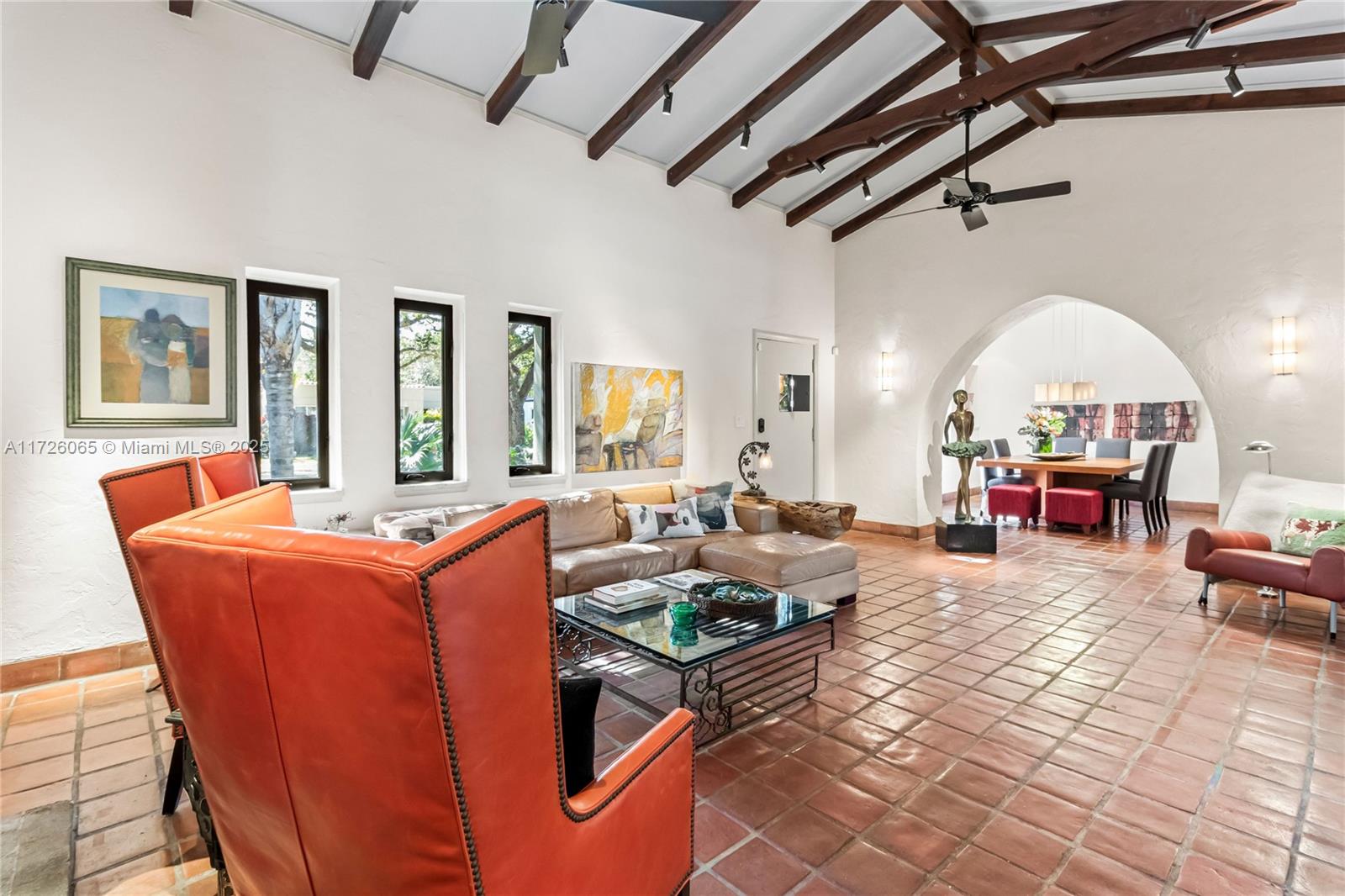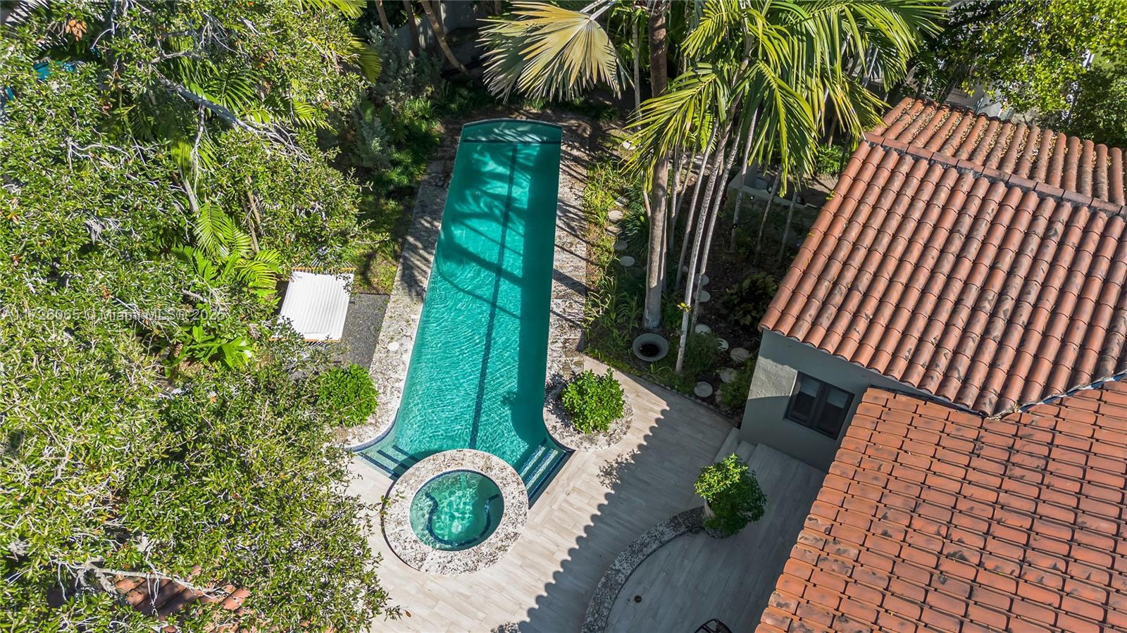 First time available in 18 years. This rare Mediterranean Revival home designed by famed architecture firm of Kiehnel and Elliott (Coral Gables Congregational Church, Scottish Rite Masonic Temple, Coral Gables Elementary School & numerous distinguished residences in Miami) has been comprehrensively updated w/luxe finishes. Main house consists of 3 bedrooms, 2.5 baths + a guest house w/1 bedroom & 1 bath. Chef's kitchen equipped with Sub Zero & Meile appliances, Poggenpohl cabinetry & quartz counter tops. All baths appointed w/unique imported stone & tiles. Newer roof & impact windows/doors. Oak hardwood & tile floors throughout. 2 car garage. Award winning lap pool, hot tub & lush tropical gardens sited on large 12,500 sq ft walled & gated lot on quiet, 1 block long low traffic street.
