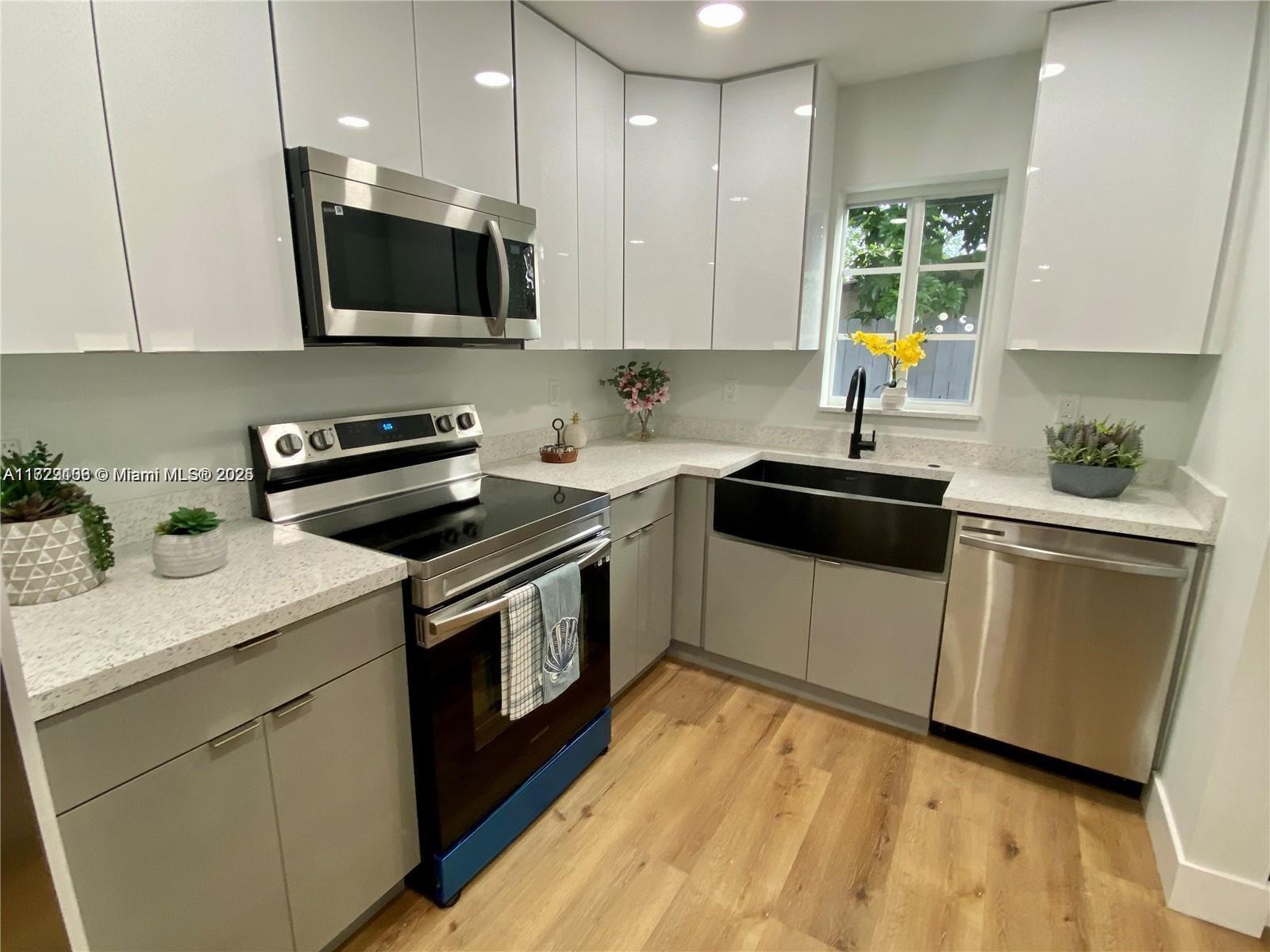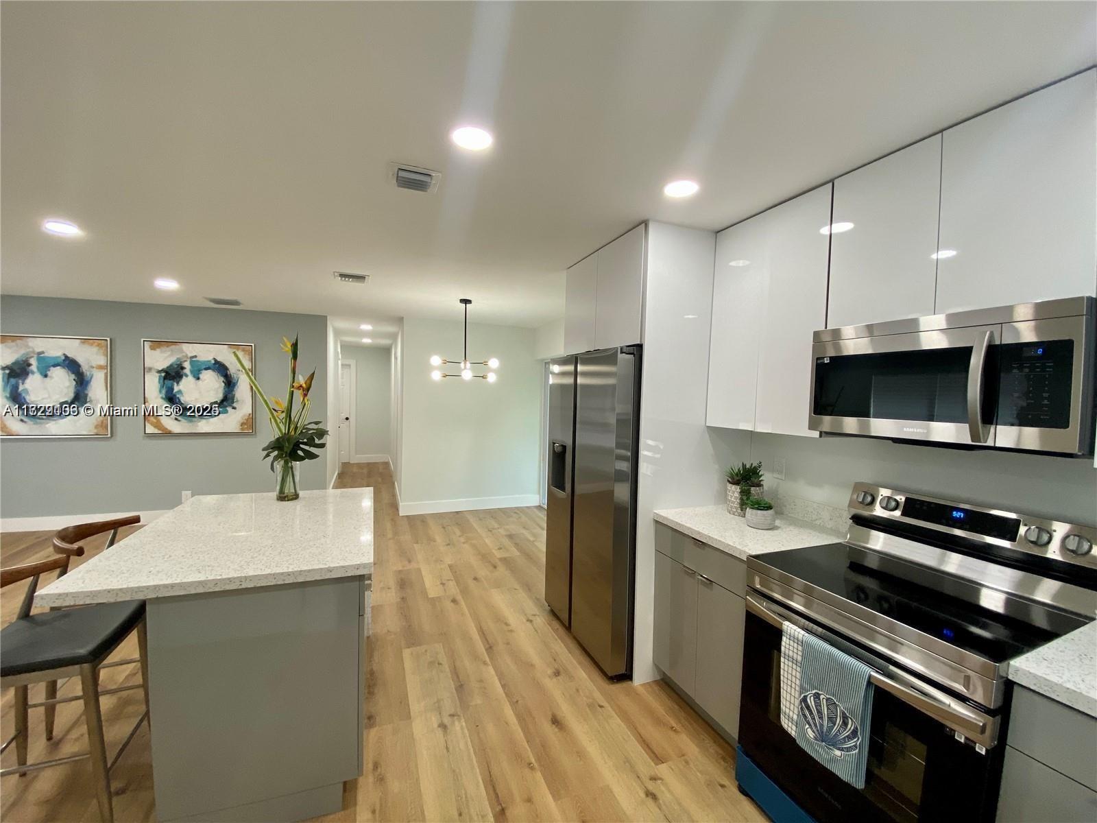 Beautiful Remodeled House for sale! Stunning 3 beds 2 baths. Open concept with great natural light, a huge fully fenced back yard with enough space for a swimming pool. Modern style kitchen with quartz counter tops, Top-Of-The-Line SS Samsung appliances, touchless faucet and oversized modern farm sink. Water efficient bathroom in beautiful porcelain tile, the house is energy efficient with LED lighting, tankless water heater and a new set of Samsung W/D. Great location! close to Downtown Ft Lauderdale, Close to I-95 and Oakland Park Blvd. NO Rental Restrictions and No HOA. Call today!