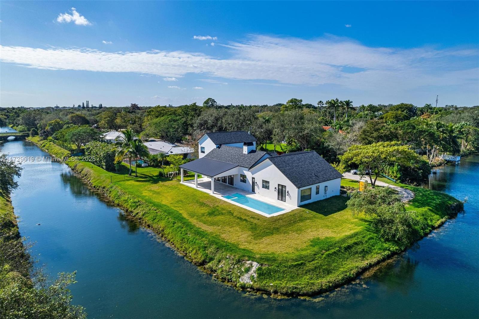 Exquisite Pinecrest residence just completed with CO ready for immediate occupancy! This contemporary modern farmhouse is one of a kind sitting on a quiet dead-end street with canal on 2 sides. Integrating a seamless indoor/outdoor living experience with natural white oak wood floors which blend the immaculate architecture & expressive details. With 6,389 SF this home includes 4 full bedrooms plus an office downstairs, 1 bedroom upstairs plus a flex space which can be used as a guest quarters, gym, office and/or home theater. 5.5 bathrooms inside main home plus full cabana bath. Must see it in person to appreciate! 2 car garage with lift space.