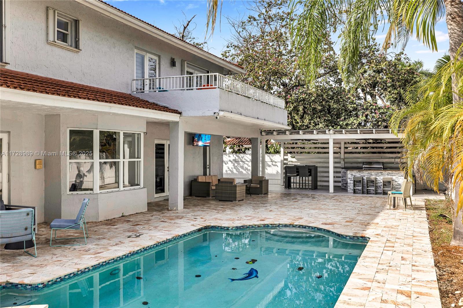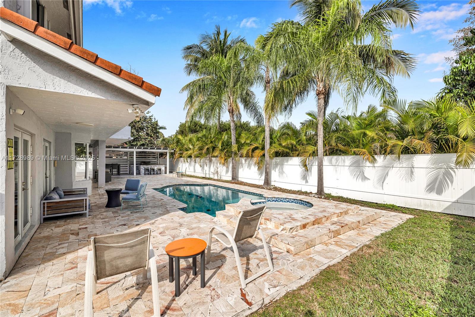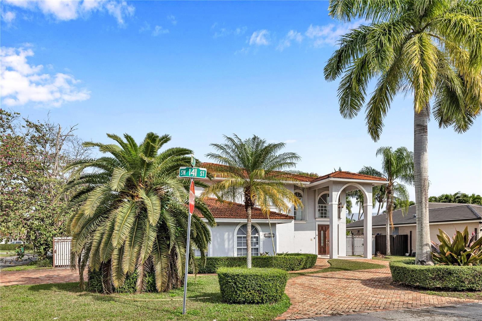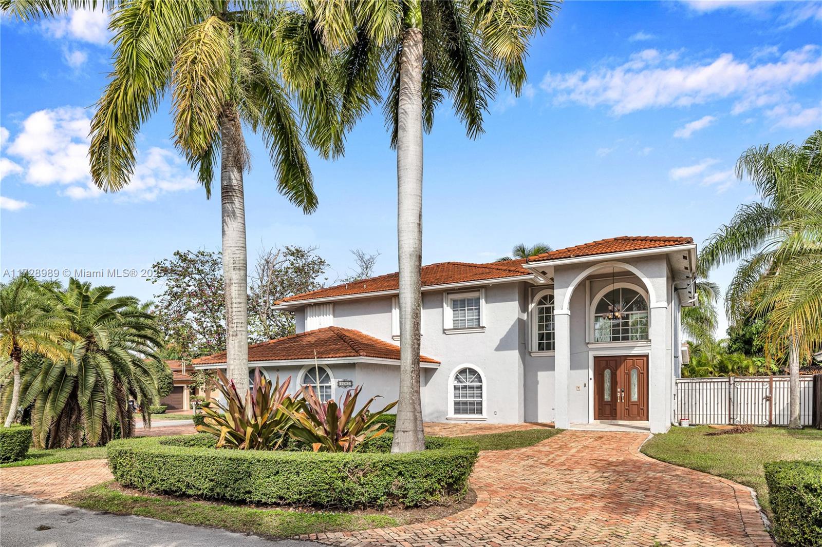 The Entertainers dream awaits! This corner lot property has it all! Beautiful custom staircase elegantly greets visitors while soaring ceilings allow for an abundance of natural light to drape the living spaces with color and softness. Spacious living areas serve perfectly for large get-togethers allowing for the party to spill out onto the gorgeous patio. All bedrooms amply sized with spacious closets and lovely wood flooring. Oversized primary bedroom offers plenty of room for a sitting area, private balcony, and spacious bathroom with private toilet room and jacuzzi tub. Exterior amenities include a travertine adorned patio/pool area complete with hot tub, summer kitchen and pergola to enjoy year round. Close to Zoo Miami, great schools, shops, parks and restaurants.