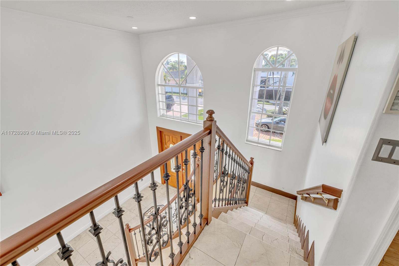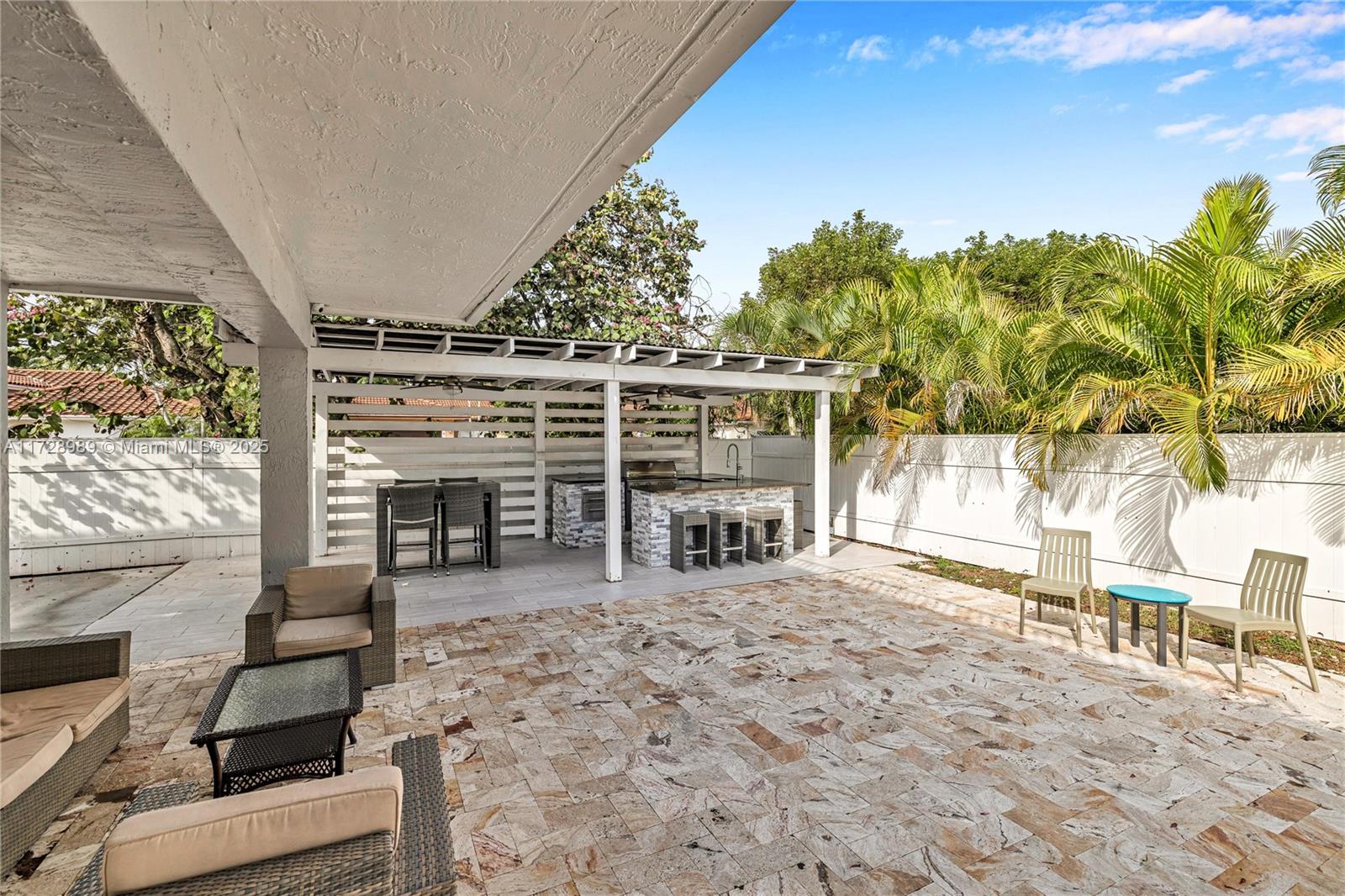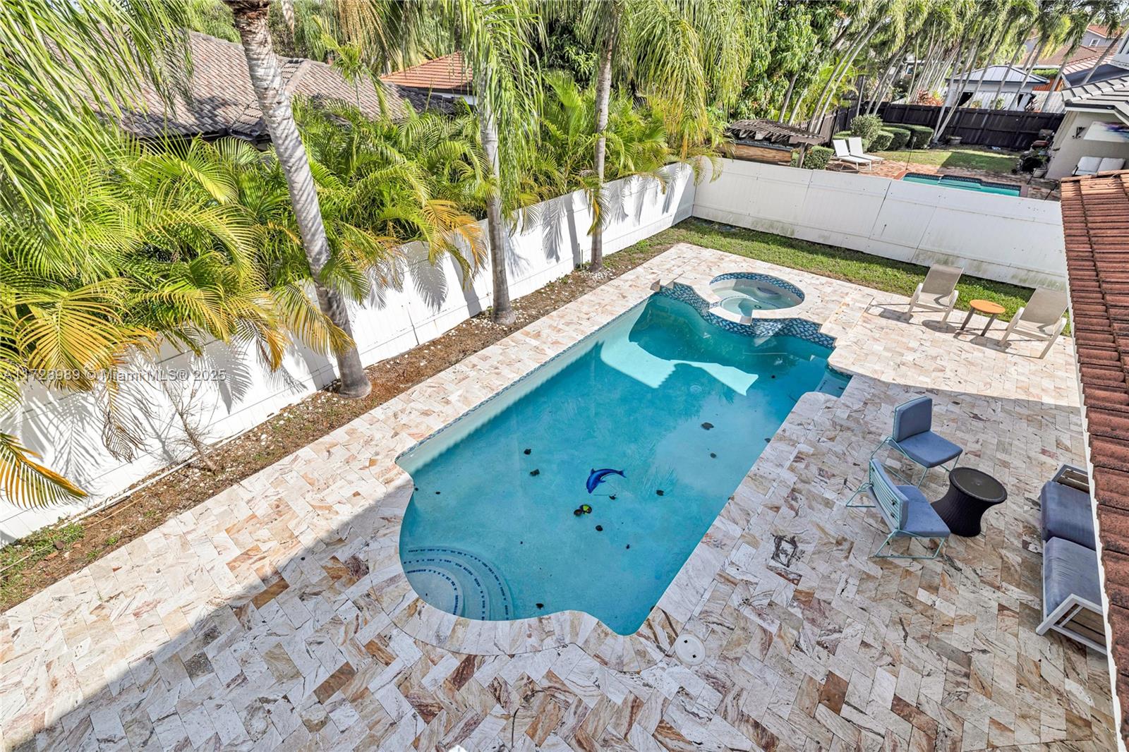 The Entertainers dream awaits! This corner lot property has it all! Beautiful custom staircase elegantly greets visitors while soaring ceilings allow for an abundance of natural light to drape the living spaces with color and softness. Spacious living areas serve perfectly for large get-togethers allowing for the party to spill out onto the gorgeous patio. All bedrooms amply sized with spacious closets and lovely wood flooring. Oversized primary bedroom offers plenty of room for a sitting area, private balcony, and spacious bathroom with private toilet room and jacuzzi tub. Exterior amenities include a travertine adorned patio/pool area complete with hot tub, summer kitchen and pergola to enjoy year round. Close to Zoo Miami, great schools, shops, parks and restaurants.