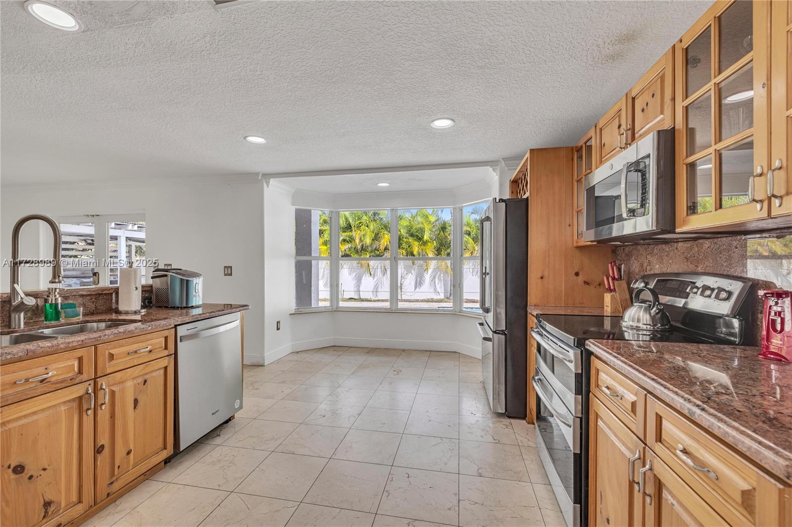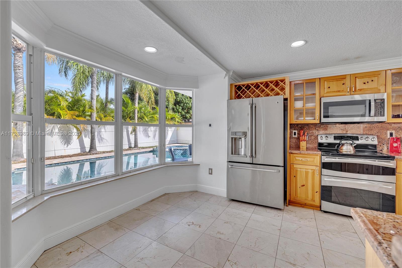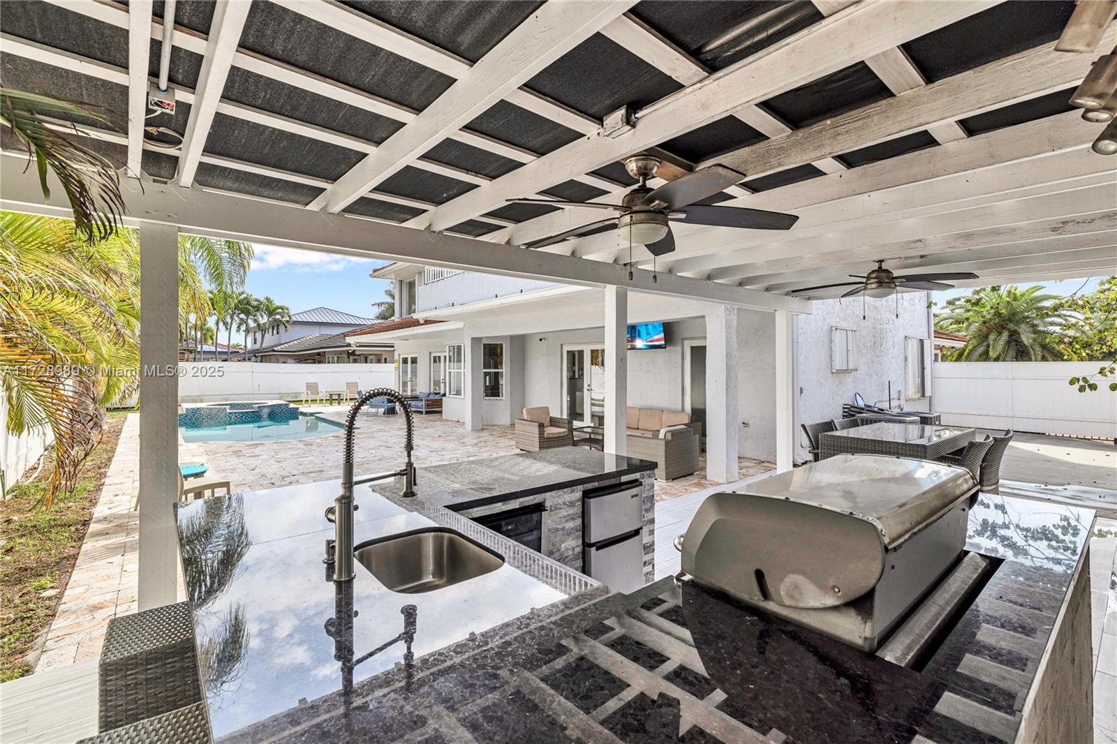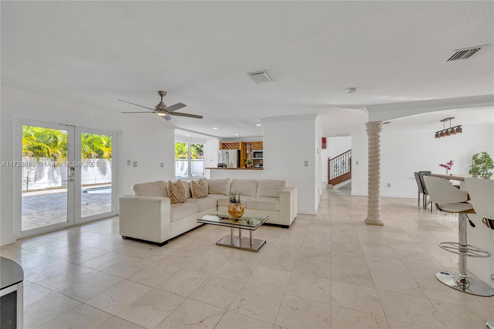 The Entertainers dream awaits! This corner lot property has it all! Beautiful custom staircase elegantly greets visitors while soaring ceilings allow for an abundance of natural light to drape the living spaces with color and softness. Spacious living areas serve perfectly for large get-togethers allowing for the party to spill out onto the gorgeous patio. All bedrooms amply sized with spacious closets and lovely wood flooring. Oversized primary bedroom offers plenty of room for a sitting area, private balcony, and spacious bathroom with private toilet room and jacuzzi tub. Exterior amenities include a travertine adorned patio/pool area complete with hot tub, summer kitchen and pergola to enjoy year round. Close to Zoo Miami, great schools, shops, parks and restaurants.