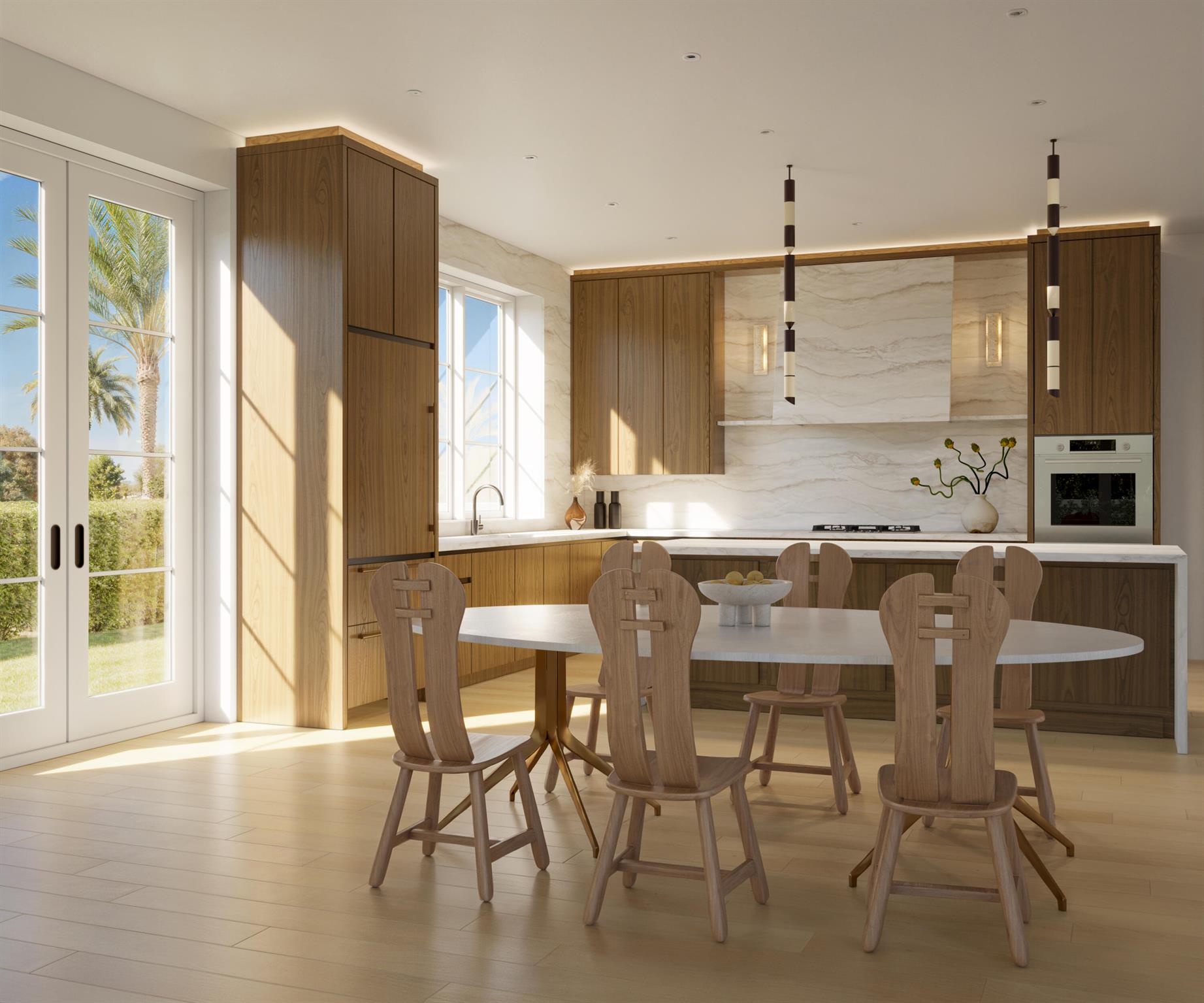 Brand-new construction on North Lake Way built by Wildes Builders and LaBerge and Menard Architect's. Featuring 90 feet of waterfront, a new dock, and luxurious interiors. Upon entering, you are greeted by a grand foyer with Jerusalem Gold limestone flooring that leads into the spacious living areas. The main floor boasts an open kitchen equipped with Gaggenau and Sub-Zero appliances, Taj Mahal stone countertops, an island with seating, and a breakfast area. This space seamlessly flows into the family room, which opens to a covered outdoor loggia overlooking the large pool. Adjacent to the kitchen is a butler's pantry, also outfitted with Taj Mahal stone countertops, and a private dining room for formal gatherings. The separate living room provides additional space for relaxation or