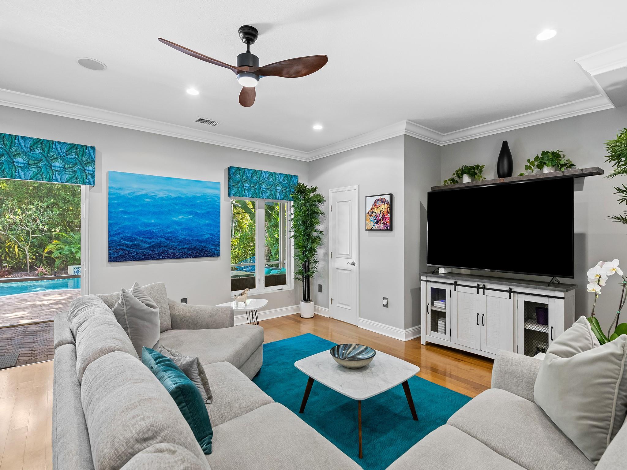 This stunning 3 Bed / 2.5 Bath Coastal style home in Victoria Park enchants with lush landscaping & timeless elegance. Enjoy upgrades like Impact Windows/Doors, Metal Roof, Natural Gas, Heated Pool w/water feature, Lanai bath, Screened Patio, and a Chef’s Kitchen with gas range & premium appliances along with 2 (!!) laundry rooms. The spectacular 2nd-floor Owner’s Suite features a lavish bath, boutique-style closet, two private balconies, and relaxing sitting area. Two private and serene ground floor spacious guest rooms with walk-in closets share a Jack-and-Jill bath. A grand circular paver driveway, covered entry and 1-car garage complete this perfect home. Come see it today!