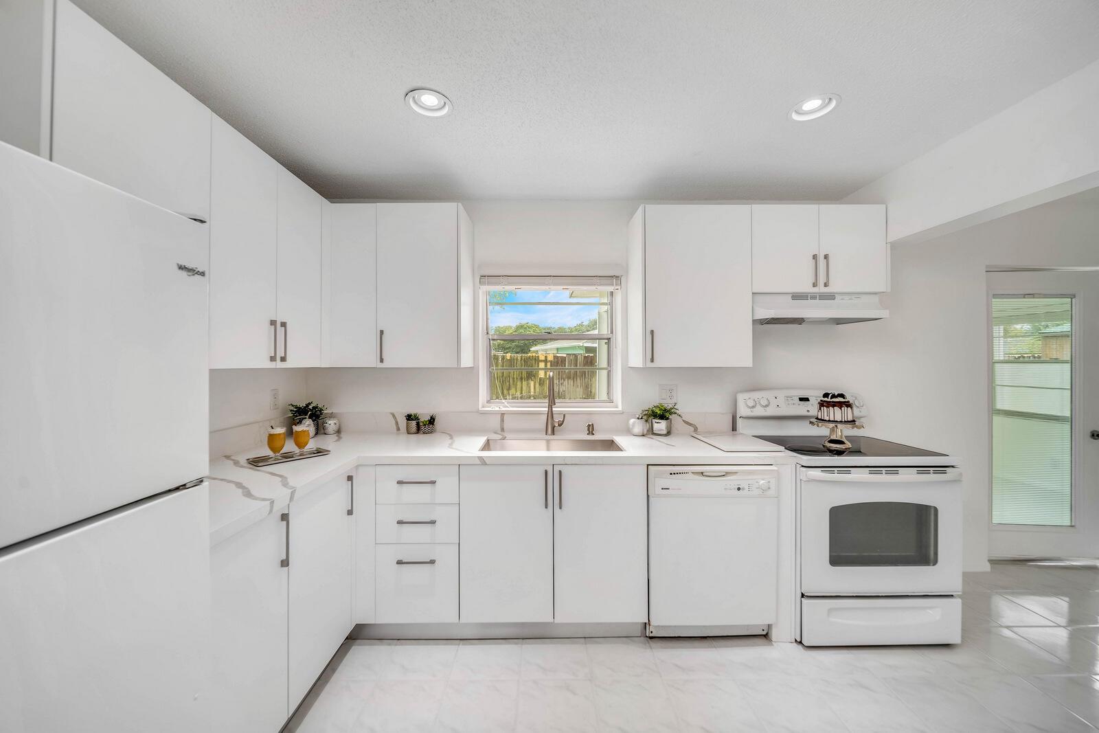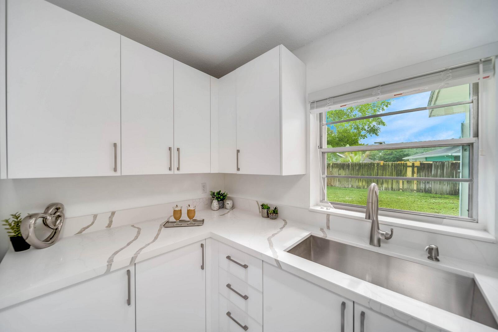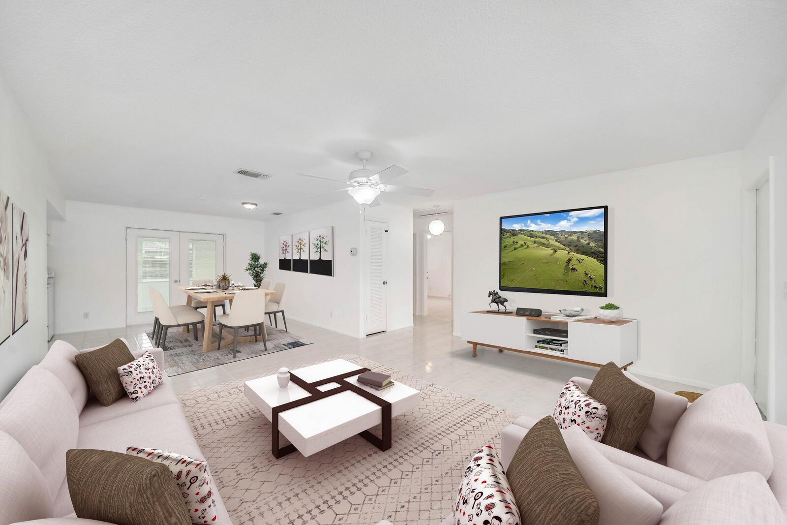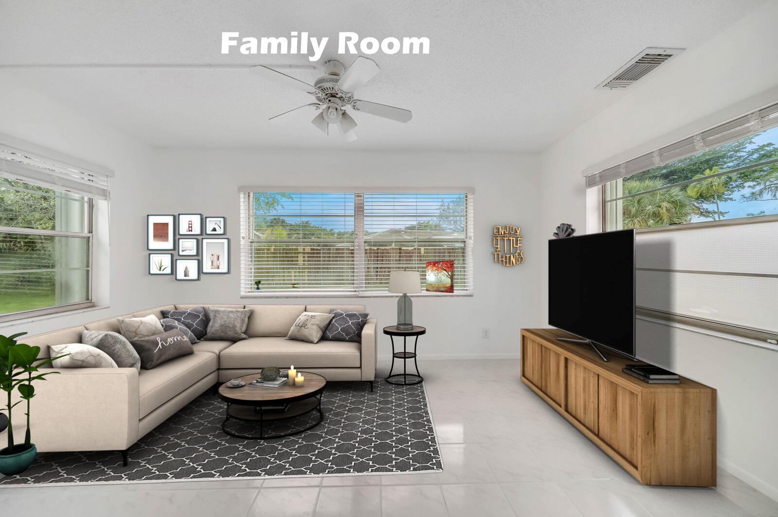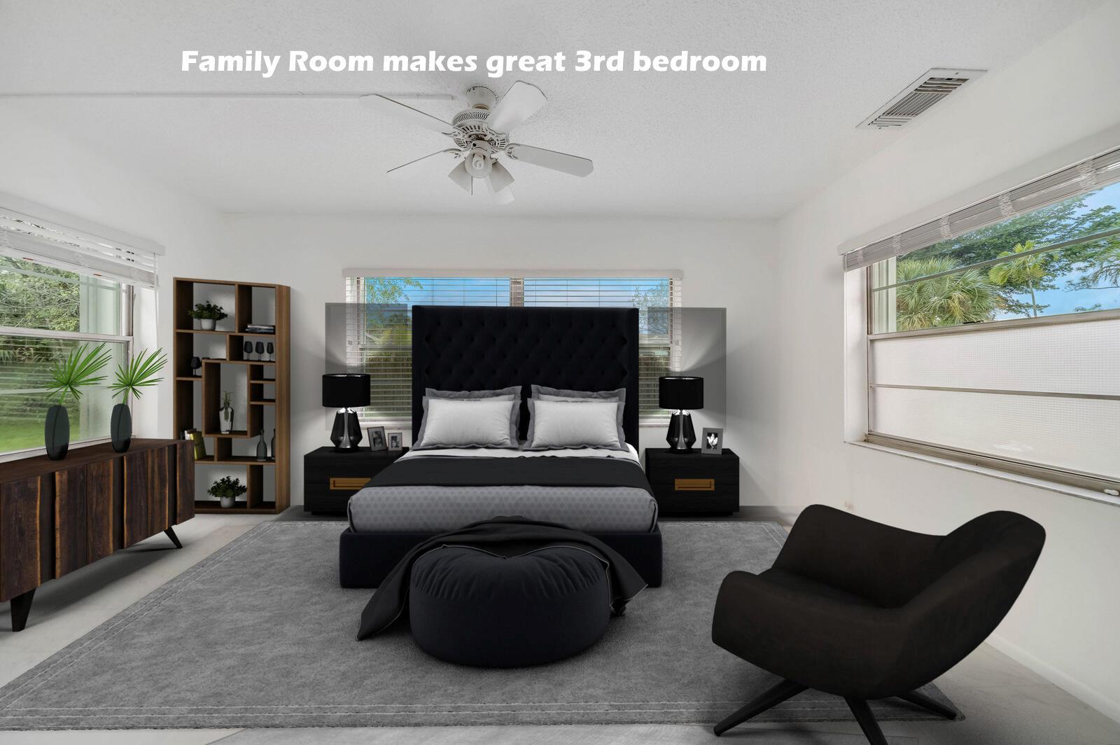 BEST DEAL IN BOCA RATON! Meticulous MOVE-IN Ready CBS construction not wood (other homes in this price point are wood construction or you have to join a country club). No country club membership to join/Just a super low HOA fee of only $75 a month! Home features 2 bedrooms plus a large separated family room with double doors that has always been used as a 3rd bedroom, 2 Baths, 1 Car Garage, 2 Car Wide Driveway with located in Southwind Lakes Aka American Homes. Big backyard with a huge 7,675 square foot Lot with plenty of room for a pool. Fenced in backyard w/double wide opening gate. Updated kitchen with quartz counter tops, new cabinetry and more! Open & bright! New blinds on windows. Newer roof from 2011. Seller did 4 point inspection 10/24. Report states roof has 12 years life left.