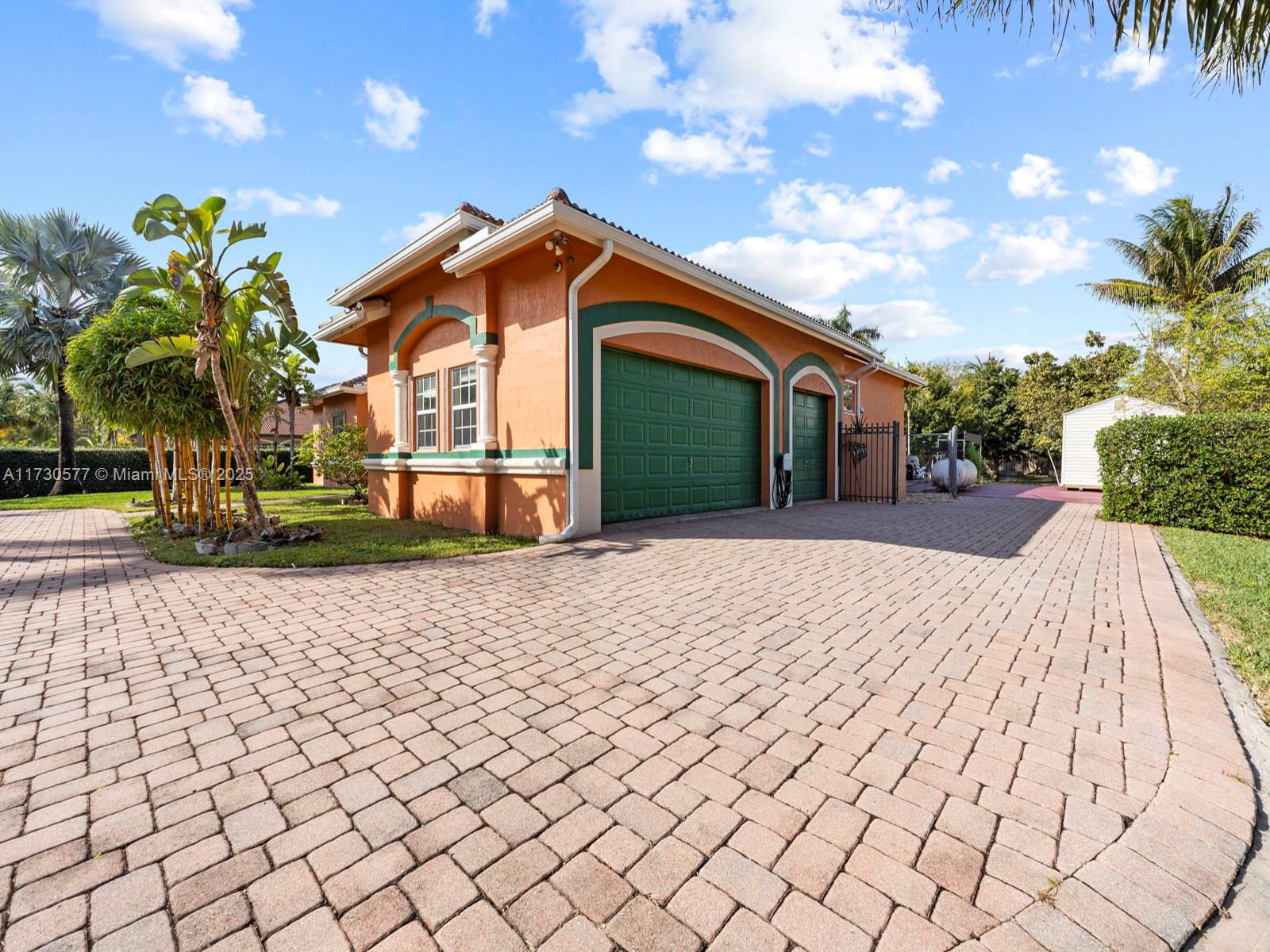 Discover your dream home in Homestead, FL! This stunning 4-bed, 3-bath, one-story gem spans total of 4,608 sqft on a .91-acre oasis. Entertain effortlessly in the spacious layout with high ceilings and 8-foot doors. The kitchen boasts stainless steel appliances, a professional exhaust vent, and a water softener system for the whole house. Enjoy the luxury of a pool, jacuzzi, and numerous fruit trees, all maintained by well water irrigation. Features include a fully functioning Generac generator, salt tank water system, and two efficient AC units (one new, one 3 years old). Relax in the glass-enclosed terrace. Don't miss this perfect blend of comfort and elegance!