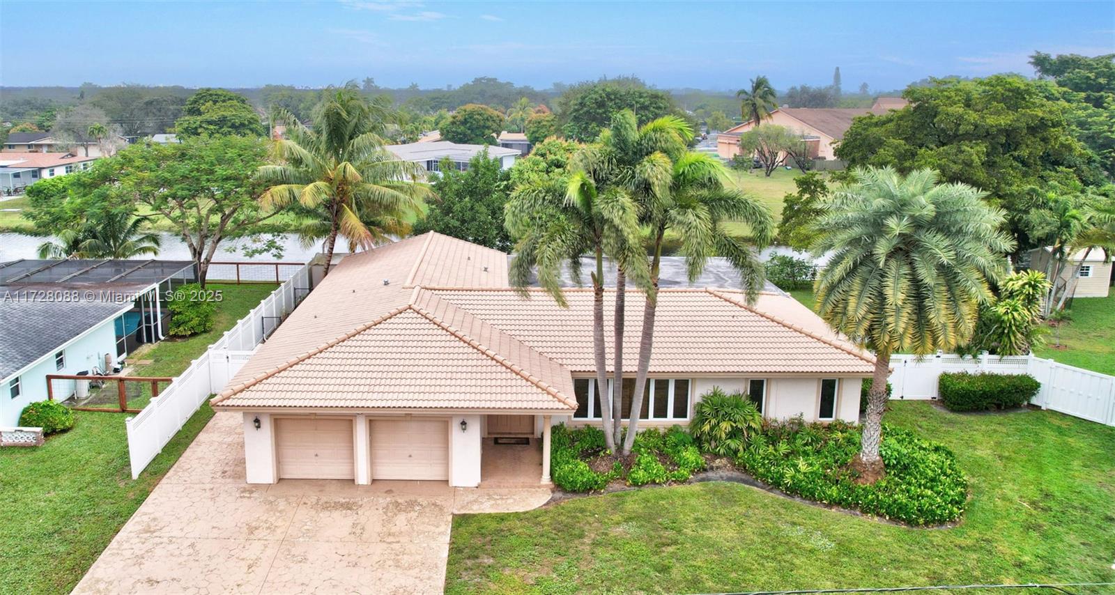 Fantastic home in Secluded Gardens w/ 3325 sq. ft. under air. Positioned on a oversized, 13,300 sq. ft. lot w/ waterfront view! No HOA. Impact Glass Windows. Renovated kitchen features wood cabinetry, granite countertops, large island, double oven. Microwave, stovetop & dishwasher installed (2022). Open living space, great for entertaining. Split bedrooms. Indoor BBQ grill w/ ventilation system, sink, refrigerator, 2 burners & built in cabinets. Tile flooring throughout. LED recessed lighting. Plantation shutters. Both bathrooms completely renovated. Large closets w/ built ins. Main AC installed (2018). (2) mini split AC units installed (2022). Rheem Water heater (2021). Indoor laundry room. Completely fenced property w/ tons of room for a pool, RV & Boat storage. Low traffic street.