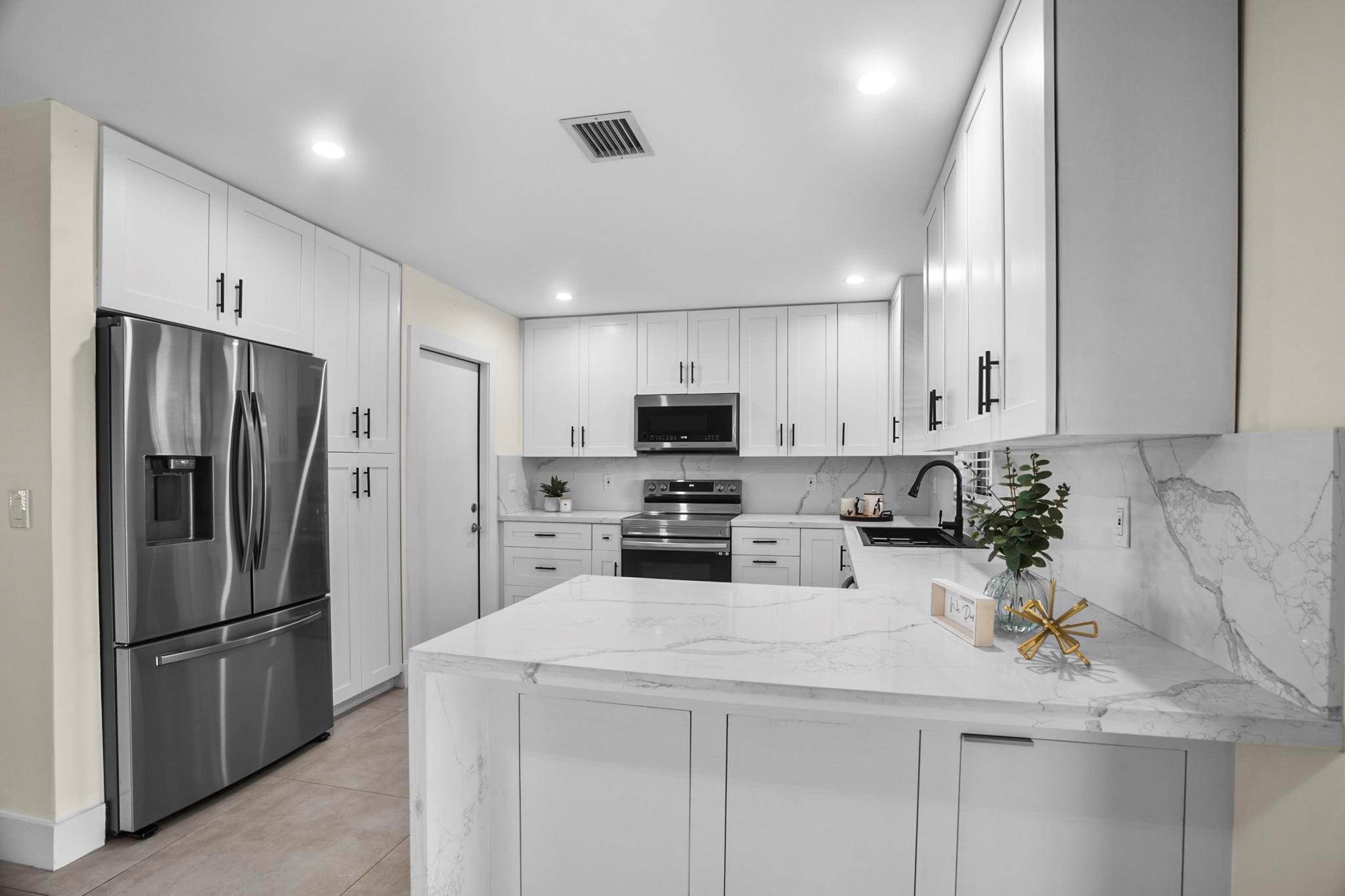 This beautifully renovated ranch-style home offers modern updates throughout, including new flooring, a stunning new kitchen, and completely remodeled bathrooms. Featuring three bedrooms (two bedrooms & office) and two full baths, this home provides comfort and style. The large screened patio and fenced yard are perfect for outdoor living. With new impact windows and sliding door, you can enjoy added security and peace of mind. Additional highlights include a tankless hot water system, a 2020 AC unit, an updated sprinkler system, and a newer electric panel. The third bedroom has a new split AC unit for enhanced comfort. Enjoy the community's amenities, including a gorgeous pool, playground, and tennis courts, all with a low monthly HOA fee. A 2 car garage completes this exceptional home