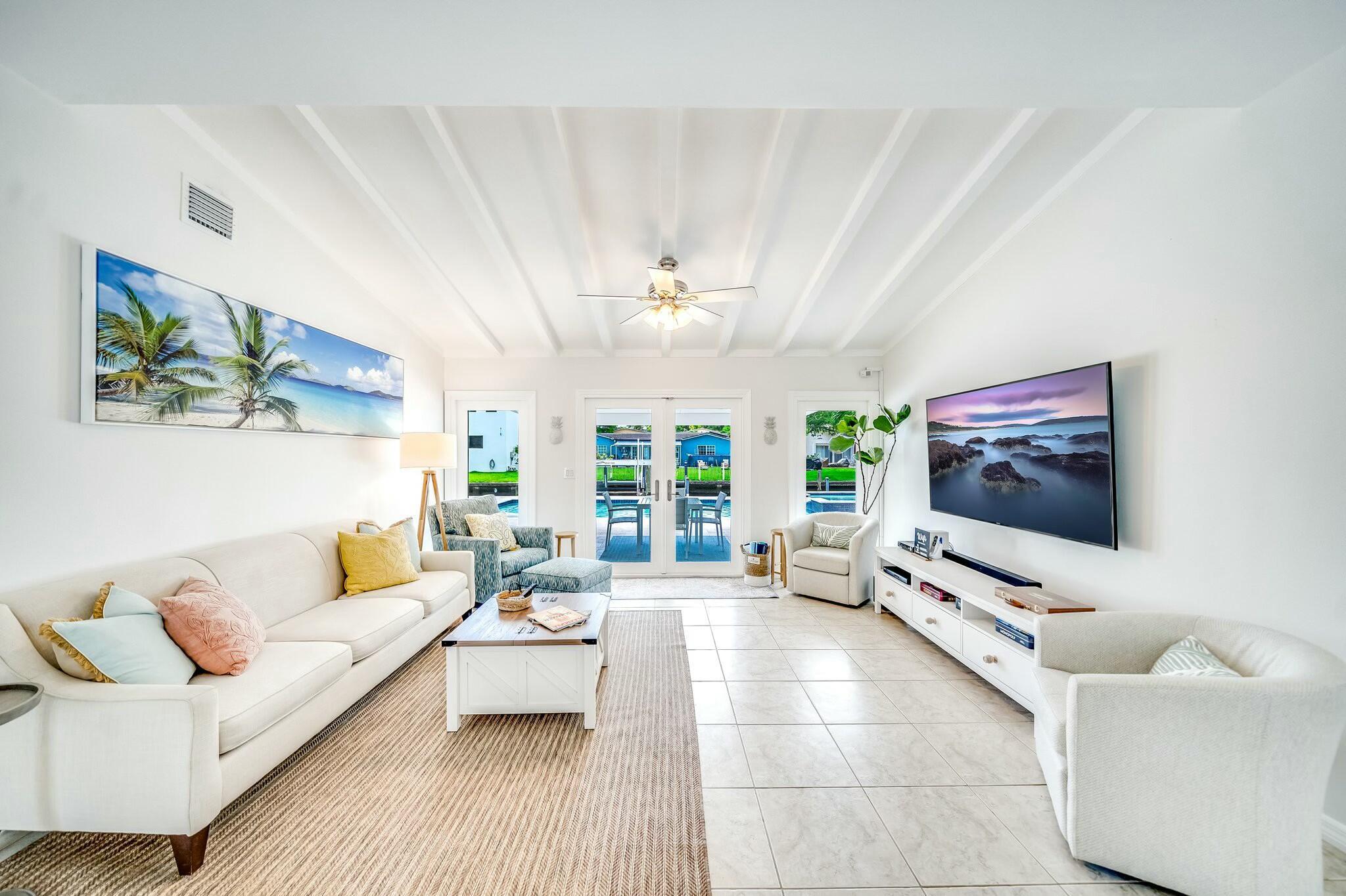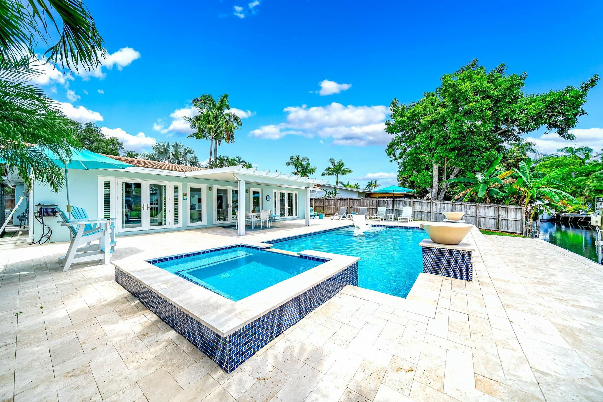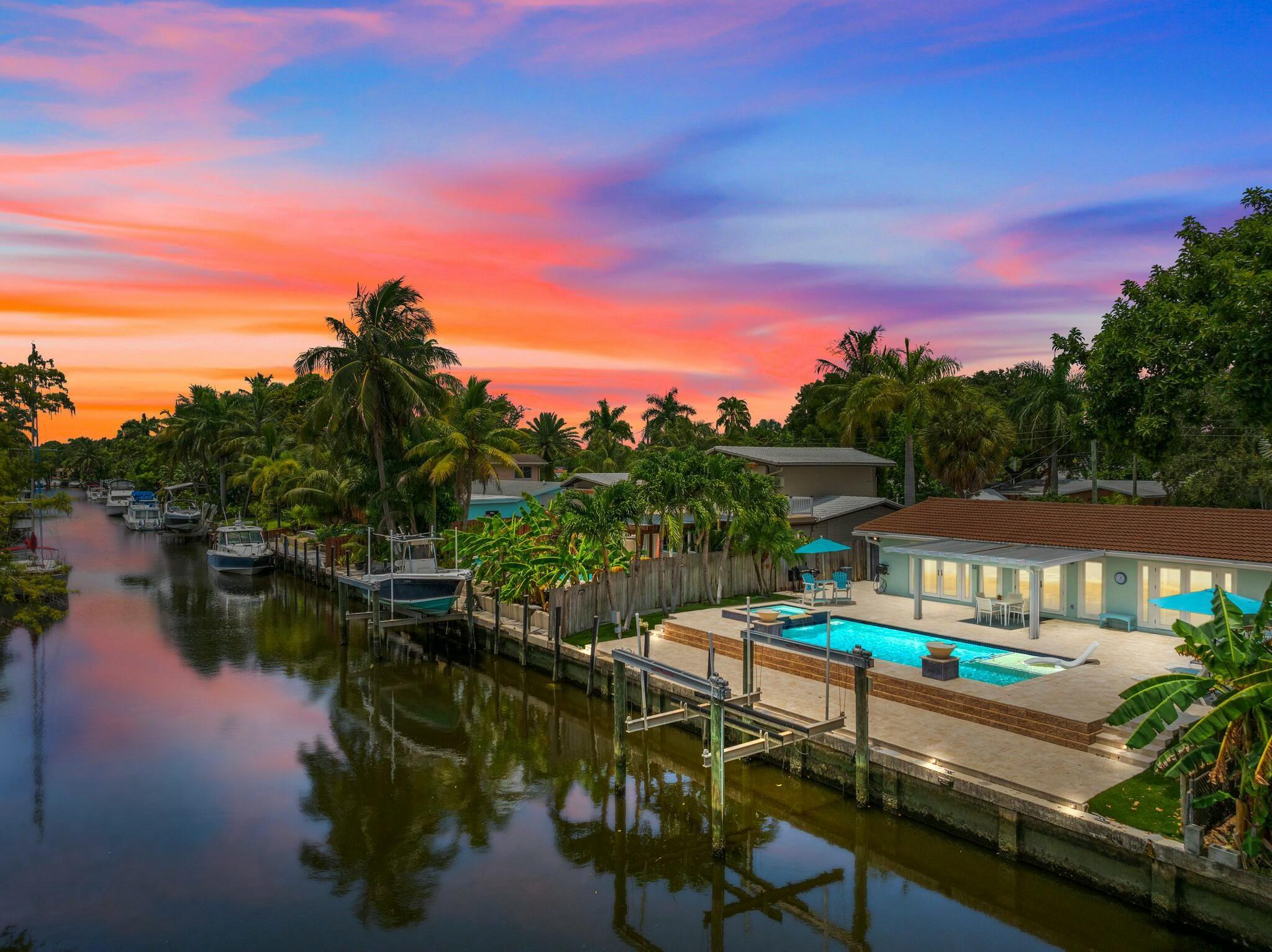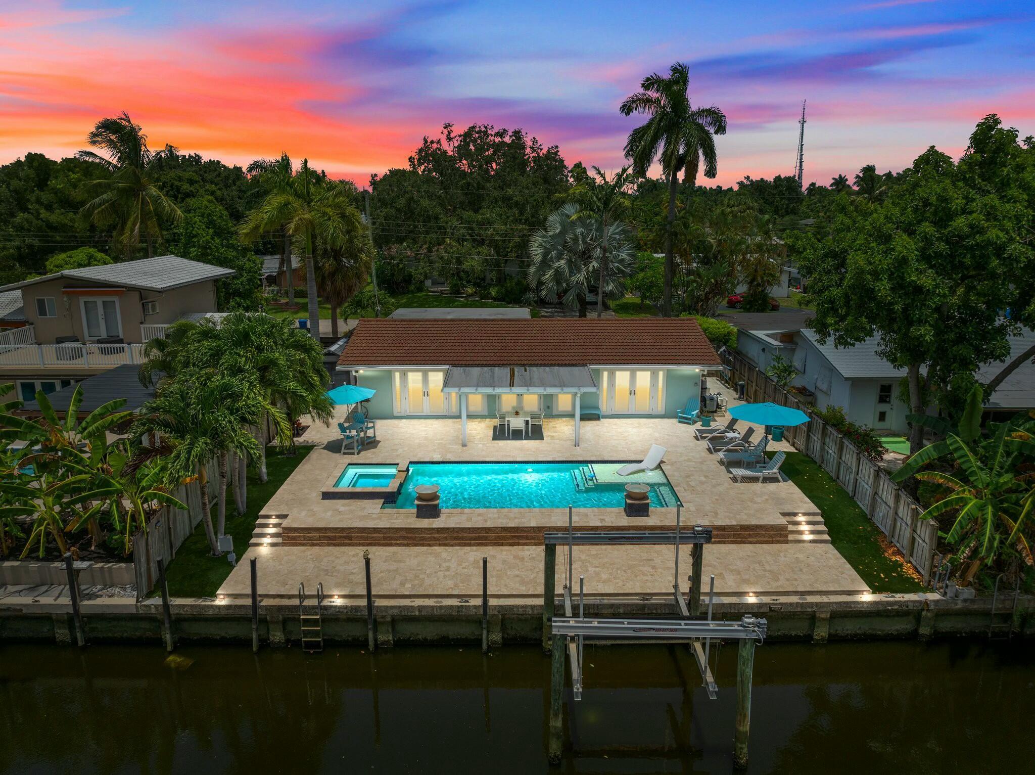 :Experience waterfront luxury in Fort Lauderdale This exclusive property offers three bedrooms, two bathrooms, and a sophisticated living space, boasting with waterfront views. Dive into relaxation with a heated saltwater pool and enjoy 65 feet of canal frontage with a 13k lb boat lift. The modern kitchen features quartz countertops and stainless steel appliances. Revel in open beam ceilings, and natural light. Upgrades include renovated bathrooms and high-end finishes, impact windows, and a Generac generator. Home is also a current Income producing air bnb property! Don't miss this rare opportunity to own your waterfront oasis in Fort Lauderdale, minutes to downtown, Las Olas, and Beaches!