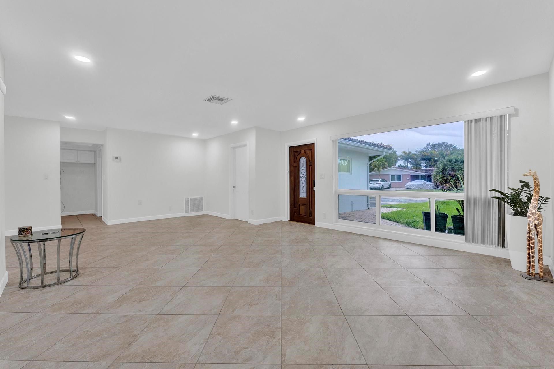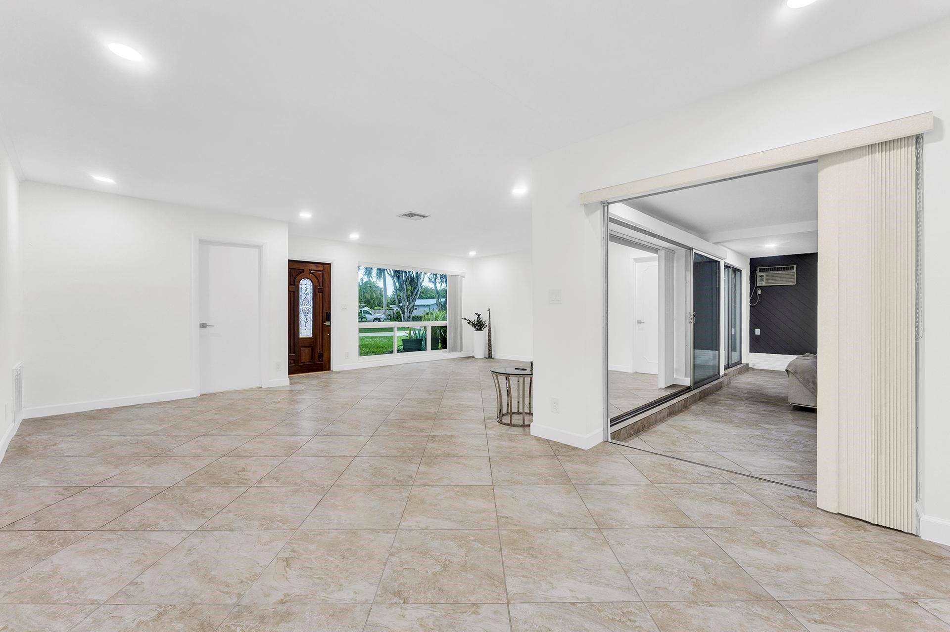 This home is just waiting for you to add your finishing touches and additional updates. Come see this large 3-bed 3-bath home in Coral Ridge Isles. Each bedroom has its own attached bathroom for split 3 Master Bedrooms. Featuring New Impact Windows in the front half of the home and Accordion Shutters for remaining windows for your hurricane protection. All 3 bathrooms have been nicely updated. Two bathrooms feature new white cabinet vanities with new quartz countertops, new marble look tile, new lighted mirrors. A converted 2 car garage is your 3rd master bedroom/bathroom. Large Florida room for extra living space. Separate laundry room. Natural Gas. Two of the bedrooms have terrazzo floors in great condition and tile in rest of the house.