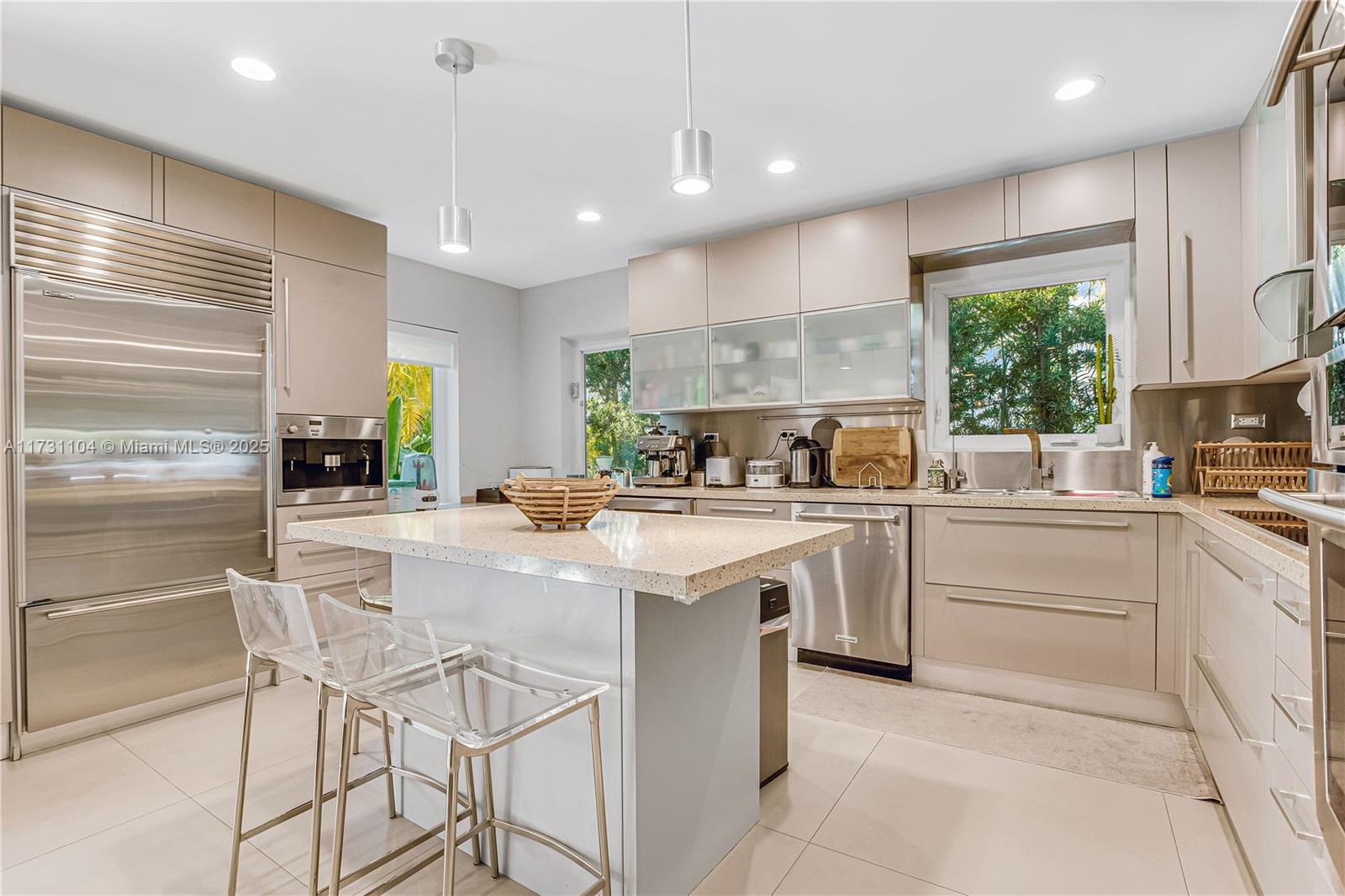 Nestled on an oversized 8,400 SF lot, this property provides plenty of room for outdoor activities including an oversized heated pool, Large Gazebo w/ built in BBQ and much more! This spacious fully renovated 5 BR/3 Bath gem offers 2,507 SF of comfortable living space, perfect for both relaxation & entertaining. Step inside to discover a bright & airy open floorplan, where natural light floods thru large hurricane impact windows, highlighting the elegant finishes throughout. The well-appointed chef's kitchen comes equipped w/ high-end Scavolini Cabinets, Miele & Subzero appliances, making clean-up a breeze after hosting friends and family. Located in the vibrant Surfside community, this home is just a short stroll from local shops, places of worship, fine dining & beautiful beaches.