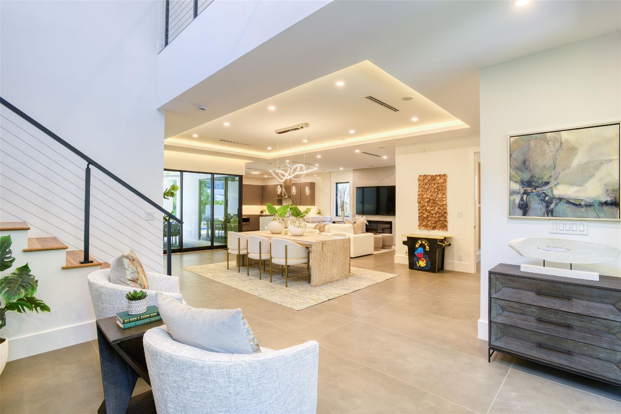 This Rio Vista New Construction home offers a stunning blend of style & function. The open-concept 1st floor features accordion doors that seamlessly connect the living room to the lanai, creating an indoor-outdoor flow perfect for entertaining. A versatile guest suite w/ a full bath opens to the lanai & can double as a home office. Upstairs, the luxurious primary suite impresses w/ his-and-her closets & a spa-inspired bathroom featuring a soaking tub within the shower. 2 generously sized guest bedrooms share a modern Jack-&-Jill bathroom. The gourmet kitchen has Wolf & Sub-Zero appliances, custom cabinetry, & elegant finishes. High ceilings, porcelain tile floors, & accent lighting enhance every space. Step outside to your private oasis, complete w/ a pool, hot tub, & lush landscaping.