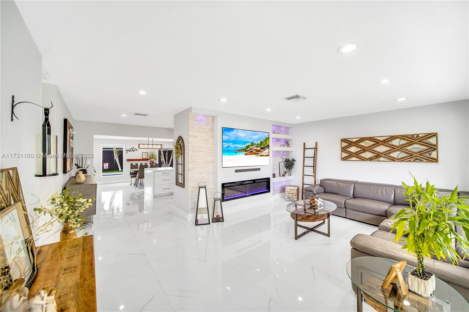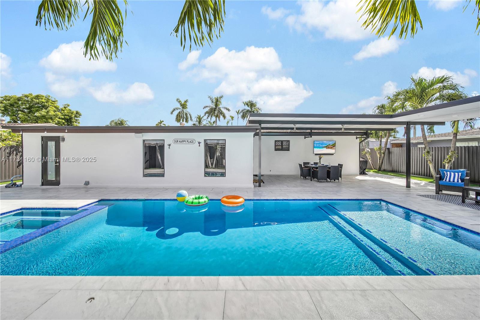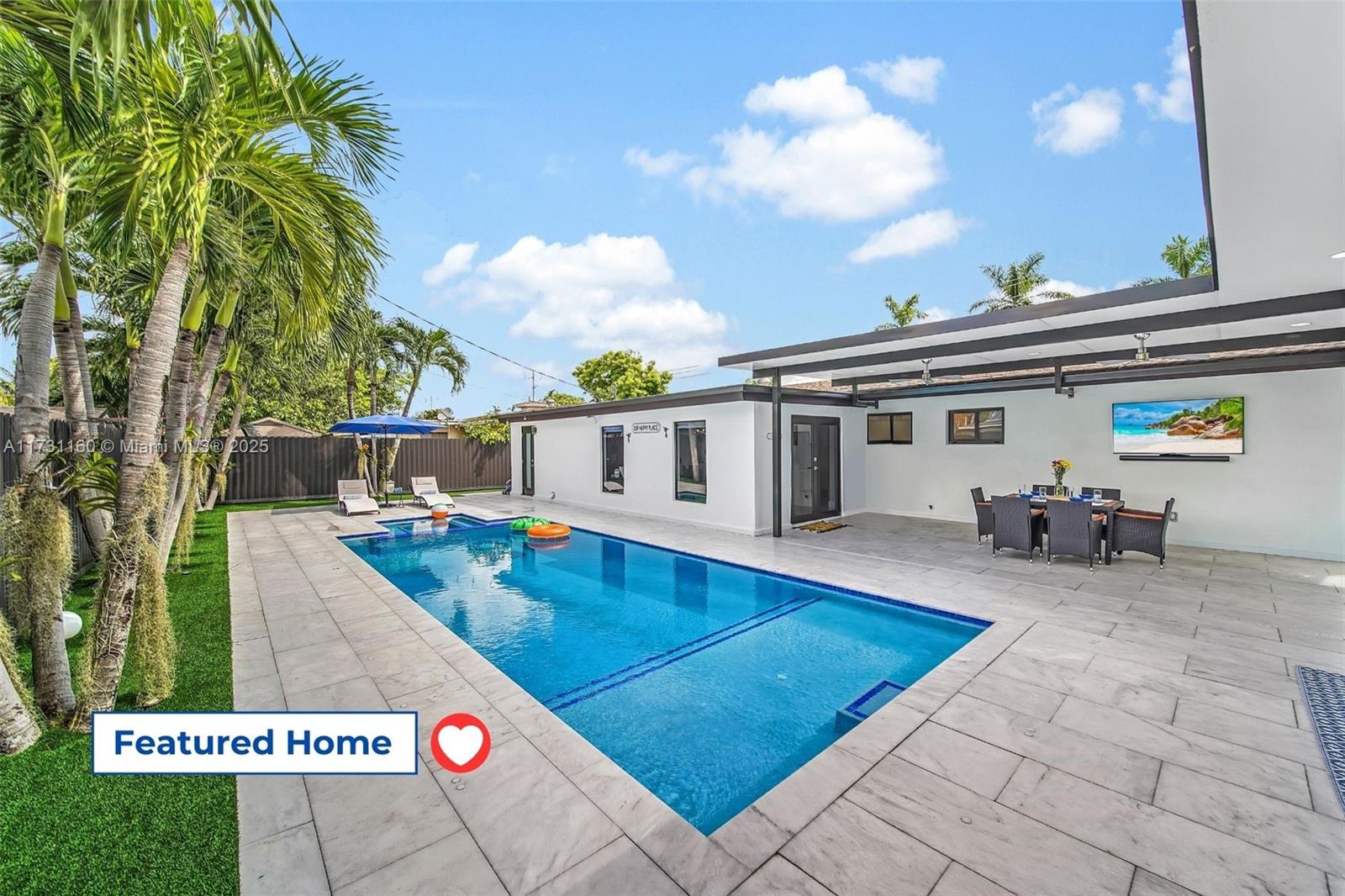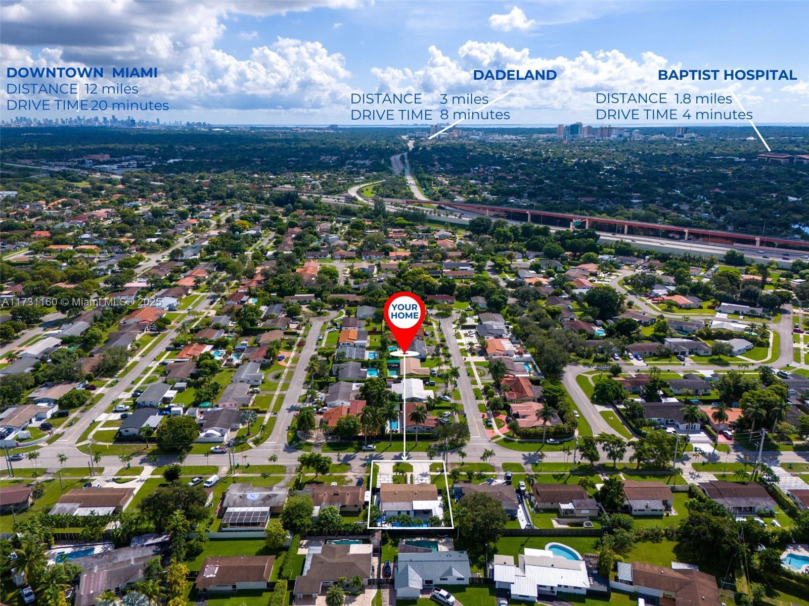 Completely Remodeled Turn-key 4-Bed, 3-Bath Pool Home, blending modern comfort and style. This gem includes a versatile private suite w/its own entrance, bathroom, and walk-in closet—perfect for guests, in-laws, or home office. Inside, enjoy sleek porcelain tile floors, a cozy living room w/a TV wall + chimney, and a chef-inspired kitchen with a Large Kitchen Island, featuring custom shaker cabinets, quartz countertops, and premium stainless steel appliances. The backyard is a private paradise, boasting a 15x30 heated pool with Jacuzzi, an insulated pergola, and lush landscaping with orchids and palm trees. Recent upgrades include a new roof, pool, and pergola, plus hurricane-impact windows and a smart home system. Located near Baptist Hospital, Dadeland Mall, and major highways.