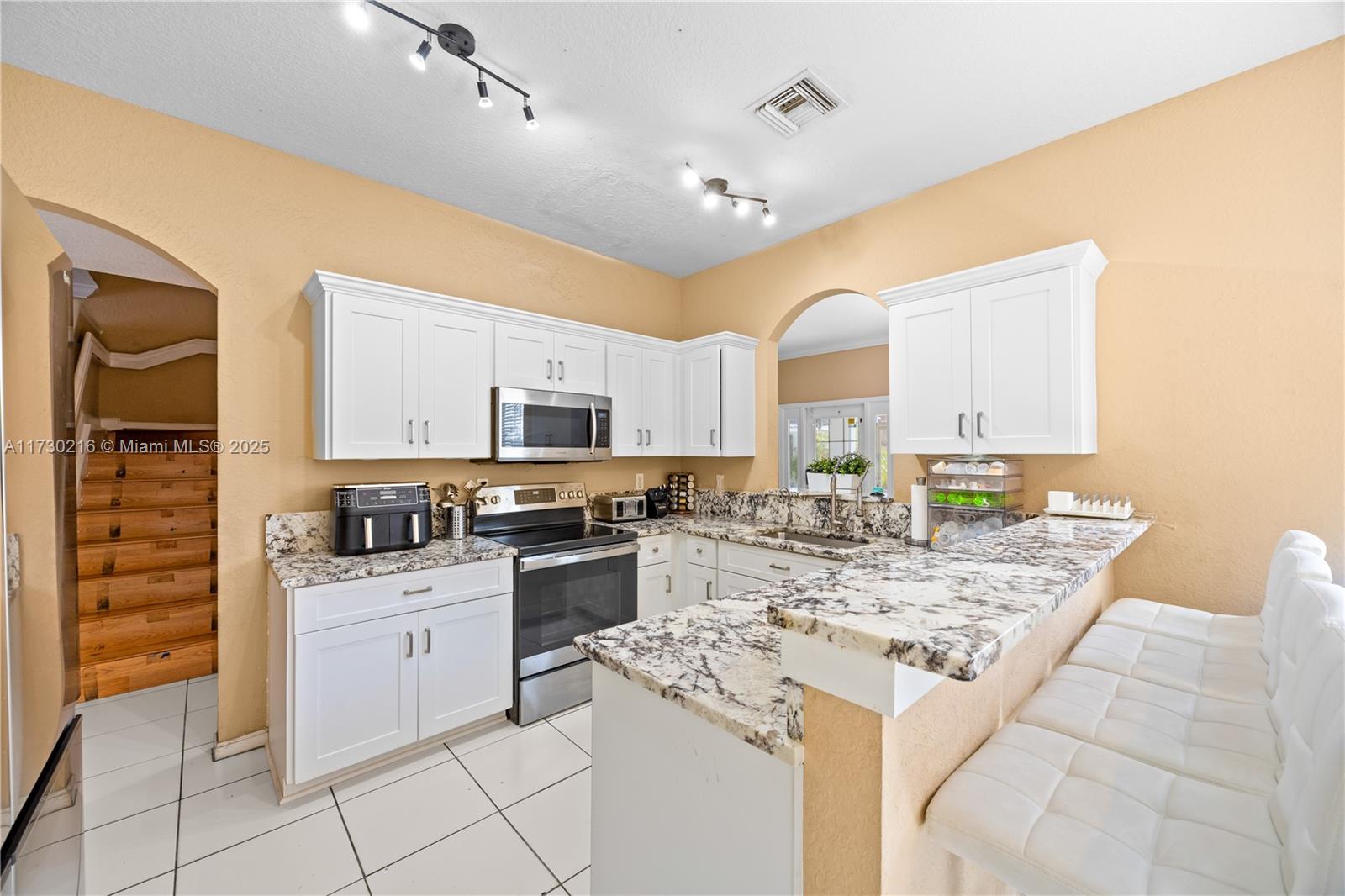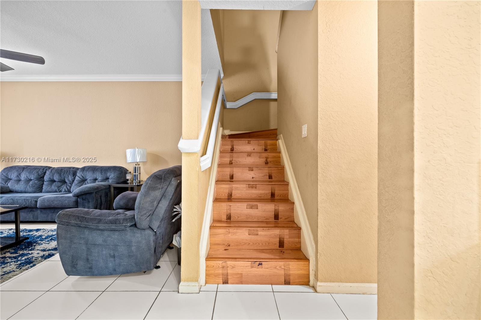 3-bedroom, 2.5-bathroom home, complete with an office/den and a 2-car garage, offers a perfect combination of comfort and modern upgrades. Key features include:Brand-new kitchen (2023) with Level 2 granite countertopsNew roof (2023)Updated appliances (2022)Wireless water heater(2024)Remodeled master bathroom (2024) with double sinks and a showerT he home boasts spacious tiled living areas downstairs, laminate flooring upstairs, and high ceilings that enhance its open and airy feel. The master bedroom includes a large walk-in closet, offering plenty of storage space.Located right next to North Community Park, it’s within walking distance of top-rated A+ elementary and high schools, making it an ideal choice .Upgraded home 200 AMP,TESLA CHARGING STATION PLUG FOR 2 CARS, HURRICANE SHUTTERS