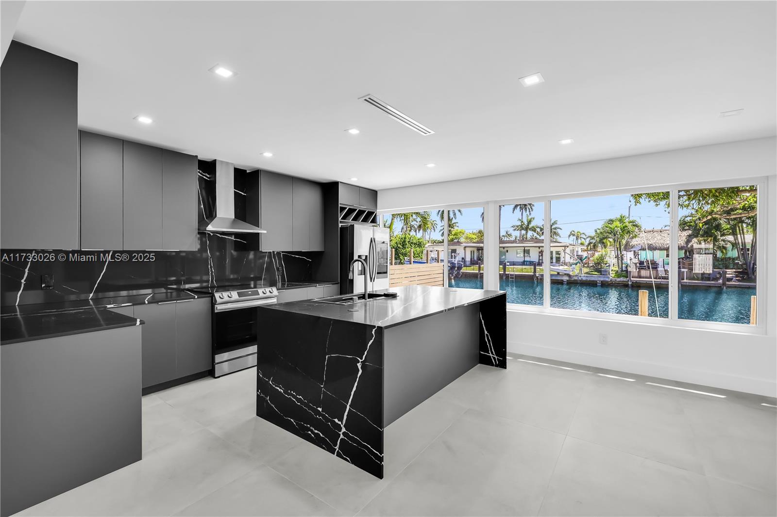BRAND NEW ROOF, BRAND NEW AC, ALL IMPACT WINDOWS. This stunning property has undergone a meticulous transformation revealing a masterpiece of modern living with 70 ft of water frontage & ocean access. Every inch of this residence has been thoughtfully reimagined. The heart of this home is its modern kitchen & open layout with tile floors, plenty of natural light creating a bright & welcoming ambiance. Step outside to the expansive outdoor oasis, where the enchanting melody of the water complements the generously sized patio invites al fresco dining while the private dock offers a gateway to endless nautical adventures.