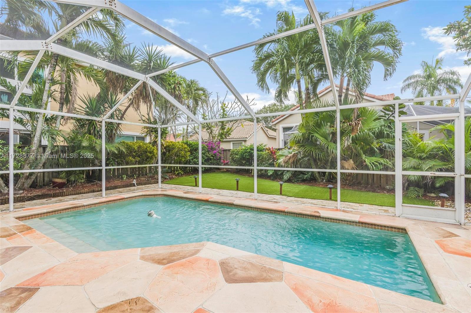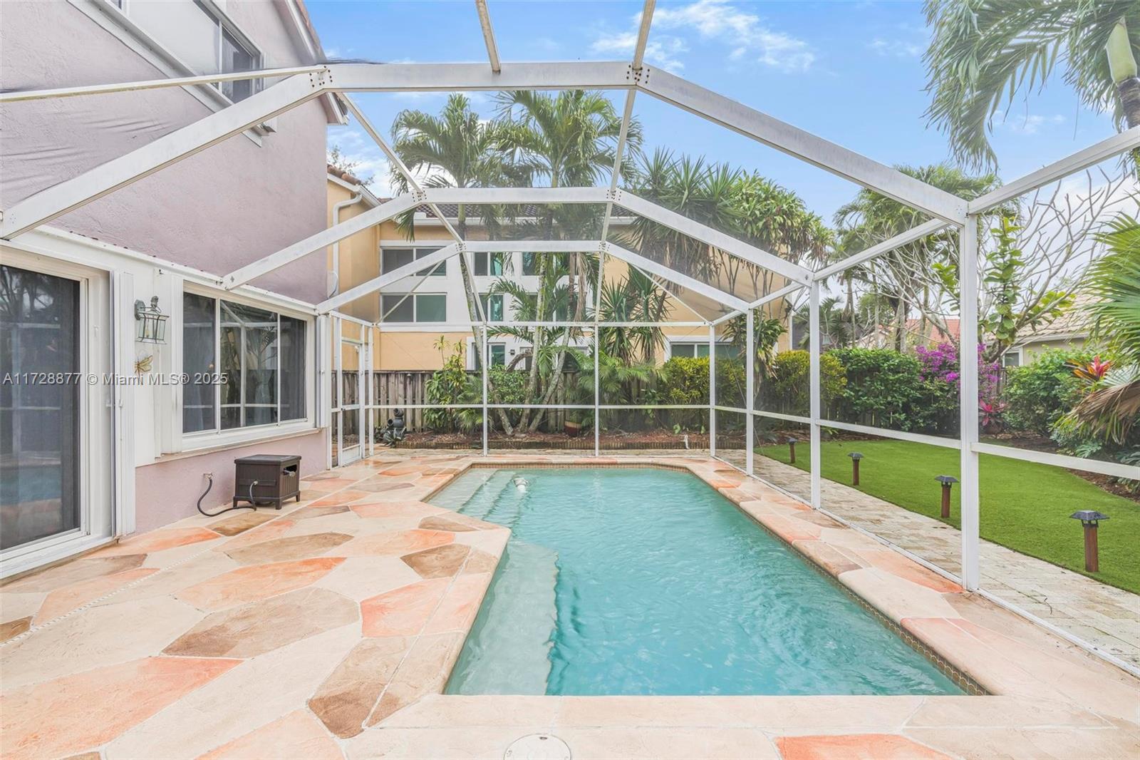 Beautiful two story home with a pool in Sunset Cove of Plantation! Nestled on a peaceful cul-de-sac this 3 bedroom 2.5 bathroom home sits on an oversized lot with a screened in pool &vpatio! New backyard turf + landscaping making it convenient to enjoy S FL living. New pool pump! NEW Driveway + pool deck! New washer + dryer! Lovely floor plan with the kitchen and nook overlooking the beautiful pool outdoor area! 3 bedrooms and 2 full baths are upstairs w/ a wide loft perfect for an office/gym area. The exterior is newly painted. All the windows have accordion shutters. Excellent location plus well-maintained community that provides landscaping, tree trimming, sprinklers w/ maintenance, community pool, and guard at site! Don't miss this opportunity!