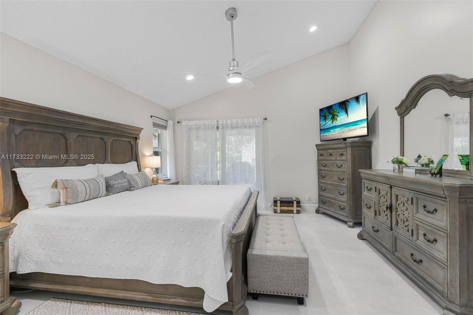 You'll fall in love with this beautifully updated, meticulously maintained 4-bedroom, 2-bathroom home located in the desirable Georgetown at Eagle Trace. Vaulted ceilings, beautiful porcelain tile throughout, all new impact windows & doors create an open atmosphere. Freshly painted inside and out making home feel brand new! The updated kitchen features all newer appliances, while both bathrooms have been exquisitely remodeled. The primary bath is luxurious, with spa-like finishes and the secondary bath is modern & stylish. The lanai re-screening & new gutters enhance the exterior. Other updates include Air handler(2022), washer/dryer(2022), new primary closet! All upgrades were during 2021-2024 making the home MOVE-IN READY! Enjoy a new clubhouse, pool, golf course & more! A MUST SEE!