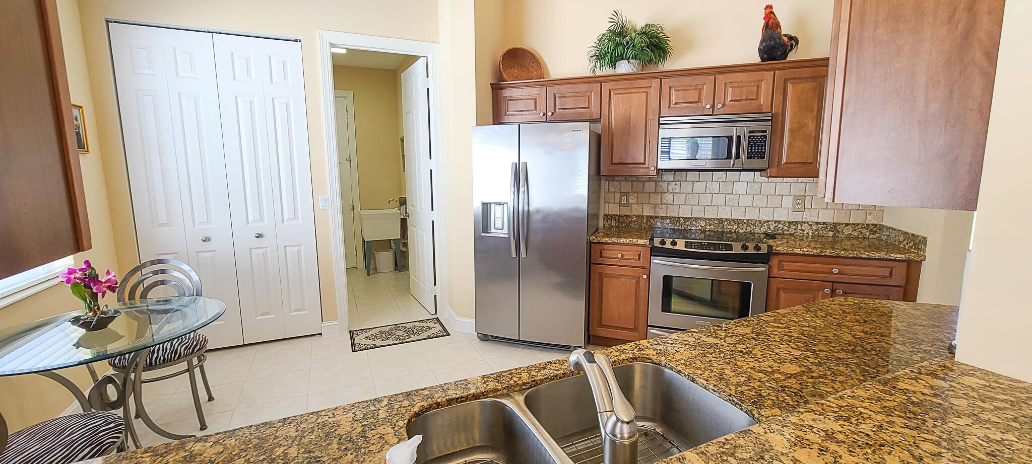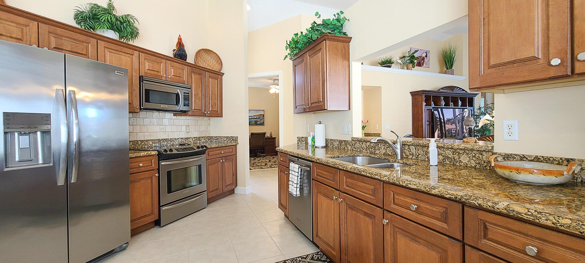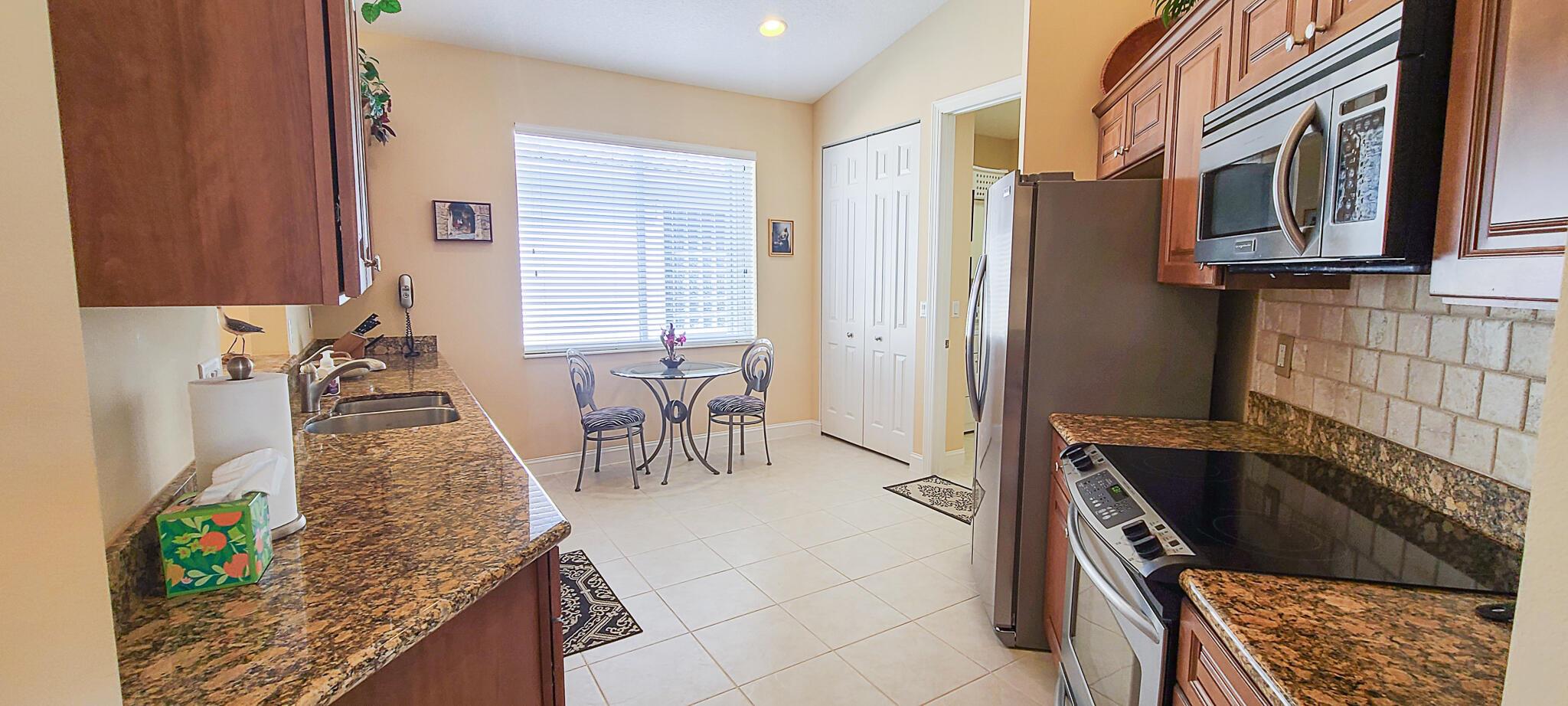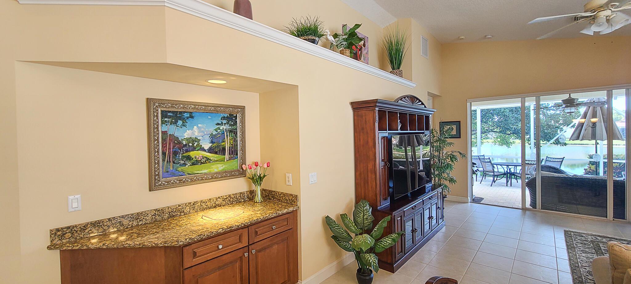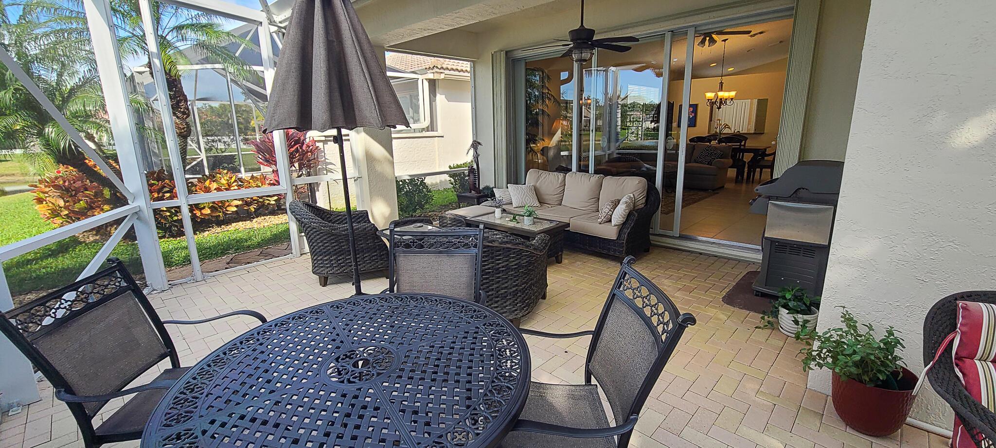 Country Club Lifestyle without the Membership Fees! Gorgeous 3 Bedrooms 2 Full Baths on a quiet Cul-De-Sac! Expanded Screened Patio overlooking the lake - Enjoy Long Lake Views! Move-in Perfect Condition!Primary Bedroom features a spa tub with Jets and lots of closet space. High Ceilings, Decorative moulding accents & High decorative shelves! Eat-in Kitchen with gorgeous cabinetry and newer appliances. Separate laundry room with laundry tub. Spacious 2 car garage. Meticulously maintained and clean! Furniture Negotiable