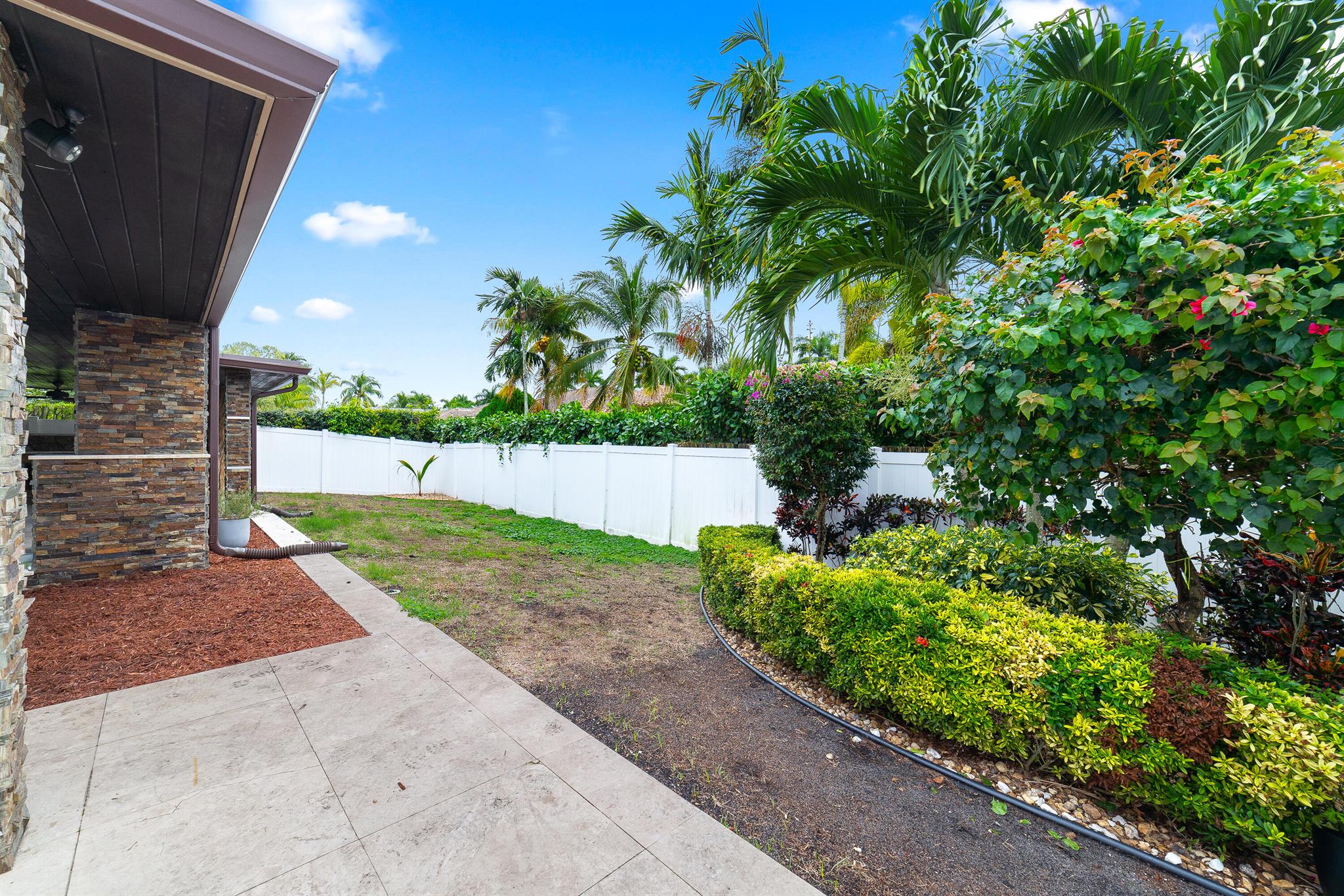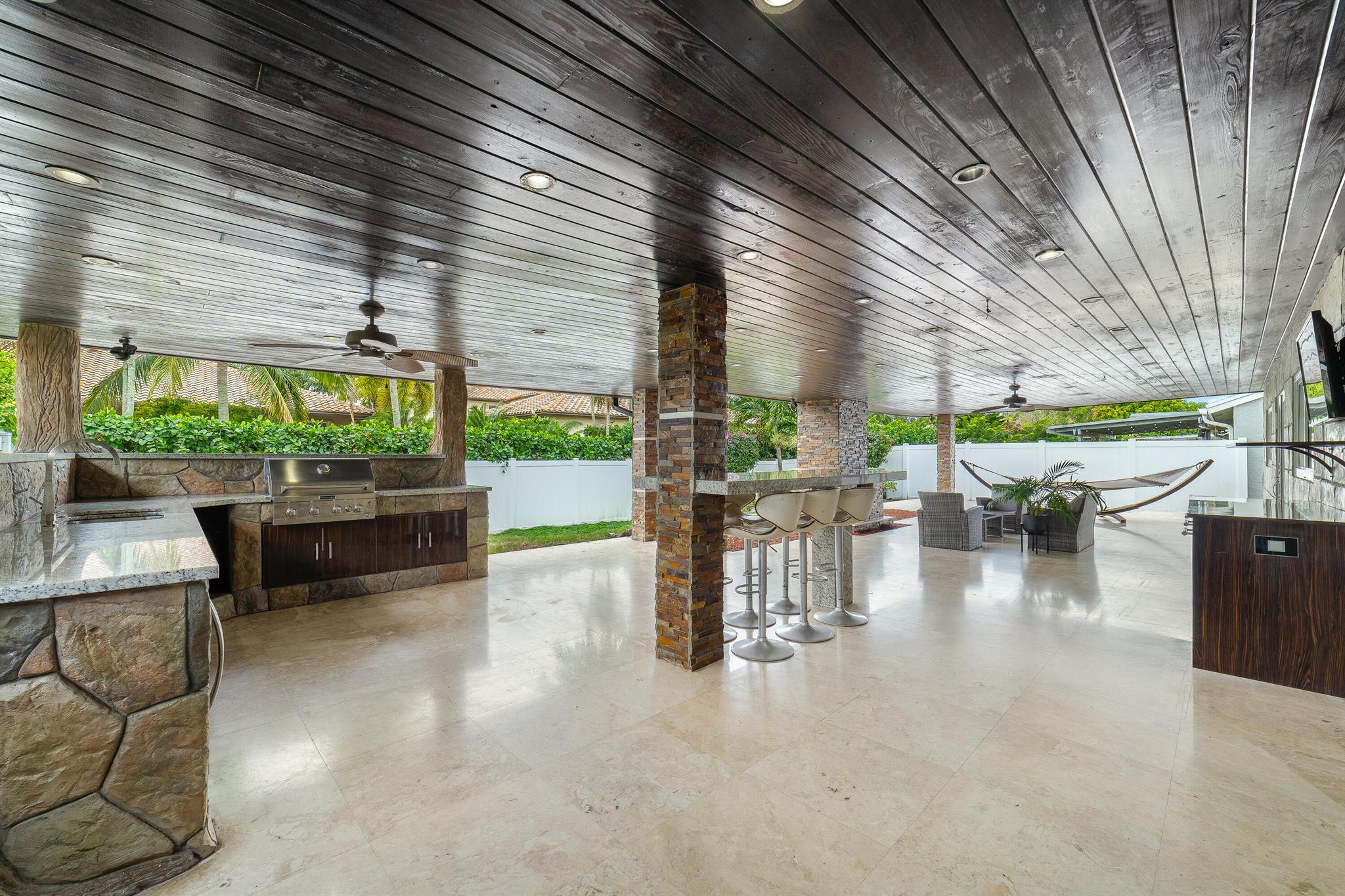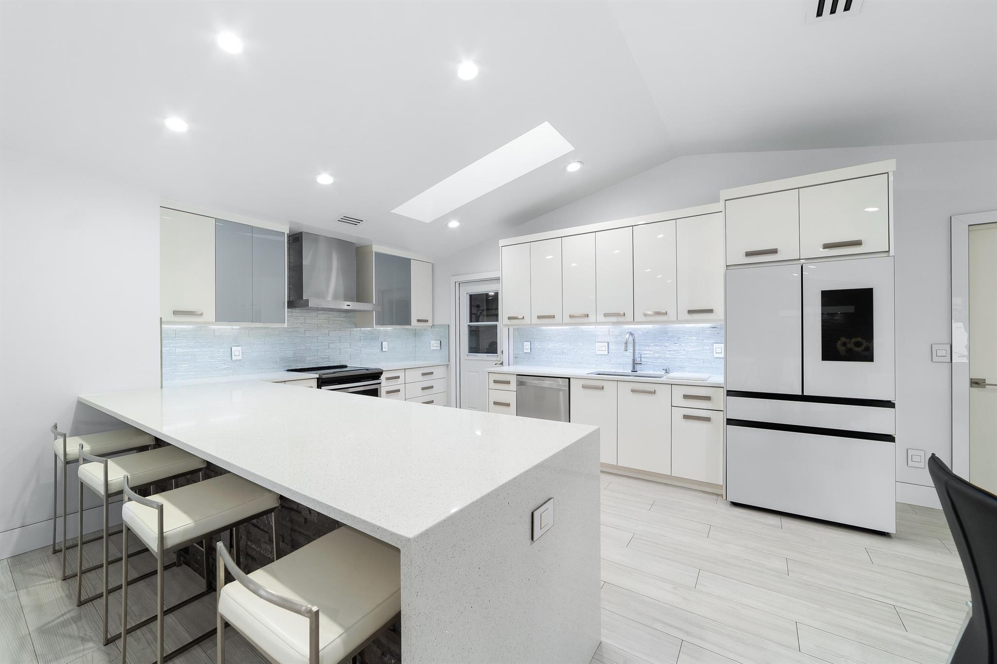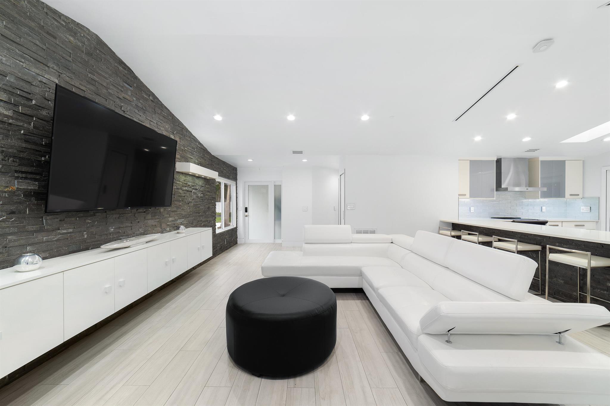 WOW home!!! Step into the perfect blend of indoor and outdoor living in this STUNNING, RENOVATED, 3 bedroom, 2 bathroom, 2-car garage SMART home. It is nestled on a quiet 0.14 acre lot in the desirable Rainberry Park community with a very LOW HOA, A-RATED schools, and just 2 minutes from West Boca Medical Center (on the same electric grid as the hospital). Notable features include IMPACT windows and doors, vaulted ceilings and elegant stone-accented wall in the living room, frosted glass impact-rated front door and recessed lighting, HVAC (2023), vents (2023), insulation (2023) and gutters (2024). There is gorgeous tile flooring throughout. The open-concept kitchen is equipped with beautiful quartz countertops, custom solid wood cabinets, backsplash, stainless steel appliances, quiet