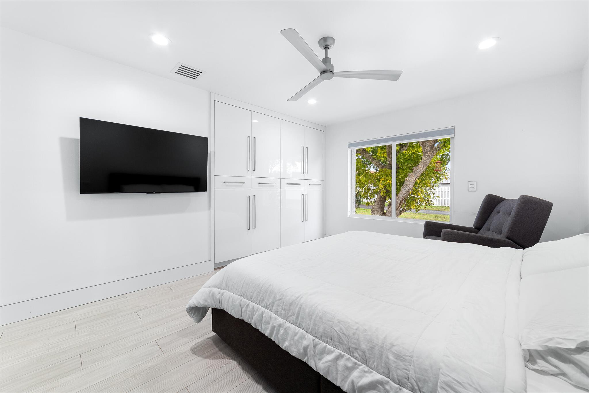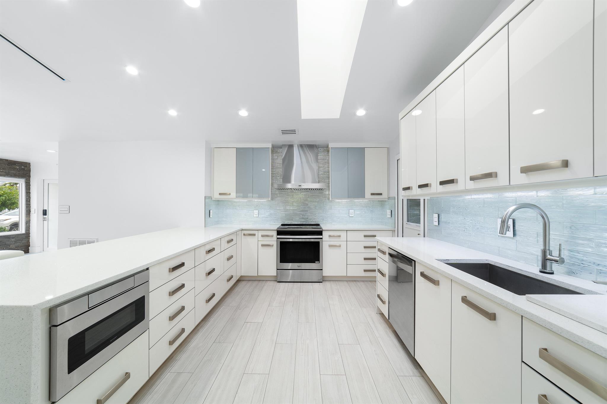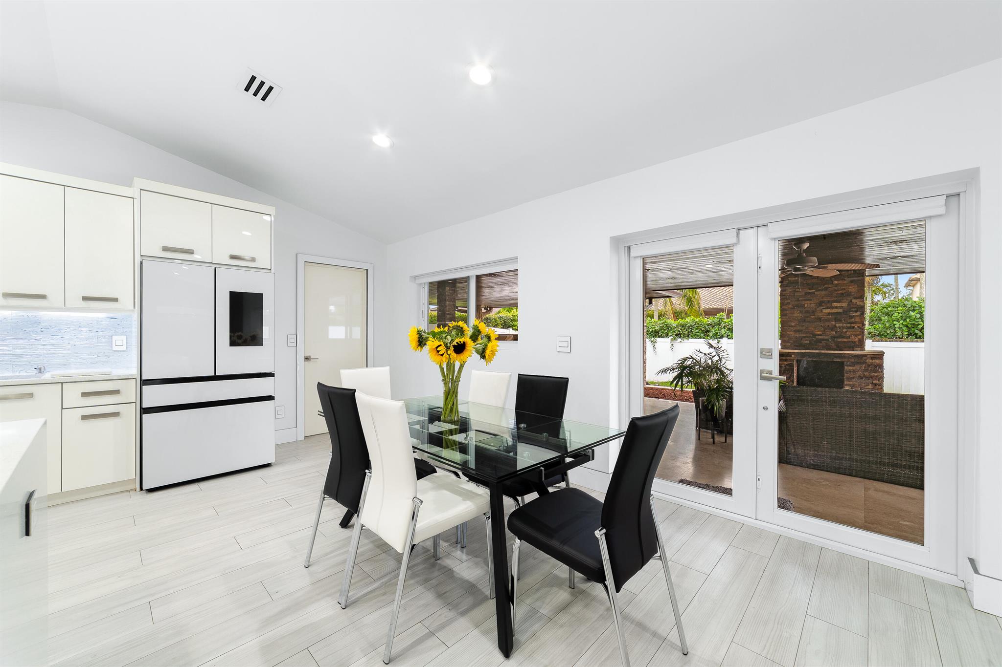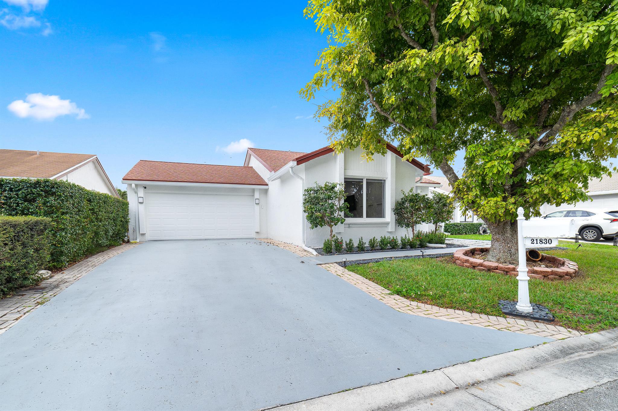 WOW home!!! Step into the perfect blend of indoor and outdoor living in this STUNNING, RENOVATED, 3 bedroom, 2 bathroom, 2-car garage SMART home. It is nestled on a quiet 0.14 acre lot in the desirable Rainberry Park community with a very LOW HOA, A-RATED schools, and just 2 minutes from West Boca Medical Center (on the same electric grid as the hospital). Notable features include IMPACT windows and doors, vaulted ceilings and elegant stone-accented wall in the living room, frosted glass impact-rated front door and recessed lighting, HVAC (2023), vents (2023), insulation (2023) and gutters (2024). There is gorgeous tile flooring throughout. The open-concept kitchen is equipped with beautiful quartz countertops, custom solid wood cabinets, backsplash, stainless steel appliances, quiet
