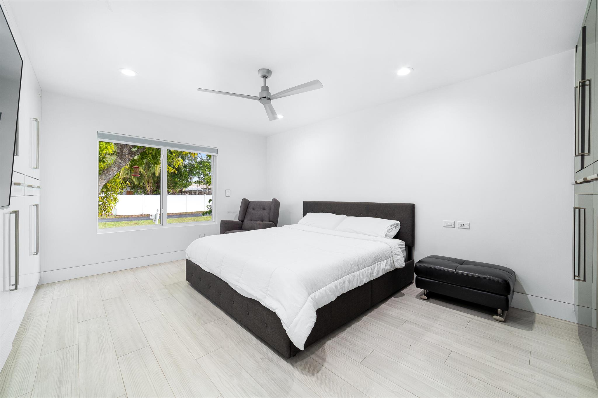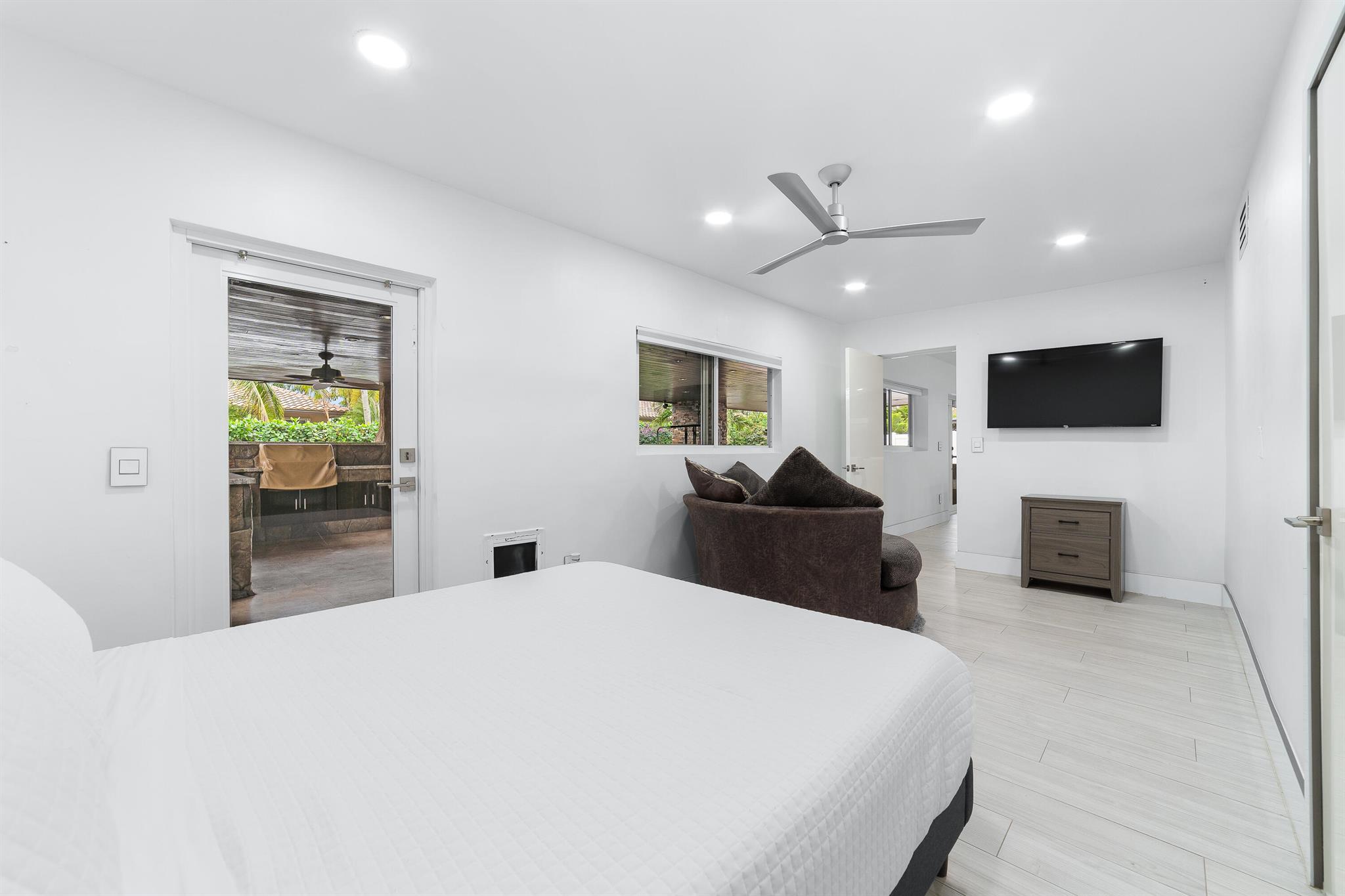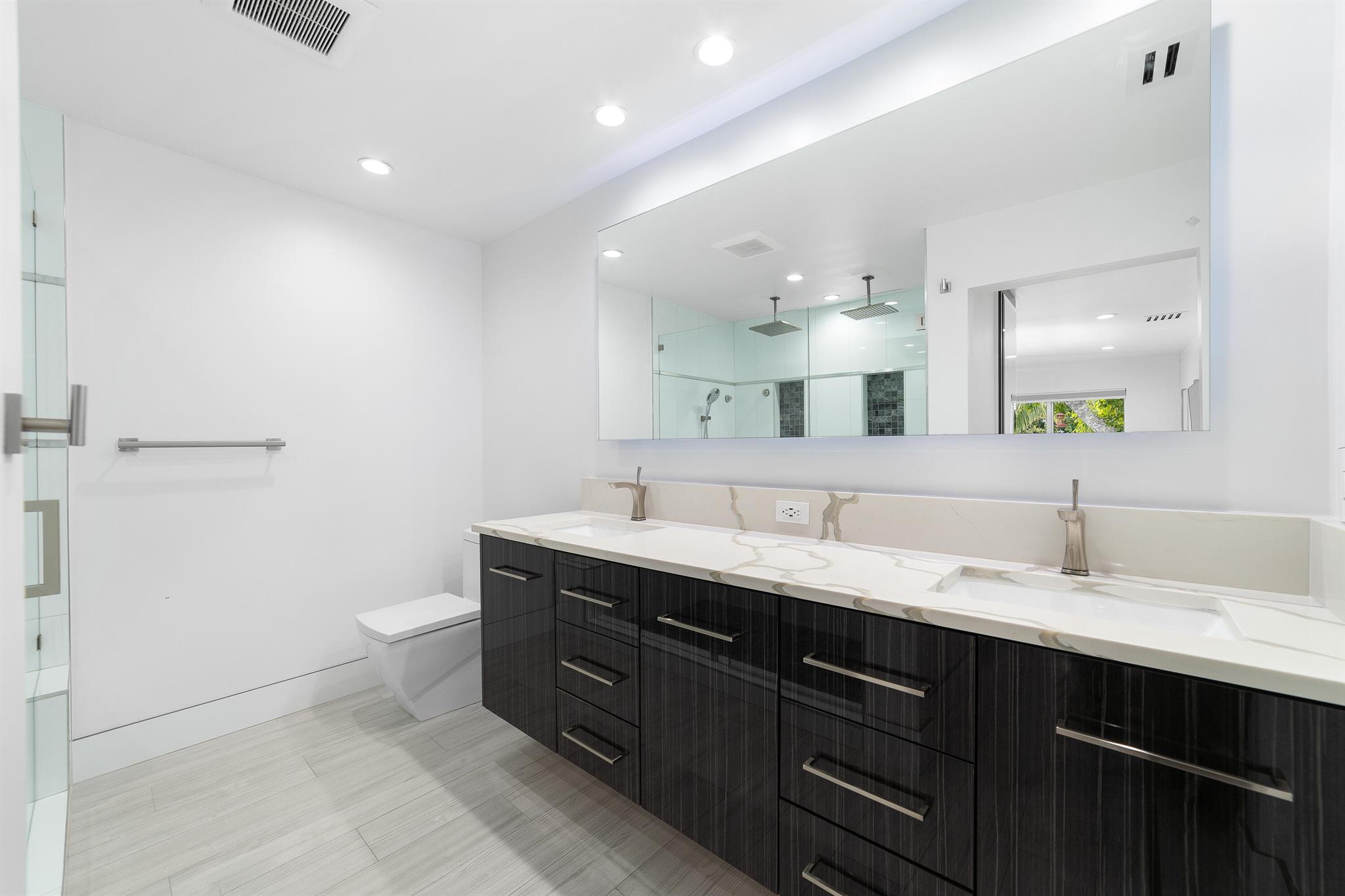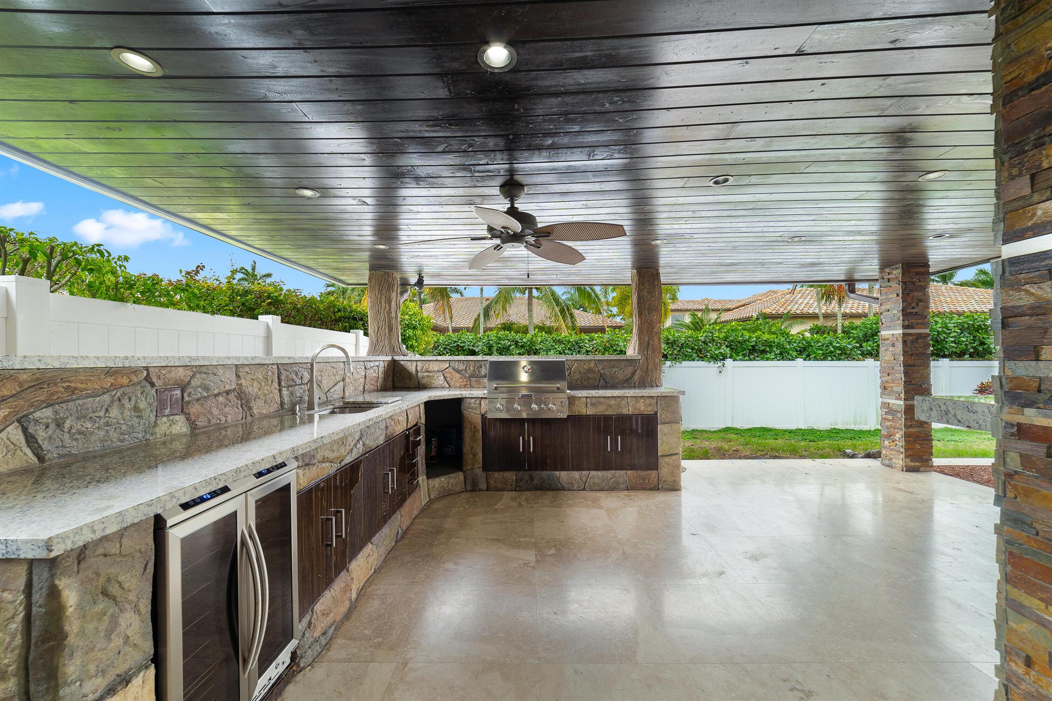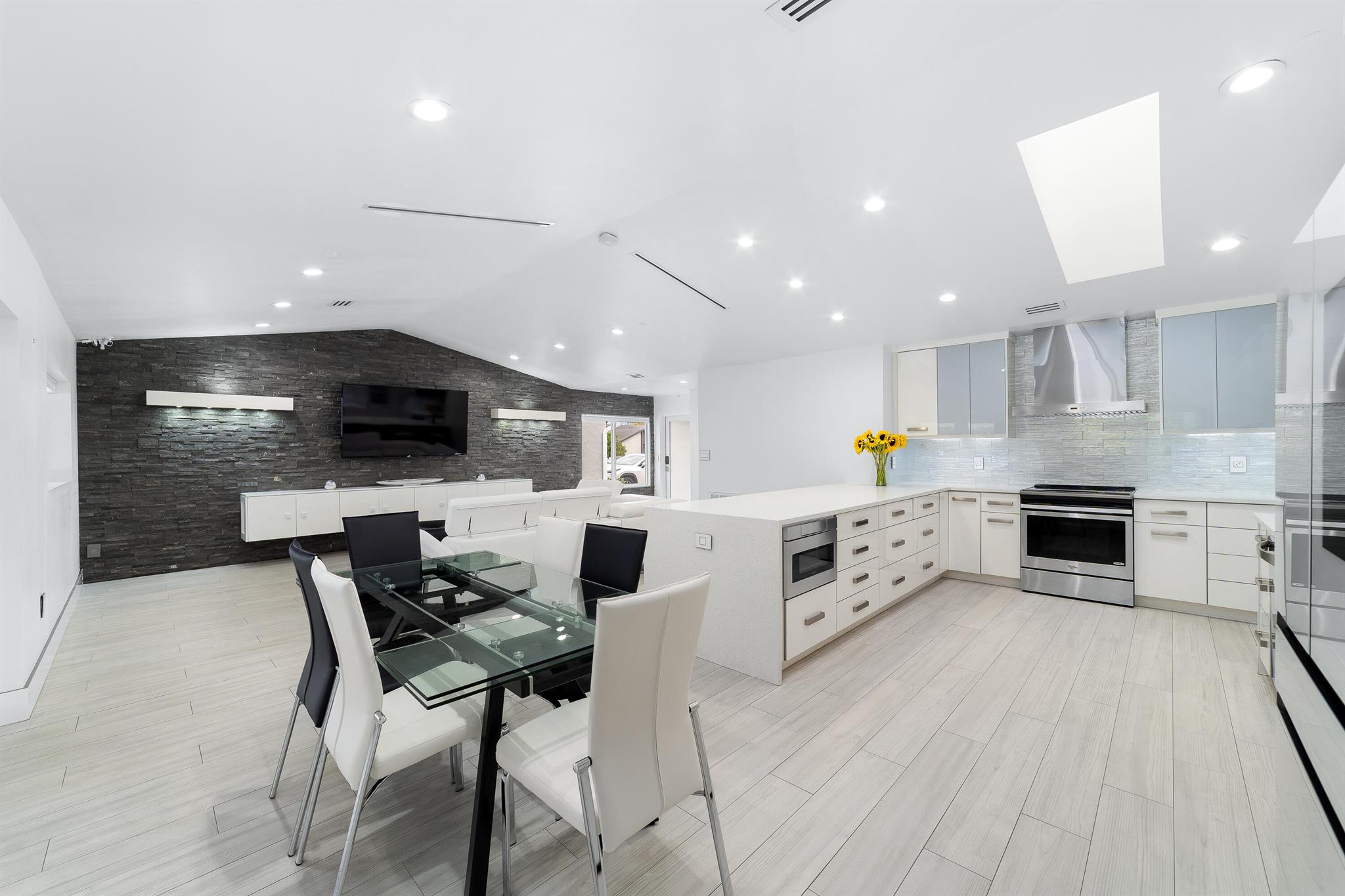 WOW home!!! Step into the perfect blend of indoor and outdoor living in this STUNNING, RENOVATED, 3 bedroom, 2 bathroom, 2-car garage SMART home. It is nestled on a quiet 0.14 acre lot in the desirable Rainberry Park community with a very LOW HOA, A-RATED schools, and just 2 minutes from West Boca Medical Center (on the same electric grid as the hospital). Notable features include IMPACT windows and doors, vaulted ceilings and elegant stone-accented wall in the living room, frosted glass impact-rated front door and recessed lighting, HVAC (2023), vents (2023), insulation (2023) and gutters (2024). There is gorgeous tile flooring throughout. The open-concept kitchen is equipped with beautiful quartz countertops, custom solid wood cabinets, backsplash, stainless steel appliances, quiet