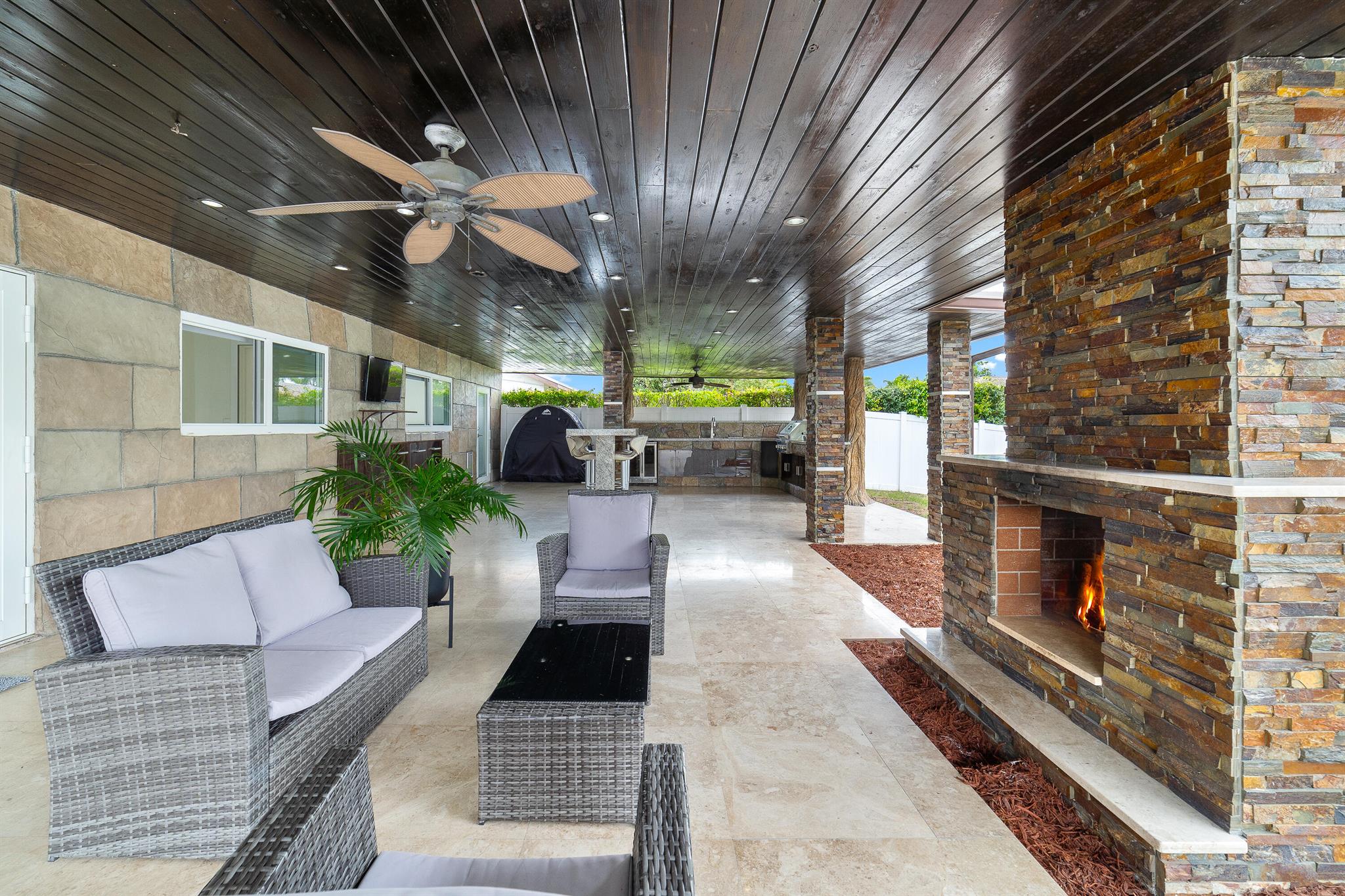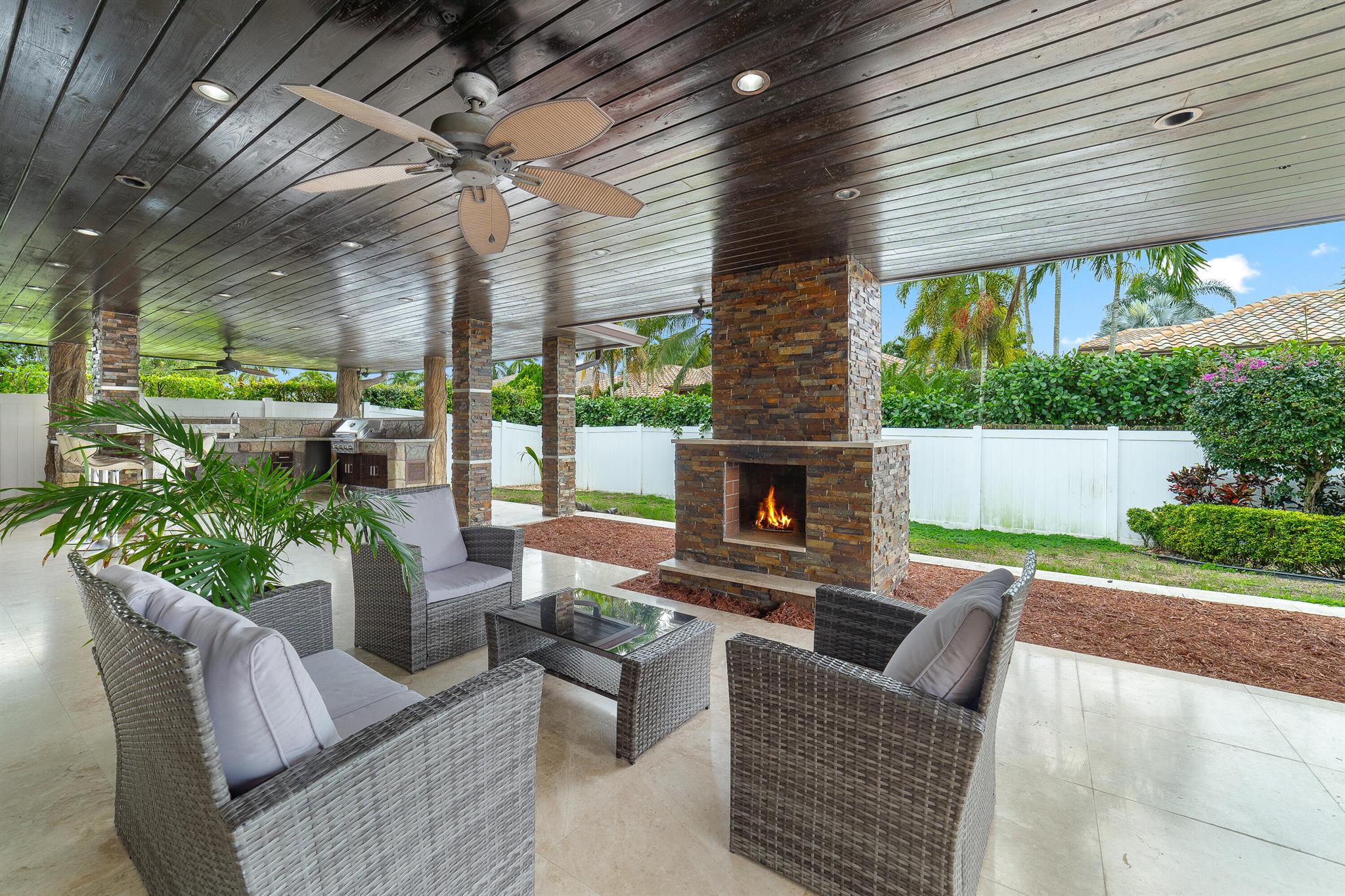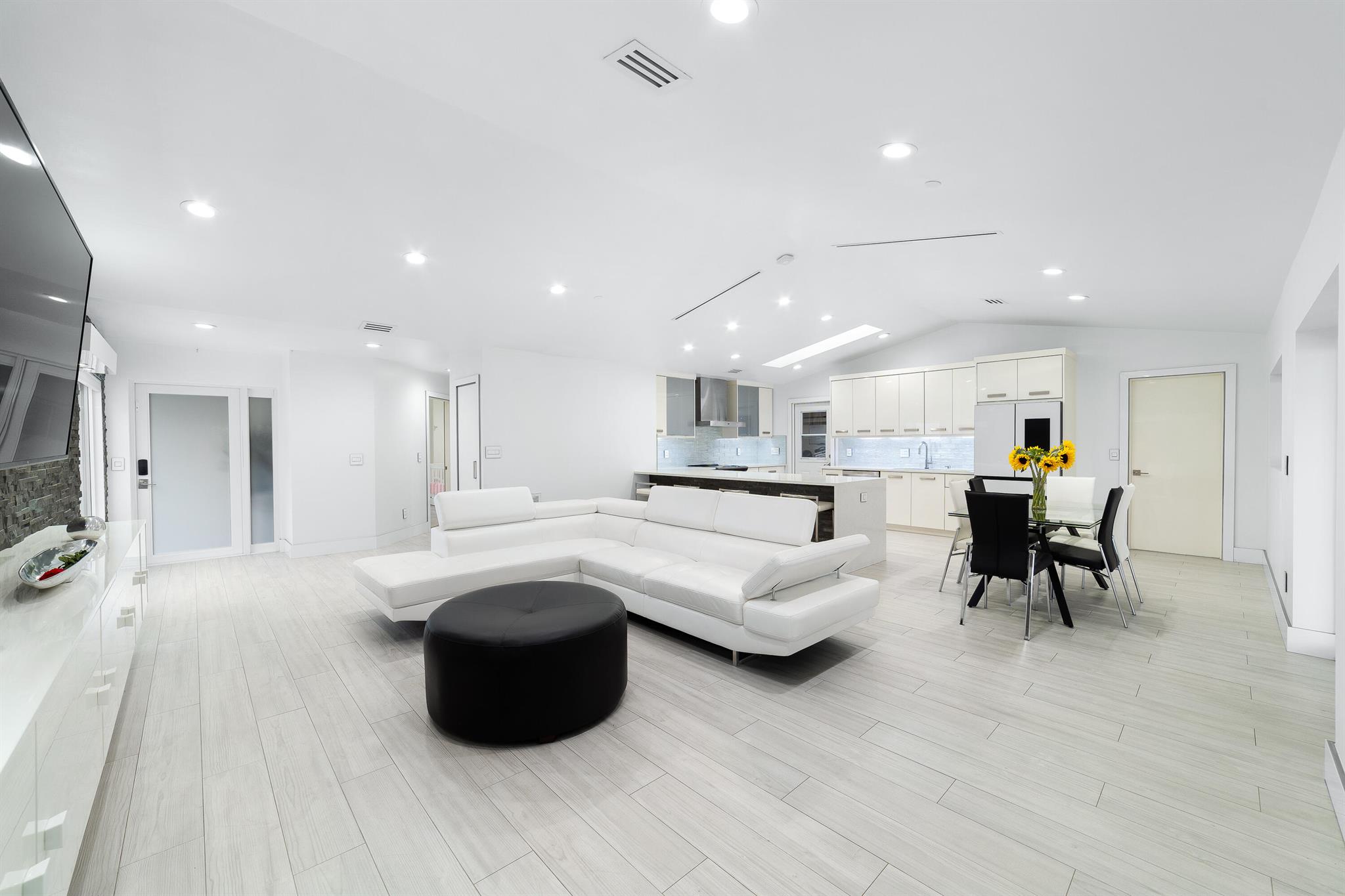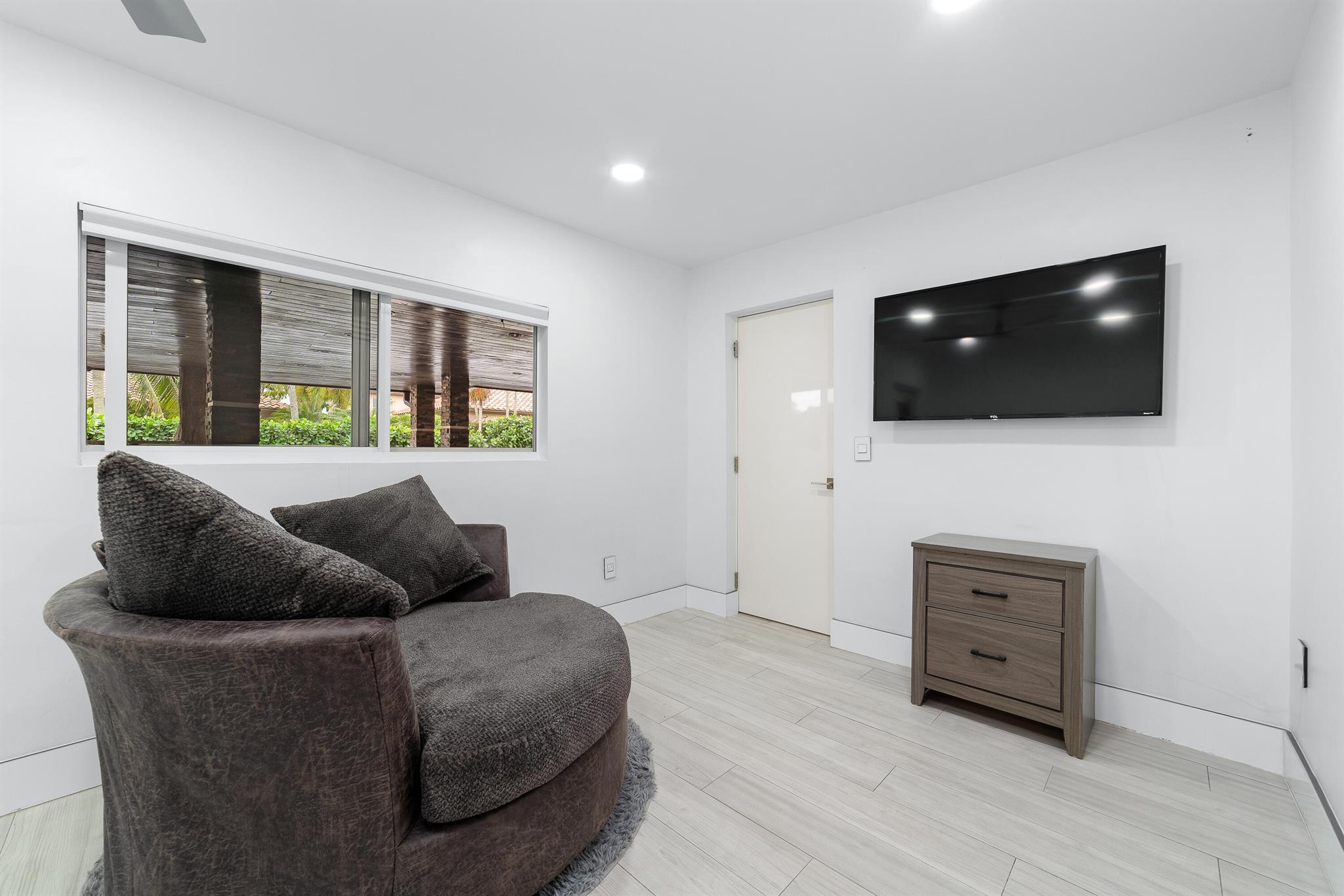 WOW home!!! Step into the perfect blend of indoor and outdoor living in this STUNNING, RENOVATED, 3 bedroom, 2 bathroom, 2-car garage SMART home. It is nestled on a quiet 0.14 acre lot in the desirable Rainberry Park community with a very LOW HOA, A-RATED schools, and just 2 minutes from West Boca Medical Center (on the same electric grid as the hospital). Notable features include IMPACT windows and doors, vaulted ceilings and elegant stone-accented wall in the living room, frosted glass impact-rated front door and recessed lighting, HVAC (2023), vents (2023), insulation (2023) and gutters (2024). There is gorgeous tile flooring throughout. The open-concept kitchen is equipped with beautiful quartz countertops, custom solid wood cabinets, backsplash, stainless steel appliances, quiet