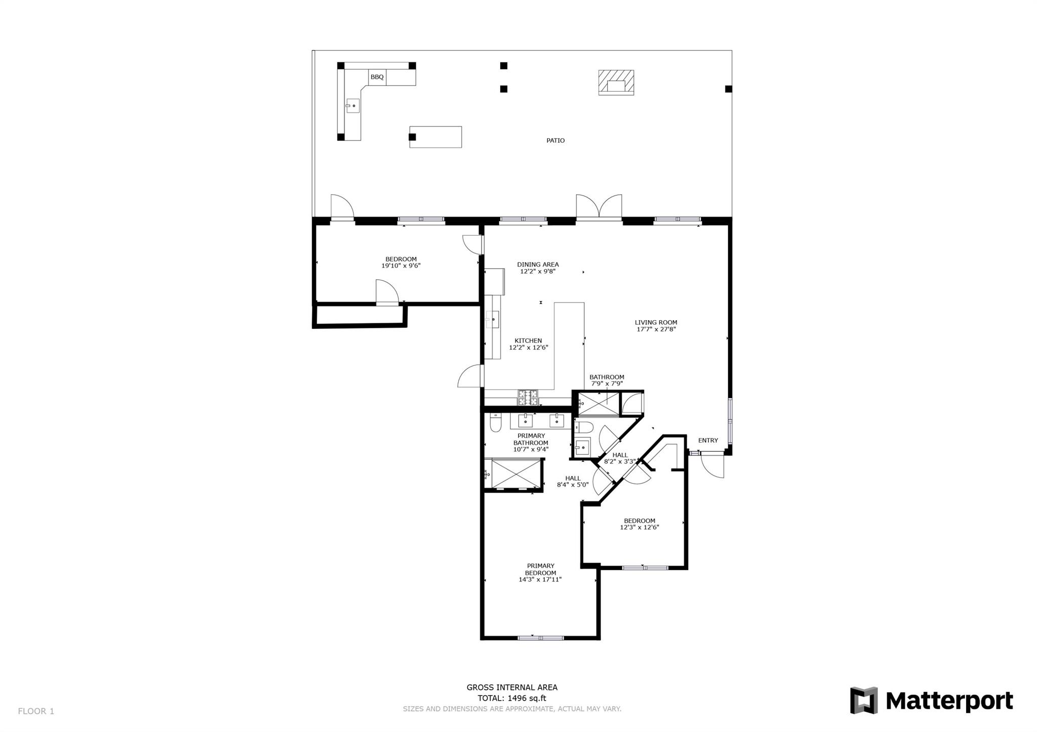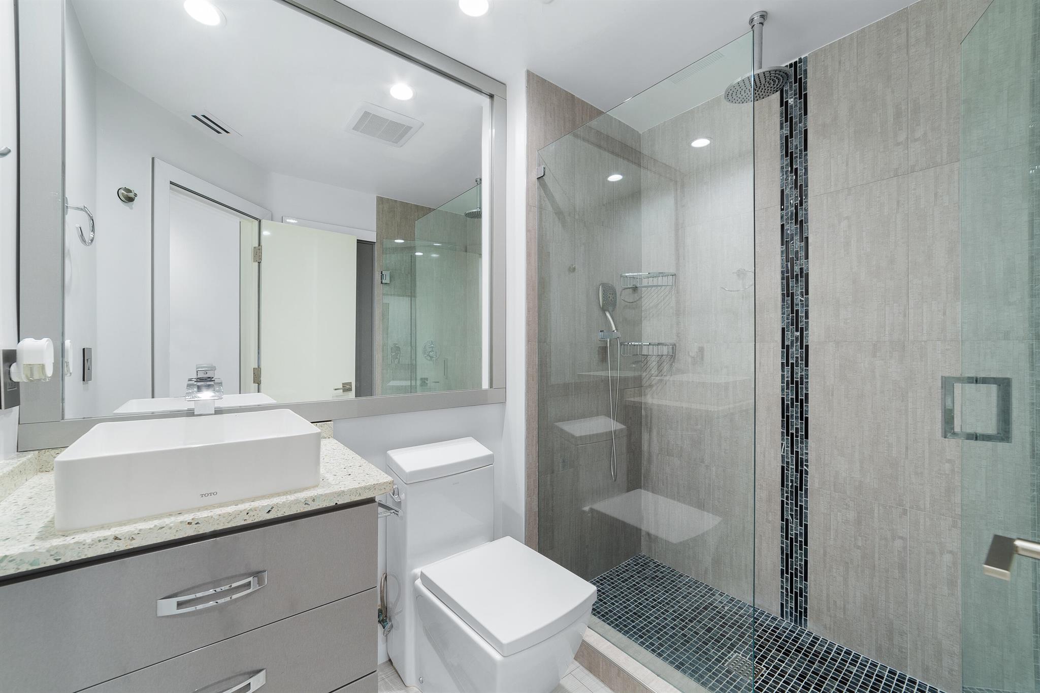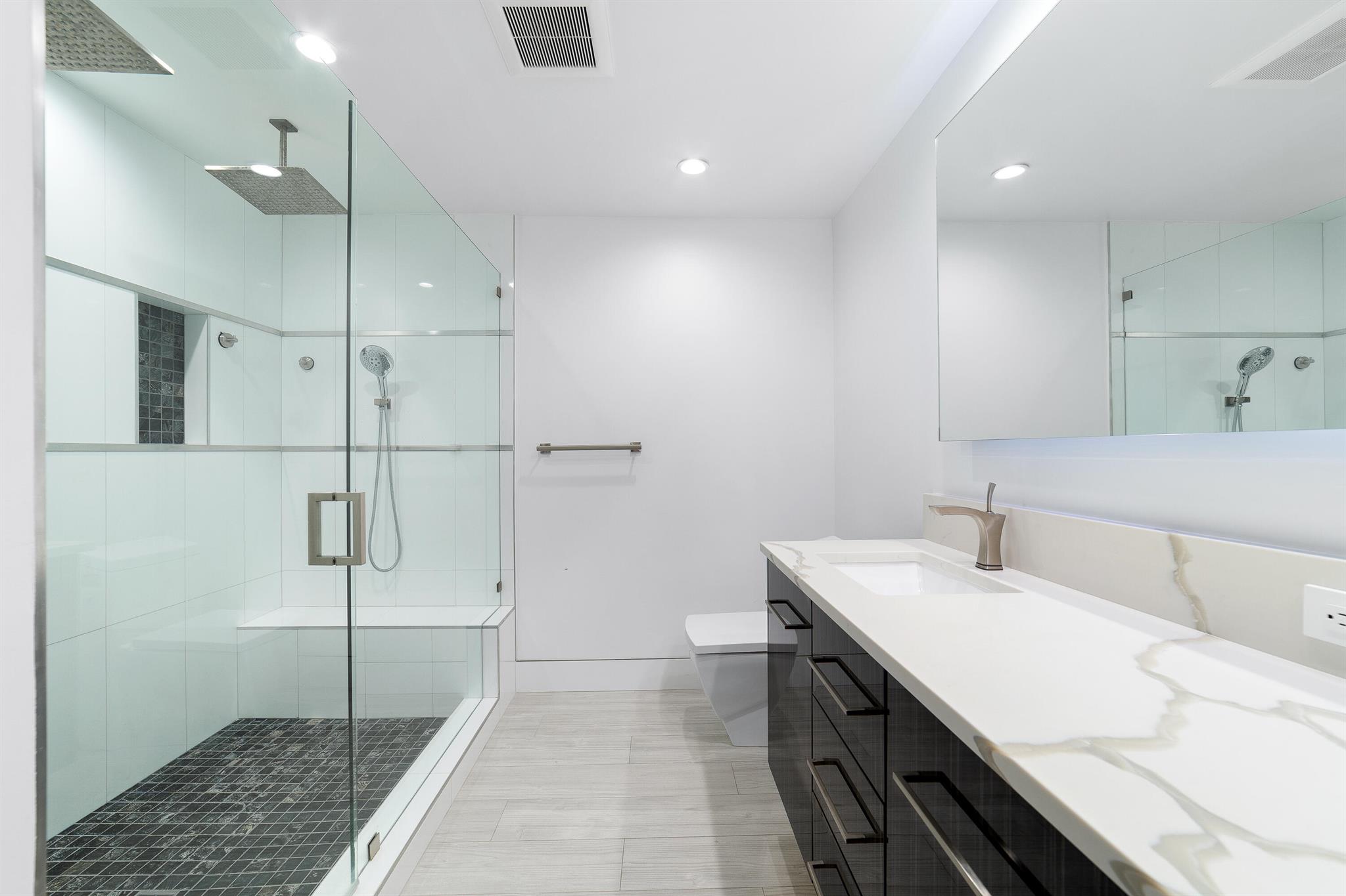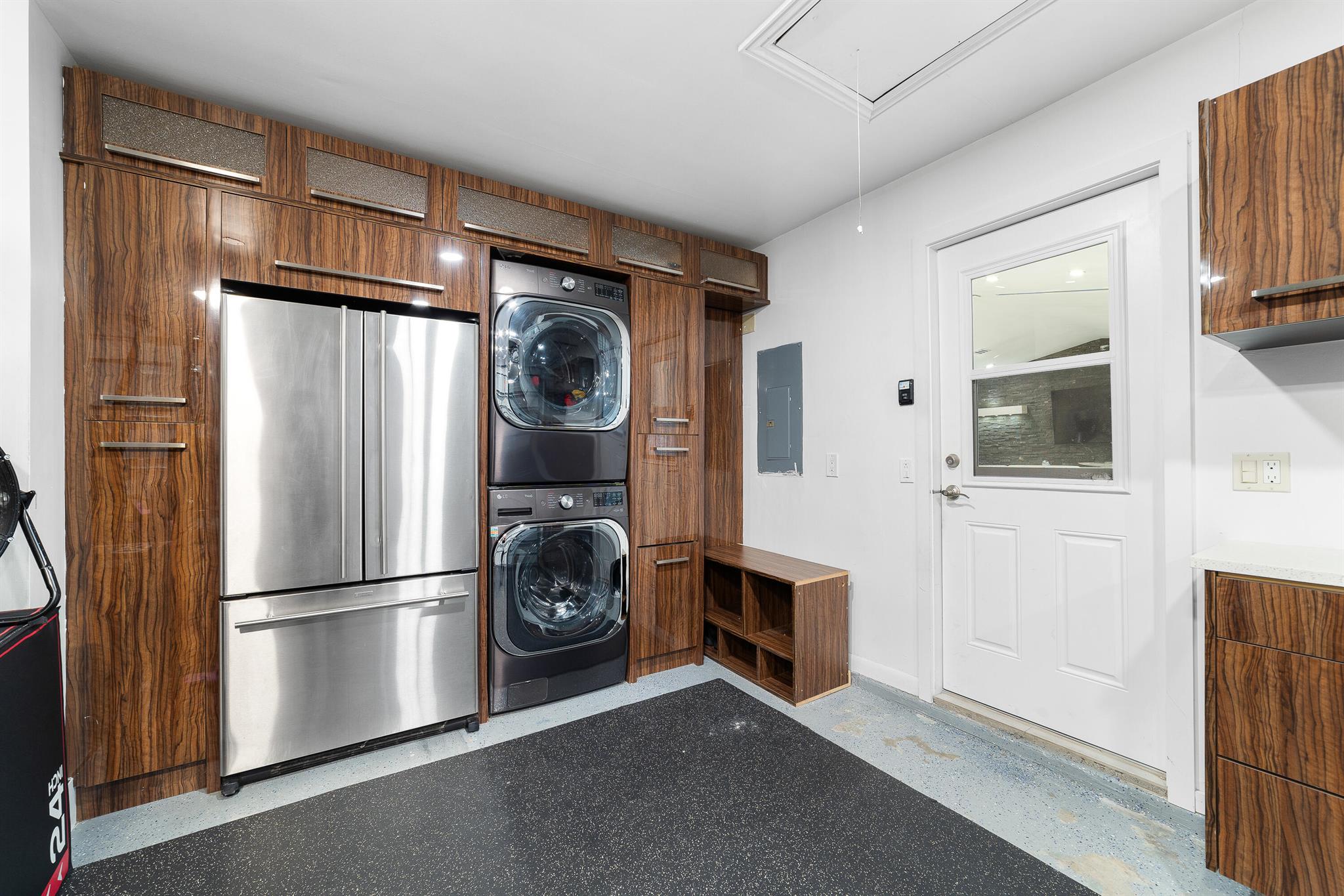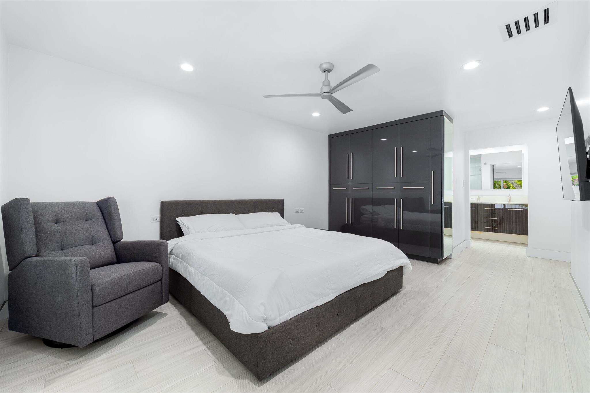 WOW home!!! Step into the perfect blend of indoor and outdoor living in this STUNNING, RENOVATED, 3 bedroom, 2 bathroom, 2-car garage SMART home. It is nestled on a quiet 0.14 acre lot in the desirable Rainberry Park community with a very LOW HOA, A-RATED schools, and just 2 minutes from West Boca Medical Center (on the same electric grid as the hospital). Notable features include IMPACT windows and doors, vaulted ceilings and elegant stone-accented wall in the living room, frosted glass impact-rated front door and recessed lighting, HVAC (2023), vents (2023), insulation (2023) and gutters (2024). There is gorgeous tile flooring throughout. The open-concept kitchen is equipped with beautiful quartz countertops, custom solid wood cabinets, backsplash, stainless steel appliances, quiet