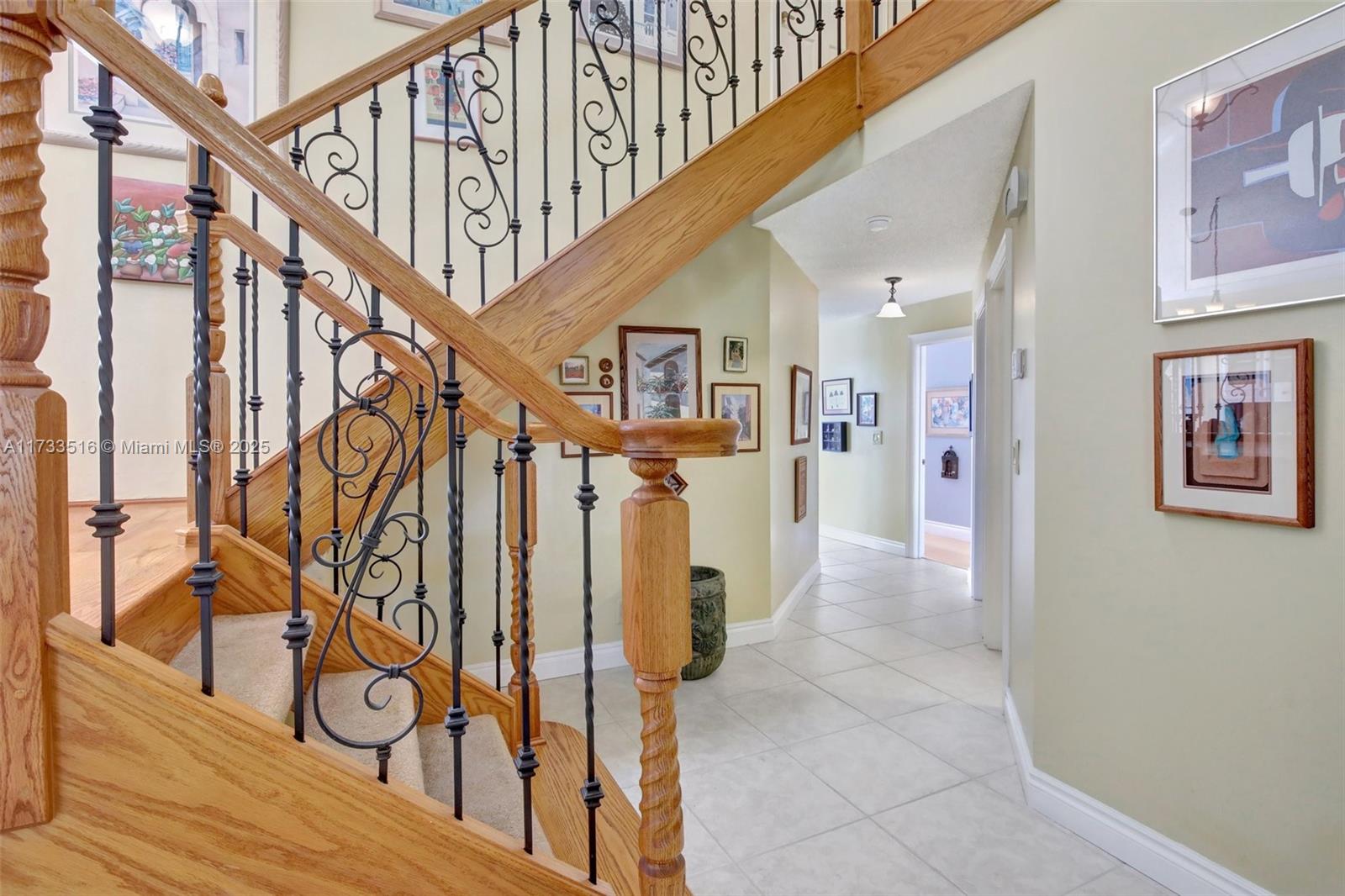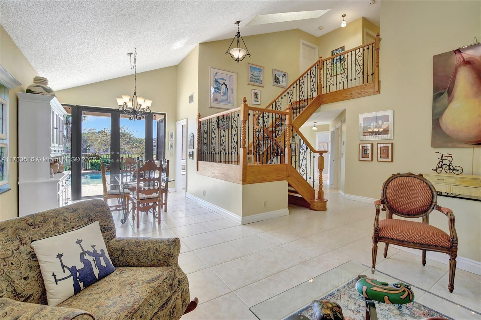 Over 2100 sqft of living space in this 4/2.5 pool home featuring impact windows & amazing sunset & sunrise views over the lake. Soaring ceilings & oversized living spaces are perfect for those who like to entertain. Updated modern kitchen w/quartz counter tops, white cabinets, s/s appliances & snack bar overlooking the breakfast nook, & family room. Downstairs primary suite features big walk-in closet & redone primary bath including separate soaking jet bathtub & shower. 2nd floor beauties big secondary bedrooms. Lushly landscaped backyard w/full size pool & amazing water views. Garage features built in organization system that will stay w/the home. Diecke Park features pickle ball, tennis, walking track, & playground. Community pool a jacuzzi. Close to highways, shopping, & Central Park.