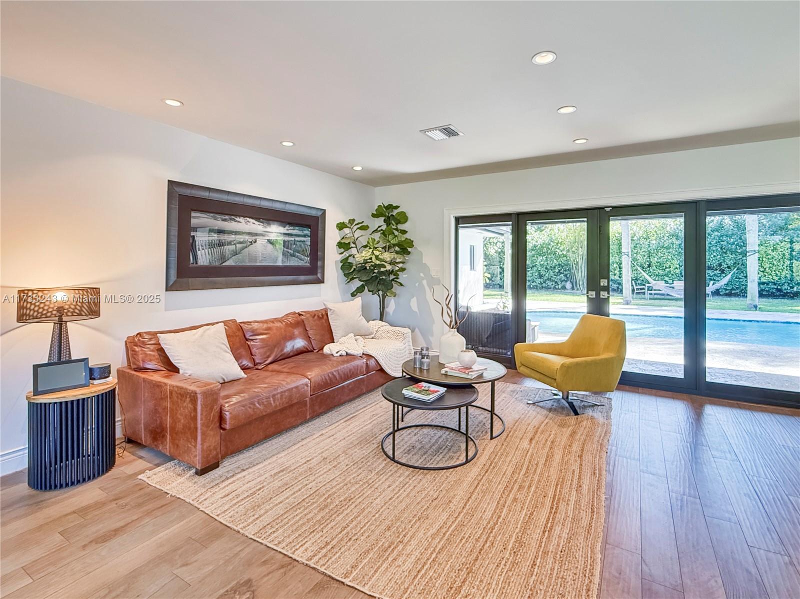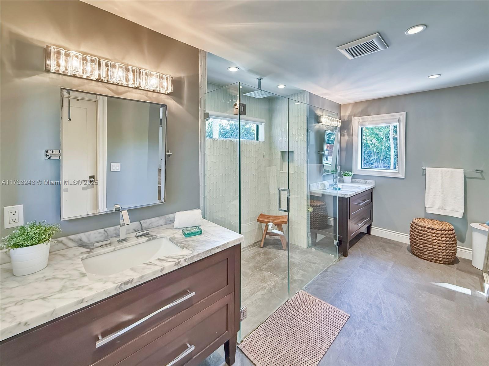 Completely rebuilt in 2017, this stunning 3-bedroom, 3-bathroom home in Pinecrest showcases exceptional design and luxurious finishes. Italian porcelain floors, custom wood detailing, and high-end craftsmanship are featured throughout. The chef’s kitchen is a showstopper with commercial-grade appliances, a 9-foot walnut island, custom cabinetry, and Venatino countertops. The open floor plan seamlessly flows to private outdoor areas with a fire pit, fruit trees, and a BBQ zone. Updates include new plumbing, electrical, insulation, a metal roof, and pool with equipment. The exterior is finished with Resysta siding, offering durability and resistance to rain, ensuring long-term beauty and low maintenance.