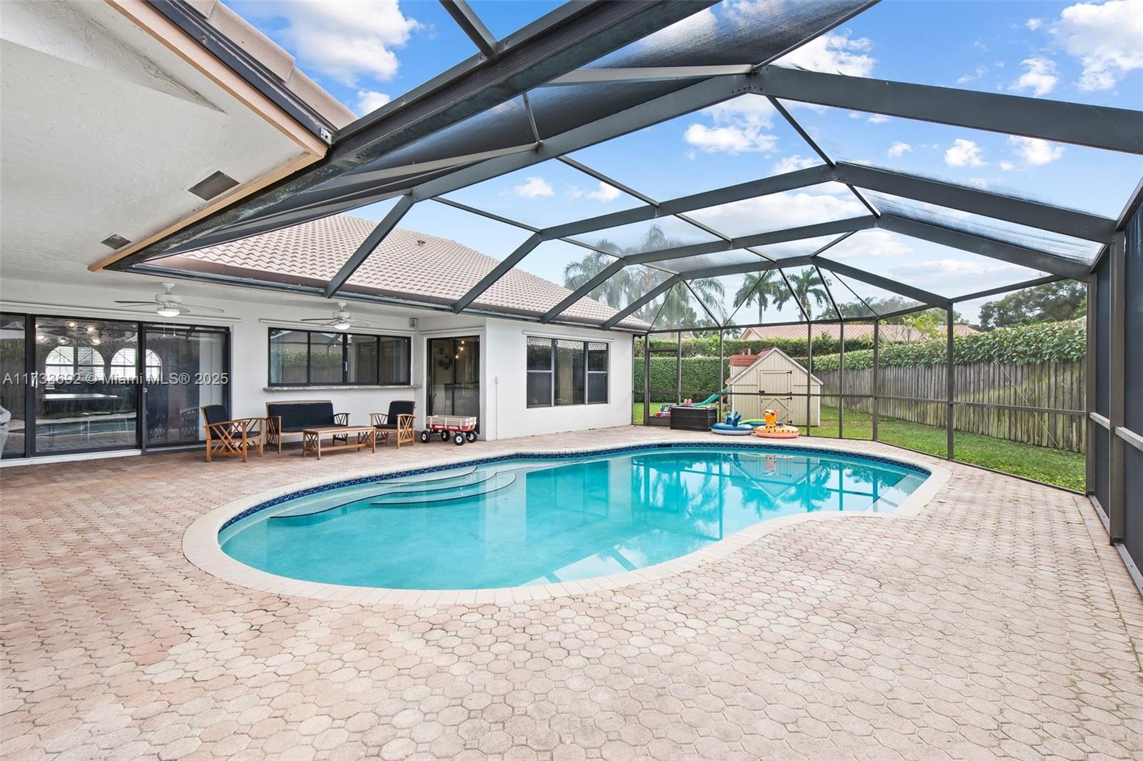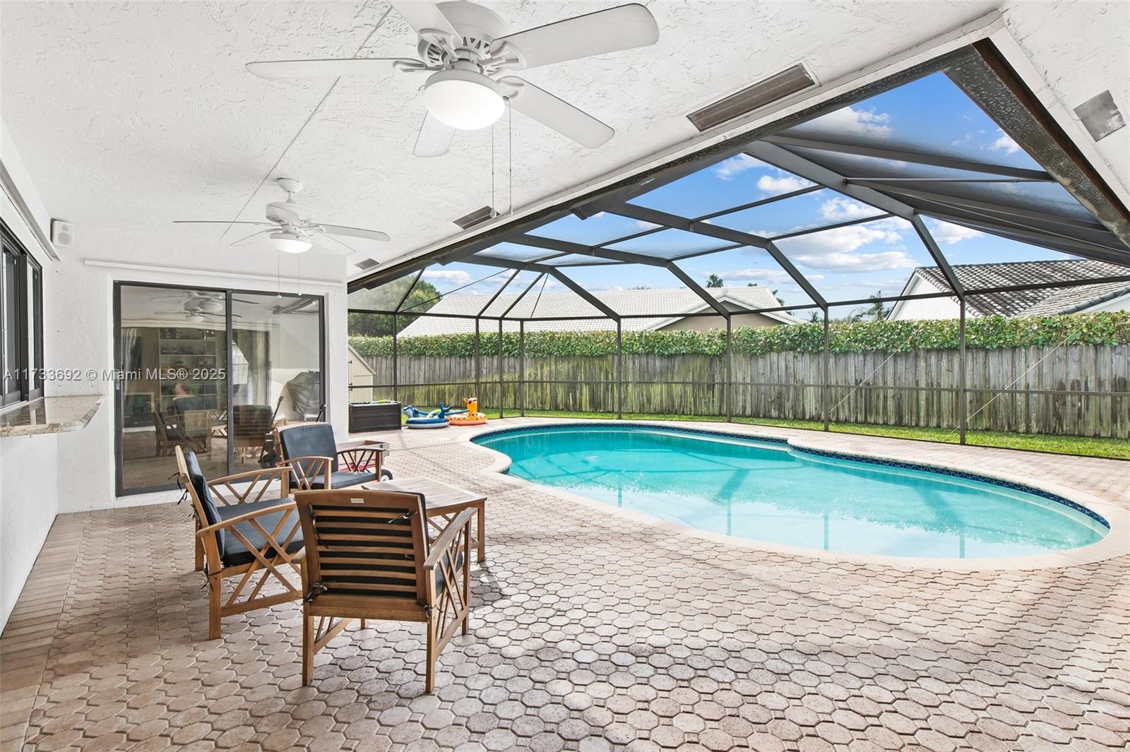 Nestled on a generous 13,000+ sq. ft. lot in one of Plantation’s most sought-after neighborhoods, this stunning one-story home in Westport offers the perfect blend of comfort and style. The screened-in pool and patio area is perfect for both relaxation and entertaining. The kitchen is spacious, featuring custom wood cabinetry, stainless steel appliances, and beautiful granite countertops. Bonus room off the kitchen area can be used as an office or storage. Glass doors from the from many of the rooms lead out to the screened-in patio and pool area, offering ideal space for Florida living and entertaining.