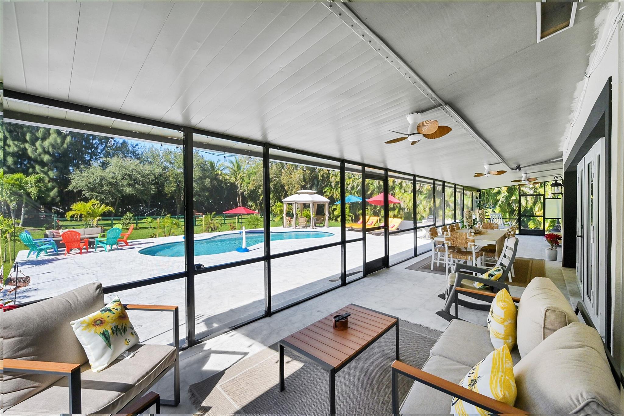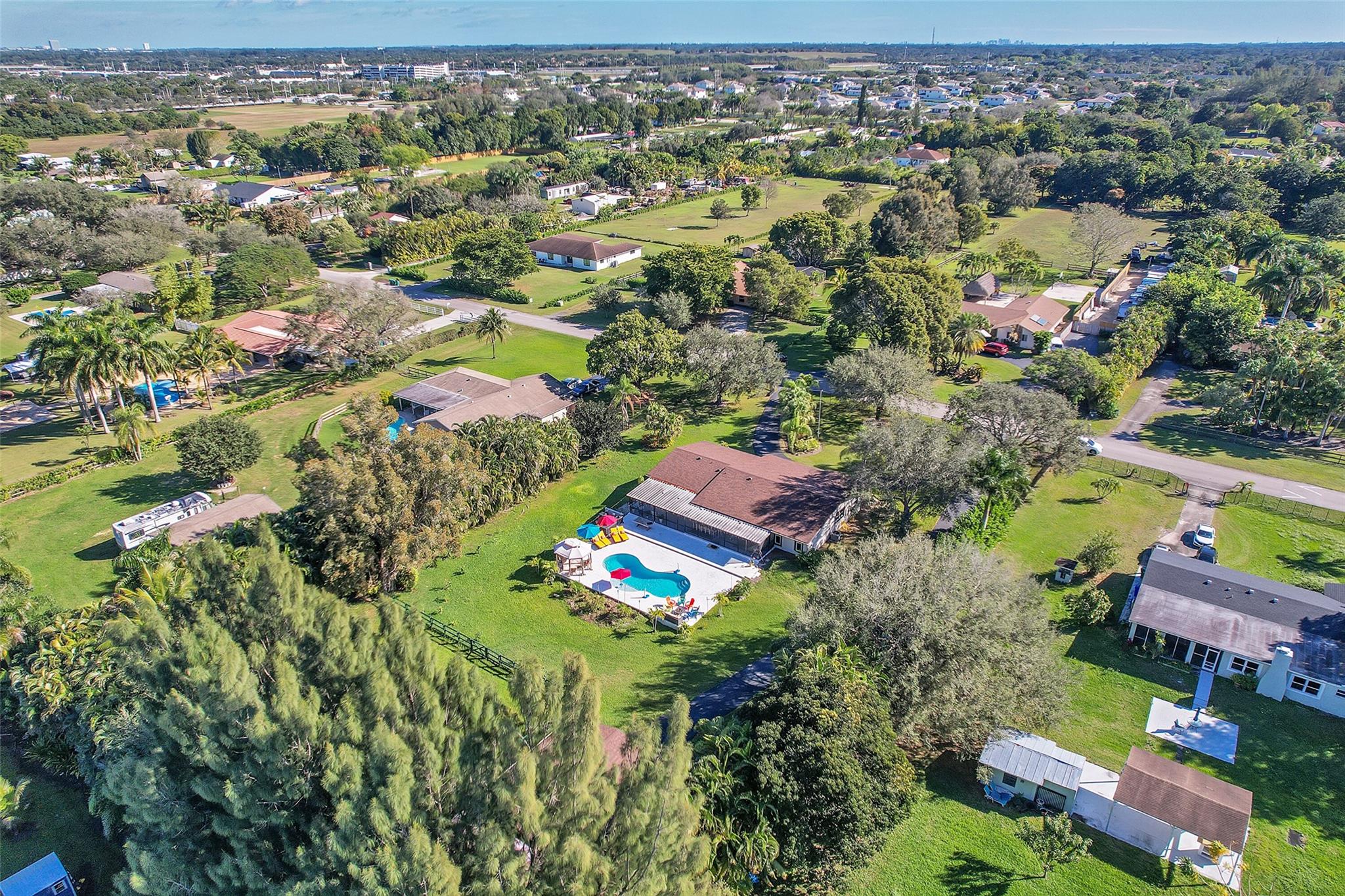 THIS CAPTIVATING HOME, WITH HIGH-CEILINGS WITH AN EXPANSIVE 5 BEDROOM 4 BATH SPLIT FLOOR PLAN SITS ON A 51,209 SQUARE FOOT LOT OVERLOOKING A BEAUTIFULLY PRIVATE POOLSIDE OASIS. OWNERS INVESTED OVER $100,000 ON A SALT CHLORINATED POOL, BEAUTIFUL HEAT-RESISTANT TILE WHICH SURROUNDS THE POOL AREA AND SCREENED IN LARGE SEPARATE PATIO. LARGE MASTER SUITE WITH A JACUZZI TUB. OPEN CONCEPT GOURMET KITCHEN FEATURING TOP OF THE LINE STAINLESS STEEL VIKING APPLIANCES, GRANITE COUNTERTOPS, HIGH WOOD BEAM CEILINGS. ELECTRIC FENCED GATE, EXPANSIVE DRIVEWAY. IMPACT WINDOWS, NEWER ROOF (APX 4 YEARS OLD). SEPARATE STAND ALONE OVERSIZED TWO CAR GARAGE WITH DUAL ENTRANCES, BARN AND OVERSIZED SHED. PRICED RIGHT WITH SO MANY PLUSES!!! THIS HOME WILL NOT DISAPPOINT.