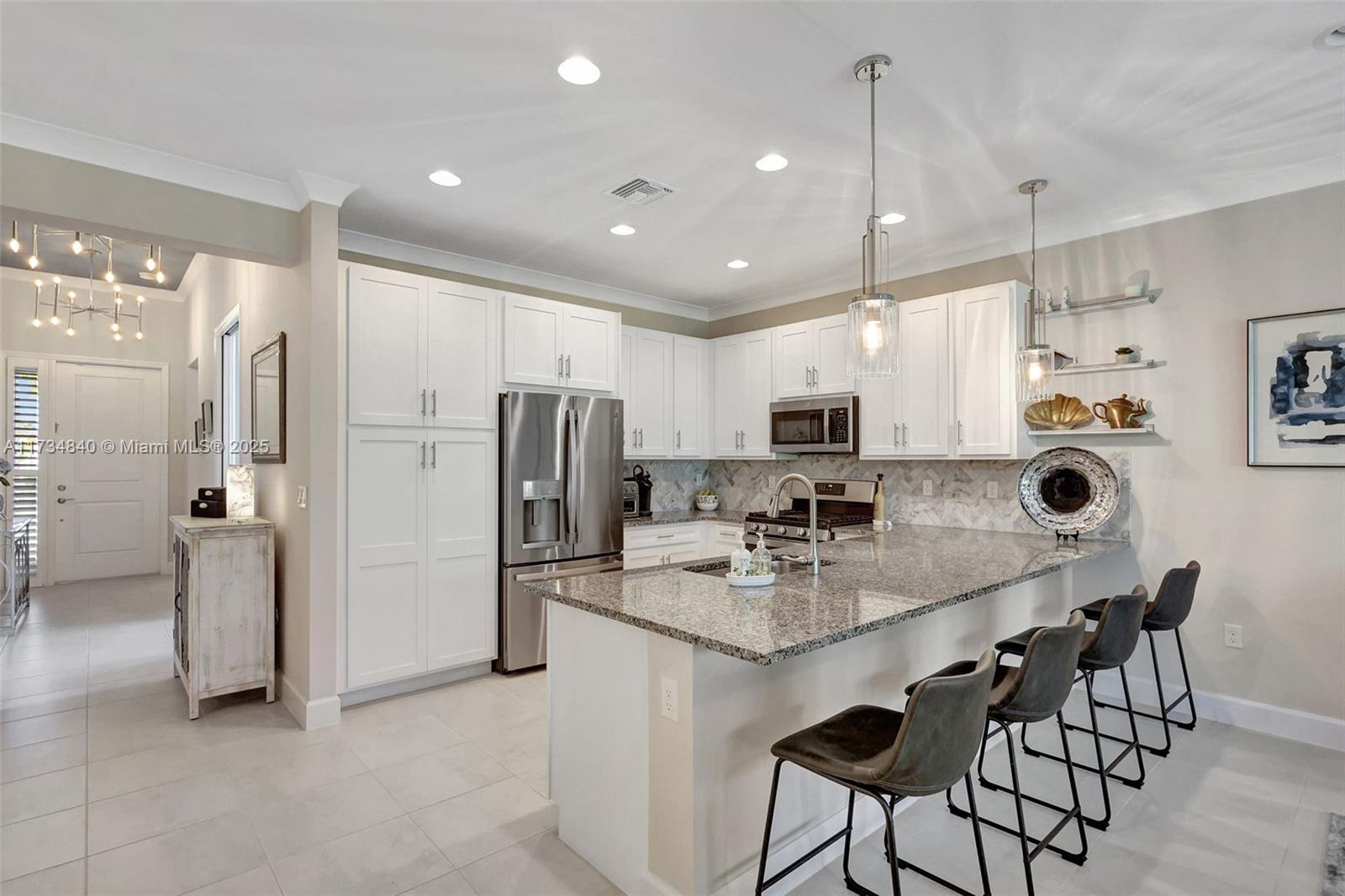 Don't miss this upgraded Sandpiper model in Valencia Grove, a premier active adult community. This home features elegant decorator lighting, a stylish kitchen backsplash, custom wallpaper, crown molding, an extended patio, and a private backyard with no rear neighbors. The 2 bedrooms and den/office allows for plenty of space for your guests and/or office space or extra living space. Additional conveniences include laundry room cabinets, pantry pull-outs, and a customized closet. Enjoy resort-style amenities, including a clubhouse, restaurant, full-size gym, lap and indoor pools, over 50 pickleball courts, tennis, and bocce. A salon & spa is coming soon! Experience the best of Riverland living today! Don't wait!