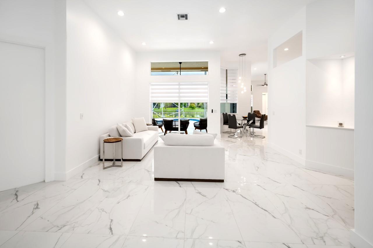 Sparkling 4 Bedroom plus Den Lakefront Pool Home, beautiful Finishes, Everything NEW, A Rare Find! NEW Roof 2022, NEW Floors throughout, Gourmet Kitchen w/Modern Gray/White Cabinets, Reverse Osmosis Water system, Beautiful White Quartz Countertops, Kitchen opens to VERY Spacious Family Room, Triple Split Bedroom Plan, All Bedrooms X-Large Big Walk in Closets, LED Lighting Fixtures. Gorgeous NEW Baths (3.5). Modern Gray/White themed Finishes / Bronze Fixtures throughout this home. Spectacular Private Screened Lakefront Pool, DAZZLES! NEW Exterior lighting. Expansive Lake View from All Living areas. Pretty Pool Patio for Entertaining Day or Night. Lake w/Boat Access. Huge 3 Car Garage with Paver Driveway, Parking for 6 Cars. Nothing to do but Enjoy! A beautiful home you will be Proud to Own!