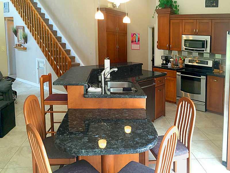 Great family oriented neighborhood, Custom kitchen cabinets with elegant granite countertops, Stainless steel appliances, tastefully renovated bathrooms with granite all over, , ceramic tile in kitchen, living areas and master bath. Masterbedroom downstai rs. Berber carpeting through out on stairs and second floor. Tropical garden setting, fenced in oversize back yard with pool and deck. Screened in covered patio great for entertaining. For showings please see broker remarks.