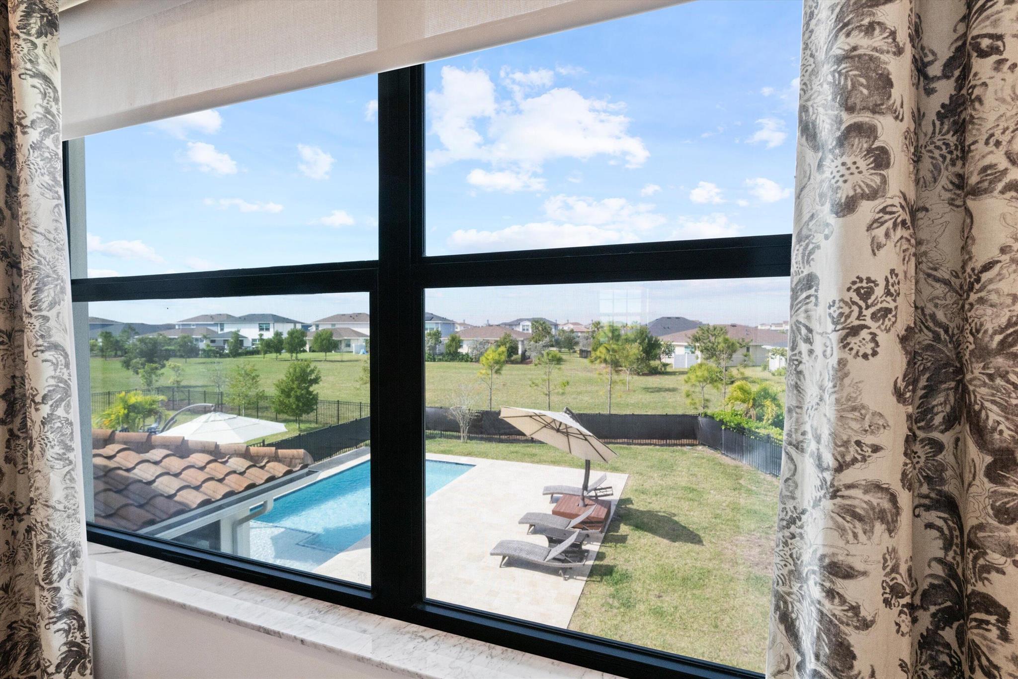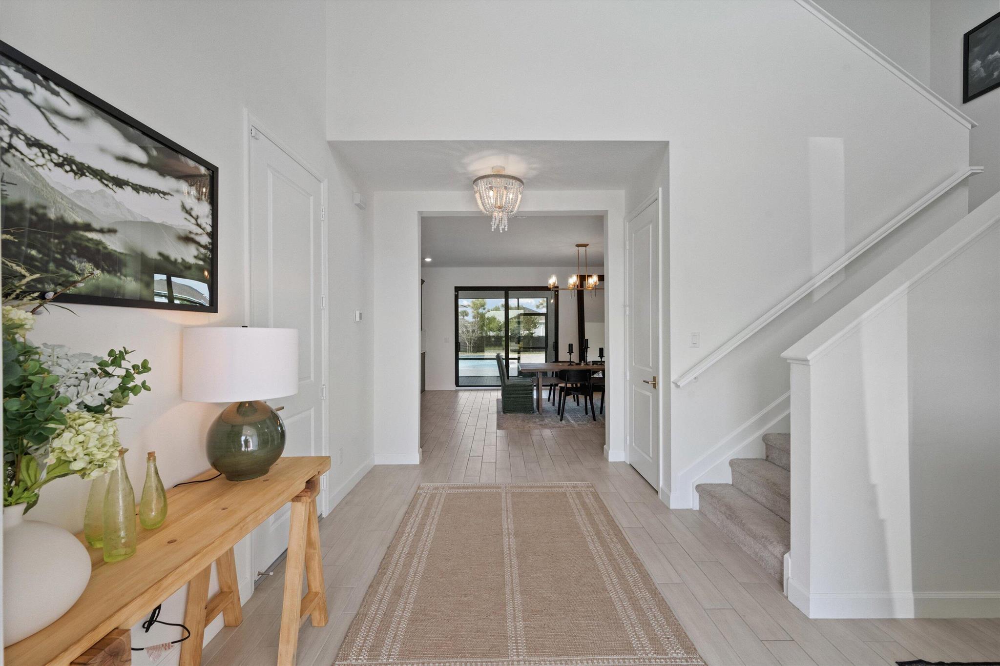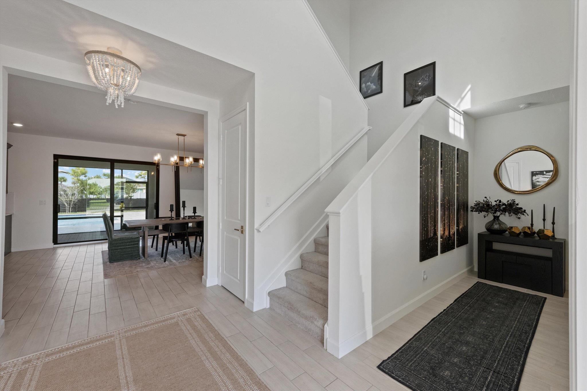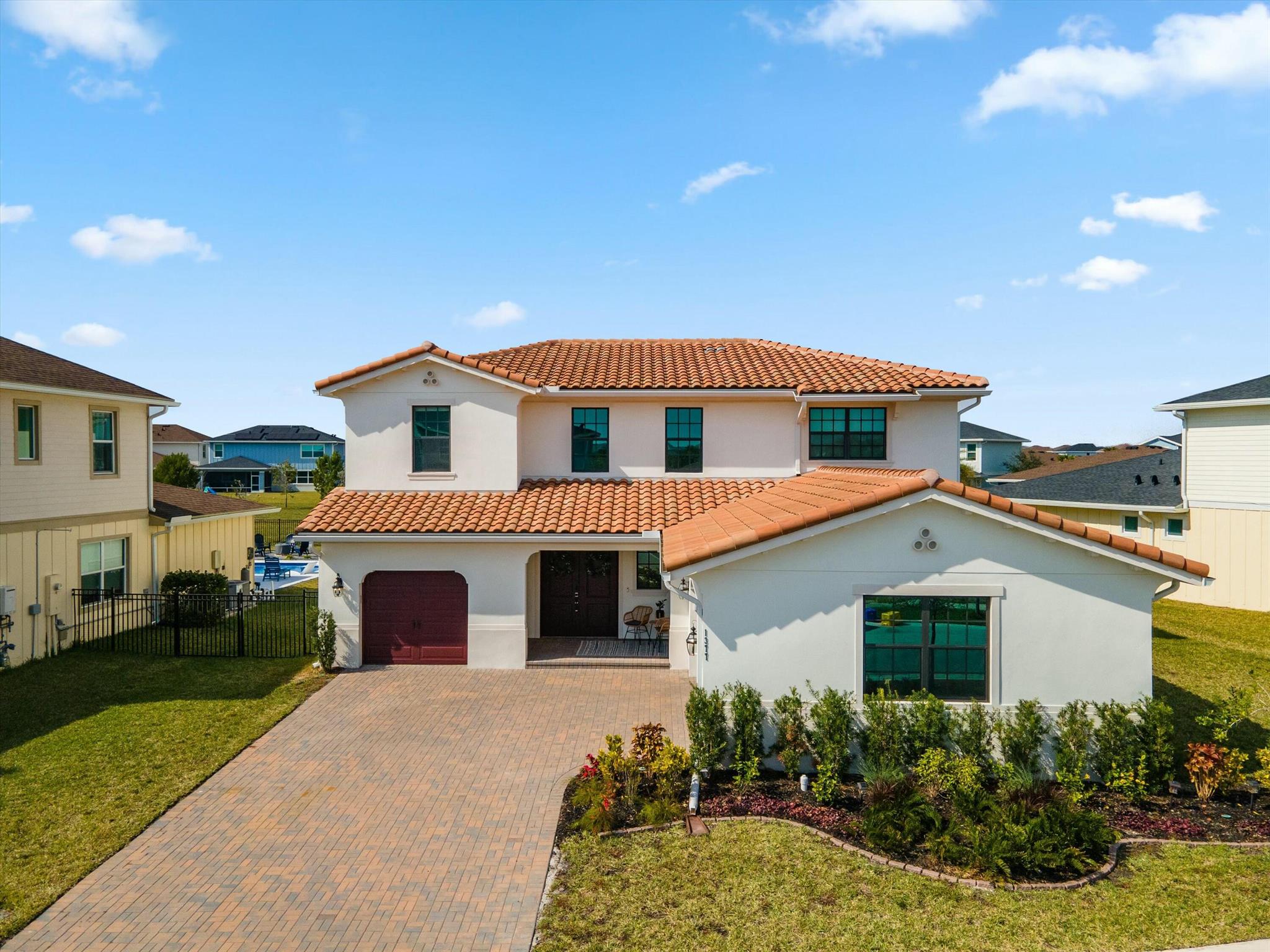 Welcome to this stunning 4-bed, 3-bath Spanish-style home, featuring a highly sought-after floor plan, set on an expansive lot. On the ground floor, you'll find an inviting open-concept living, dining, and kitchen area--perfect for entertaining. A 4th bedroom and full bath, along with stylish wood-tile flooring, complete the main level. The 2nd level offers a spacious primary suite, along with 2 additional bedrooms, bath and laundry room. This home boasts an array of upgrades, including a heated pool with a generous deck for outdoor relaxation, screened in lanai, fenced yard, and a total of 3 garage bays. Additional highlights include impact windows and doors, custom built-in shelving in the living area, new vanity mirrors, light fixtures, ceiling fans